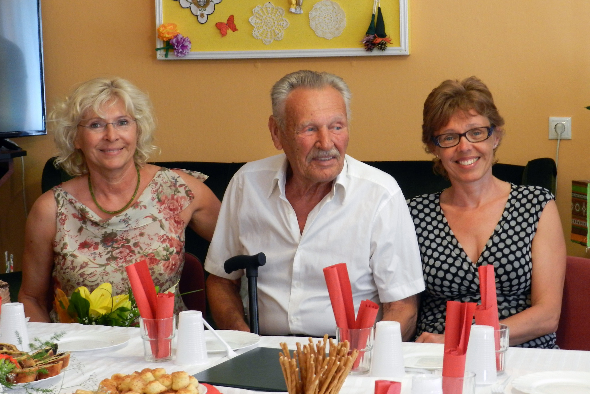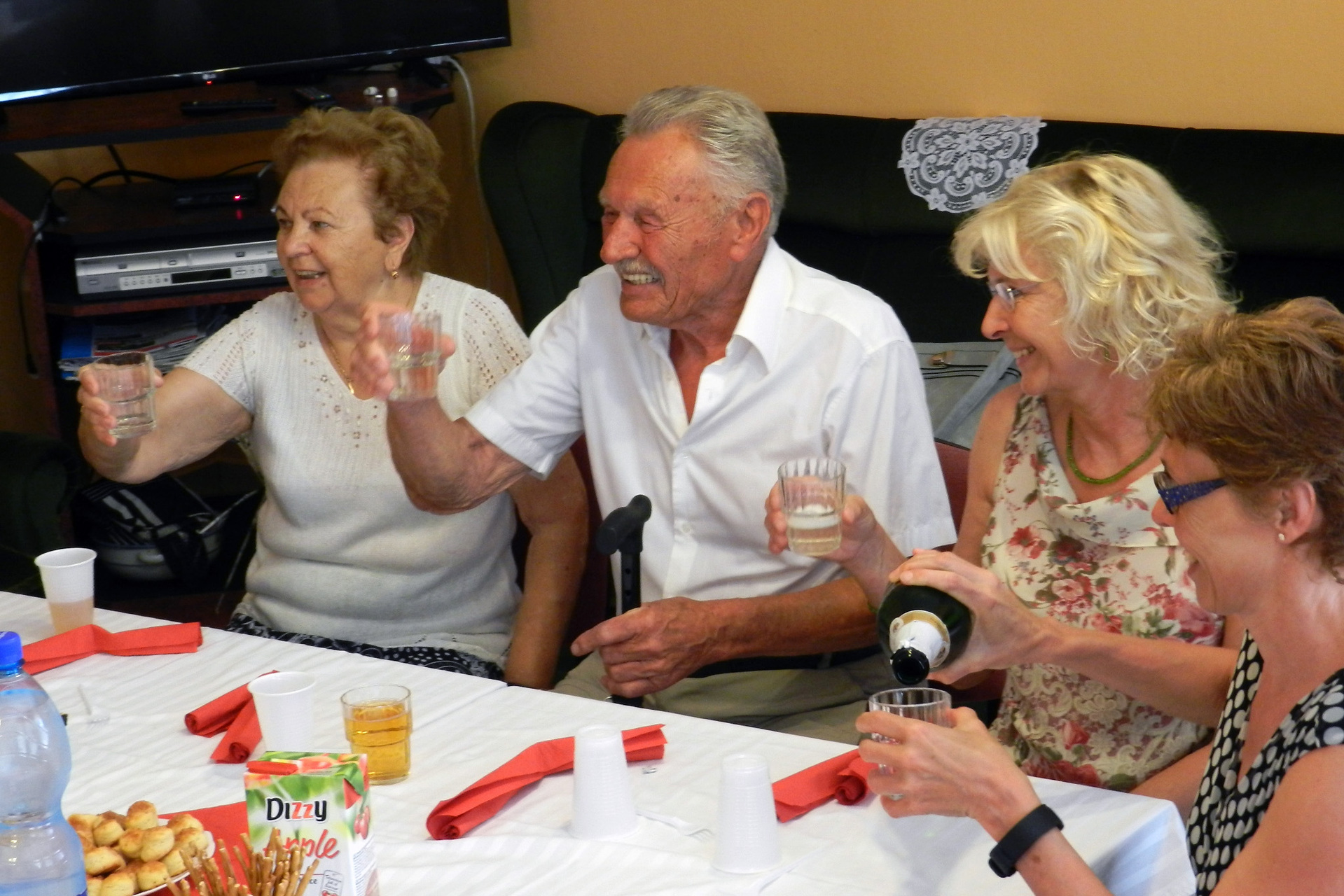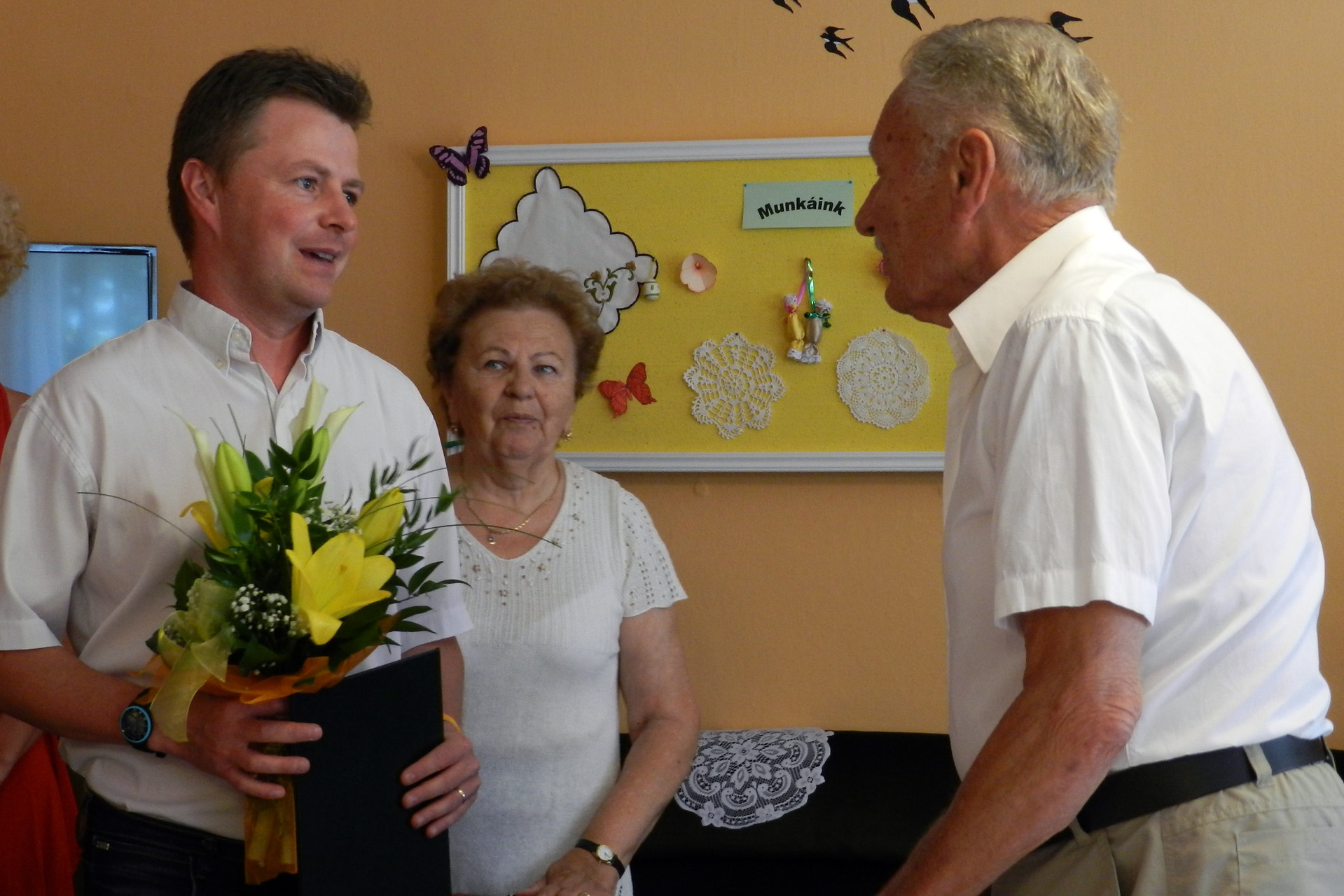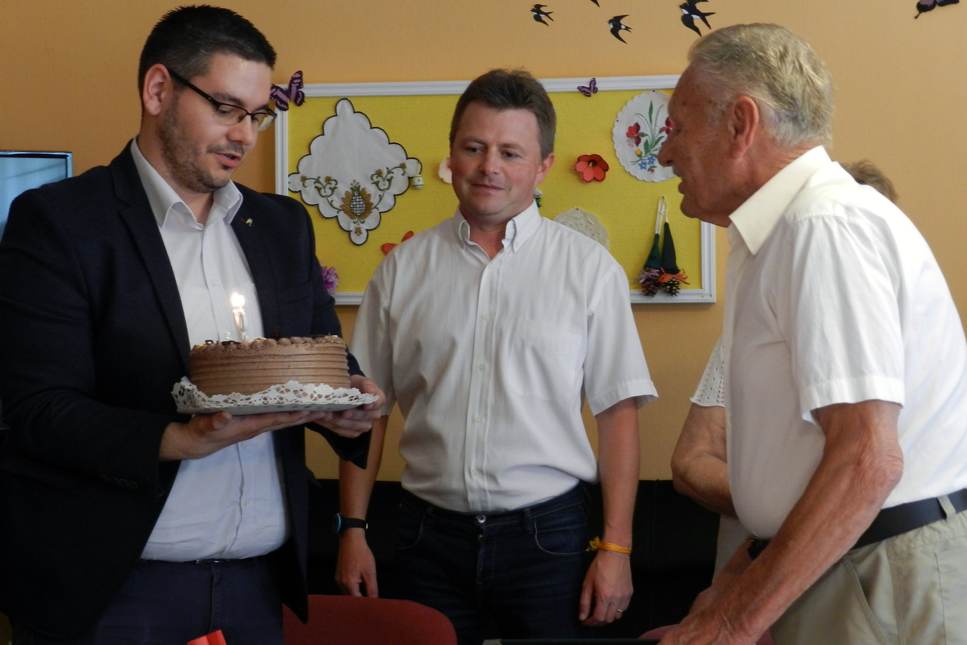 A város nevében Alt Norbert és Csige Gábor egy csokor virággal, egy tortával és egy emléklappal lepte meg Tóni bácsit, majd családja és barátai körében kezdődött az ünneplés.