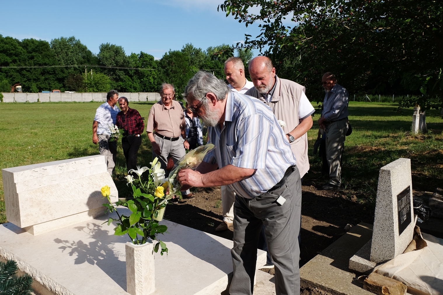 A helyszínen Krasznahorkai Géza emlékezett az ízig-vérig gyulai művészre, majd egy-egy szál virágot helyeztek el a jelenlévők a síremléknél.