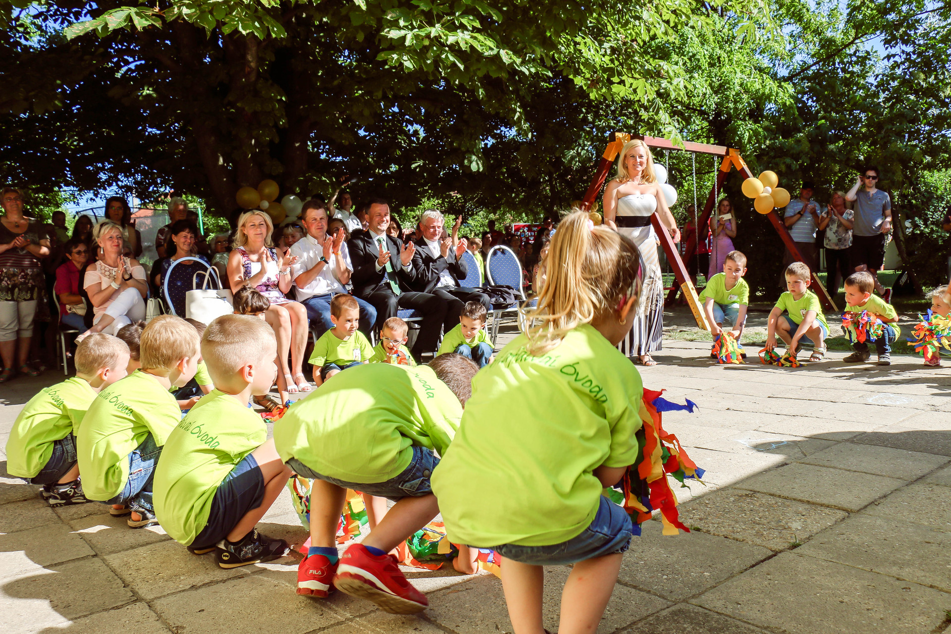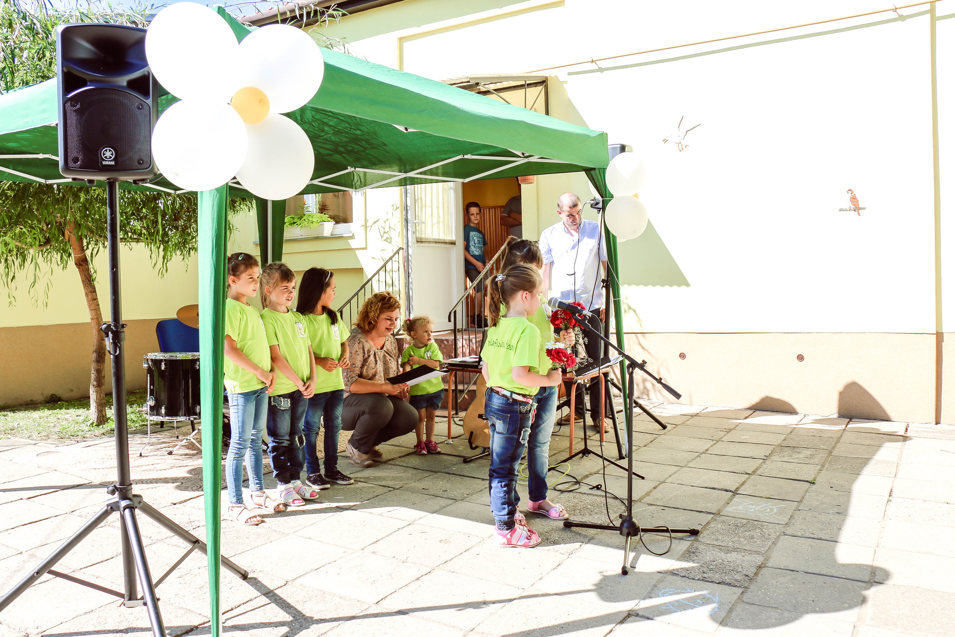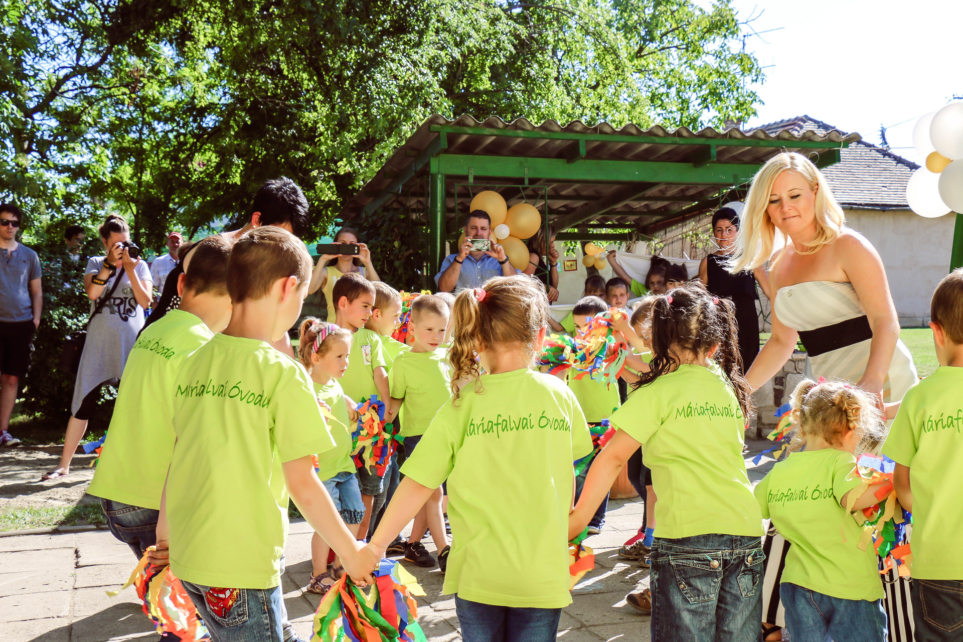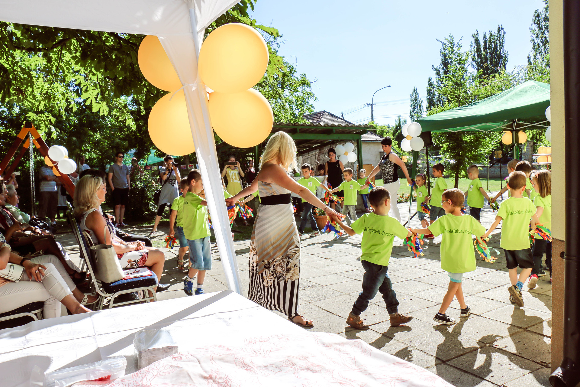 Az ünnepség további részében a máriafalvai ovisok, valamint az intézmény volt növendékei is a közönség elé léptek, és táncos, zenés, éneklős műsorszámokkal örvendeztették meg őket.