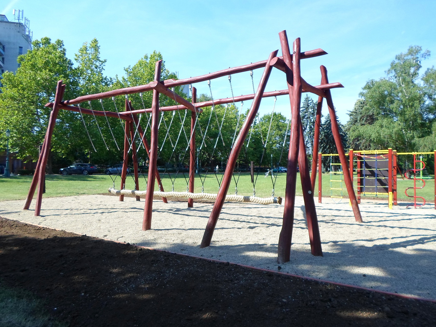 A játszóteret két részre osztották: egyik részén a fiatalabb, másik részén az idősebb korosztály játékait helyezték el. A gyermekek egy komplex mászókát, egy fészekhintát, egy rugós libikókát, egy piruettet, egy körforgót, egy lépegetőt, egy láncos kötélmászókát és az ország legnagyobb, 11 férőhelyes lengőhintáját kapták ajándékba a nyári vakáció első napjára. Az elképzelés az volt, hogy a teret nagyobb csoportok is birtokba vehessék, például osztálykirándulások alkalmával. Mindemellett szempont volt, hogy a játékelemek szórakoztatók és esztétikusak legyenek, elősegítsék célhasználóik szellemi fejlődését.