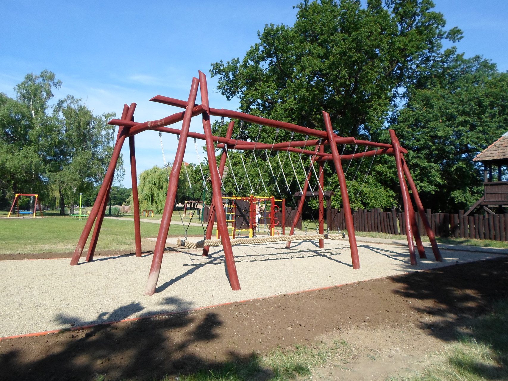 Játékvásárlásra 8,8 millió forintot költött a helyi önkormányzat saját forrásaiból, azzal a céllal, hogy a legjobb minőségű, és az EU-s szabványoknak is minden tekintetben megfelelő elemeket szerelhessék be. A szükséges javításokat a rönkváron is elvégezték: a hiányzó felületeket pótolták, emellett új, friss színt is kapott a térszerkezet. A közeljövőben a cserepeket is le fogják cserélni zsindelyre, hogy ezzel is biztonságosabbá tegyék az építményt.