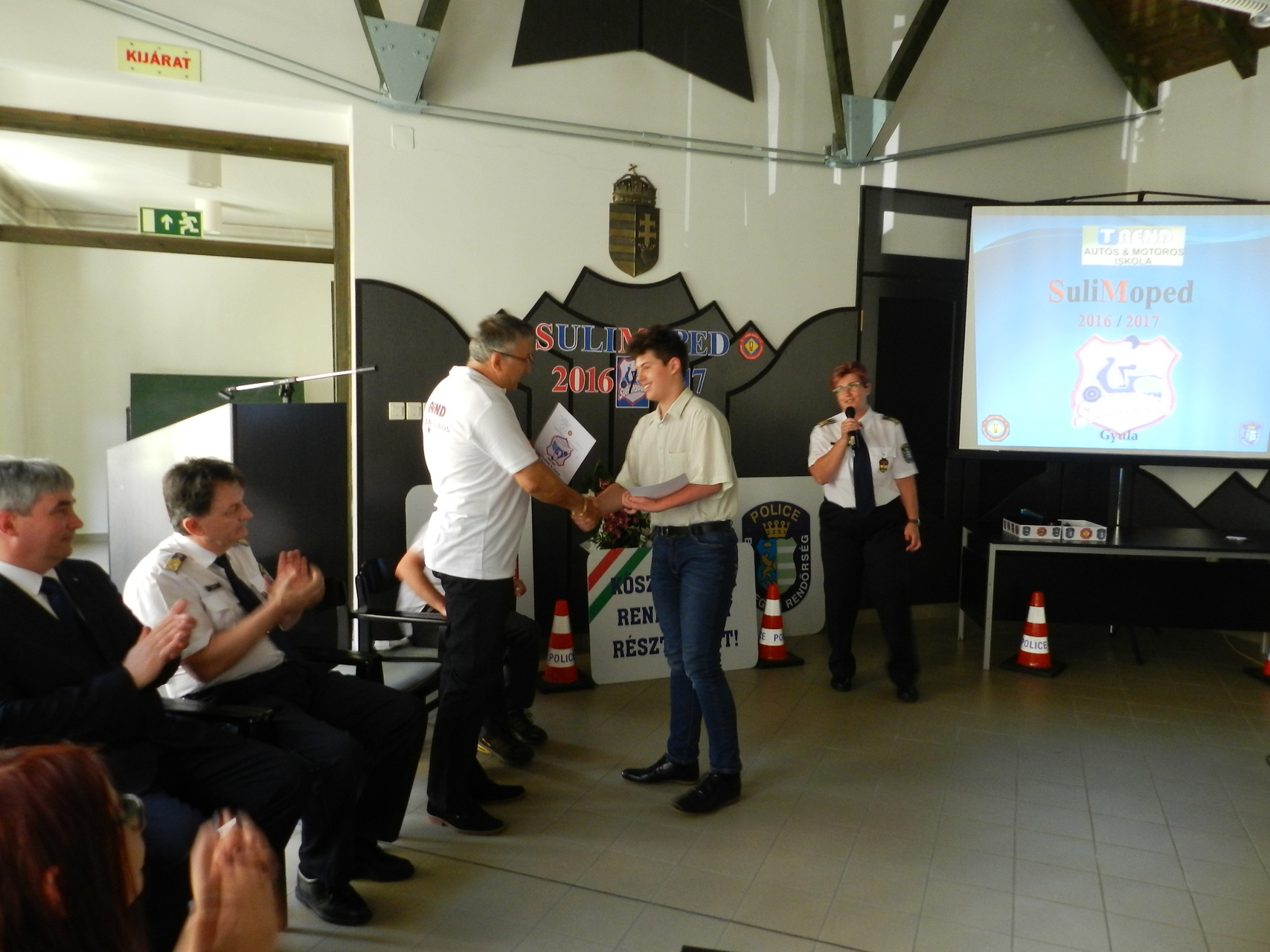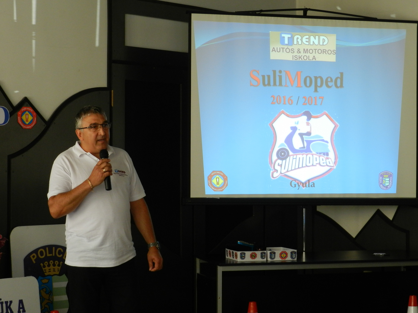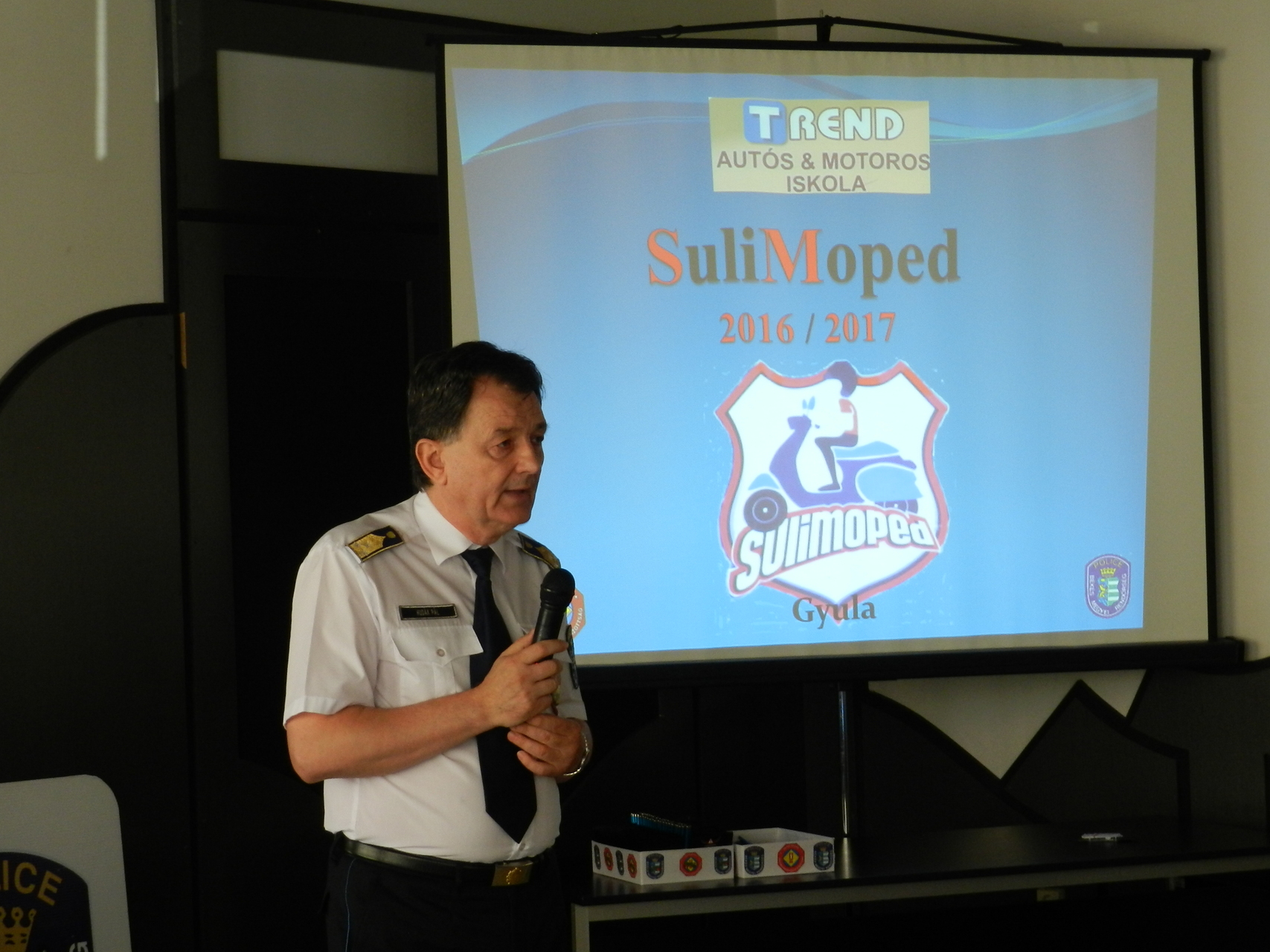 – A SuliMoped program öt éve Pintér Sándor belügyminiszter jóvoltából indulhatott el – mondta köszöntőjében Hudák Pál. – Először az ország öt megyéjében tették lehetővé az ingyenes jogosítványszerzést. Békés megyében nagyon sikeres a program, minden diák, aki elkezdte a képzést, sikeresen be is fejezte azt.