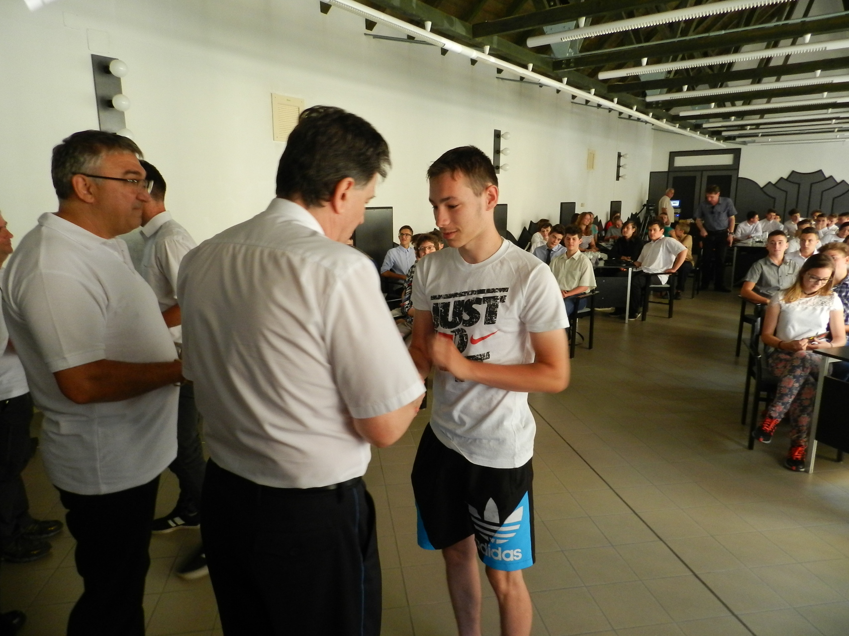 A köszöntők után egy megható pillanatnak is tanúi lehettek a rendezvény résztvevői: az iskola oktatói Sebestény Józseftől emléklapot vehettek át az elvégzett munkáért. A fiú története azért különleges, mert születése után balesetet szenvedett, amelyben megsérült a bal csuklója, így első pillantásra nem tartották alkalmasnak a motorvezetésre. A küzdeni akarás és Nyéki Zsolték segítsége azonban győzött, így a rendezvényen ő is átvehette vezetői engedélyét.