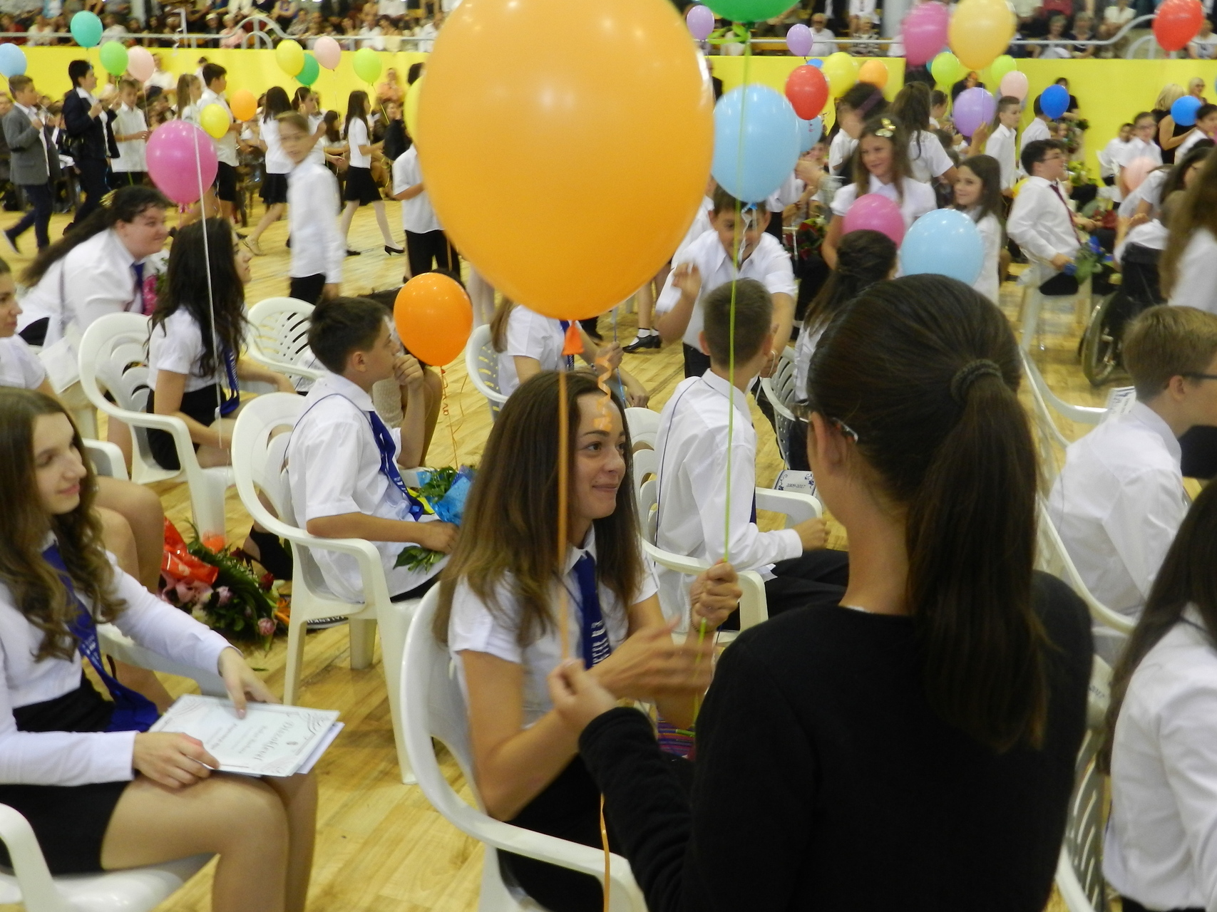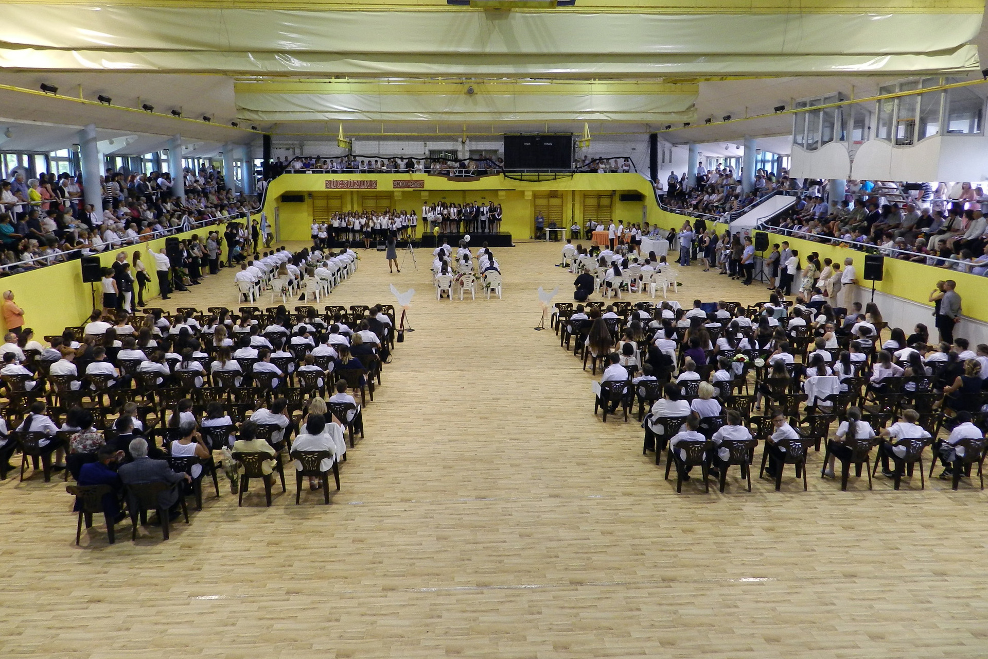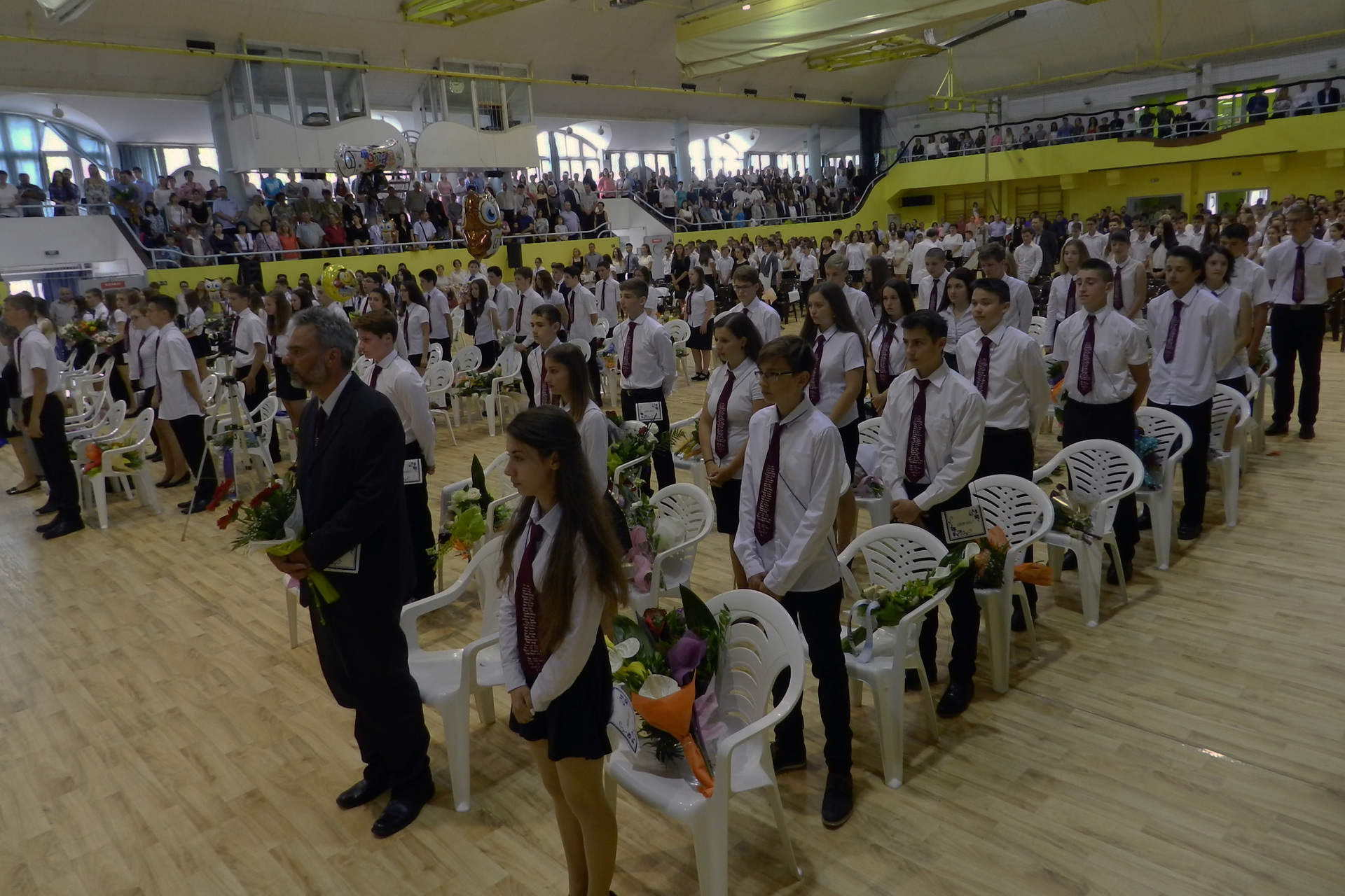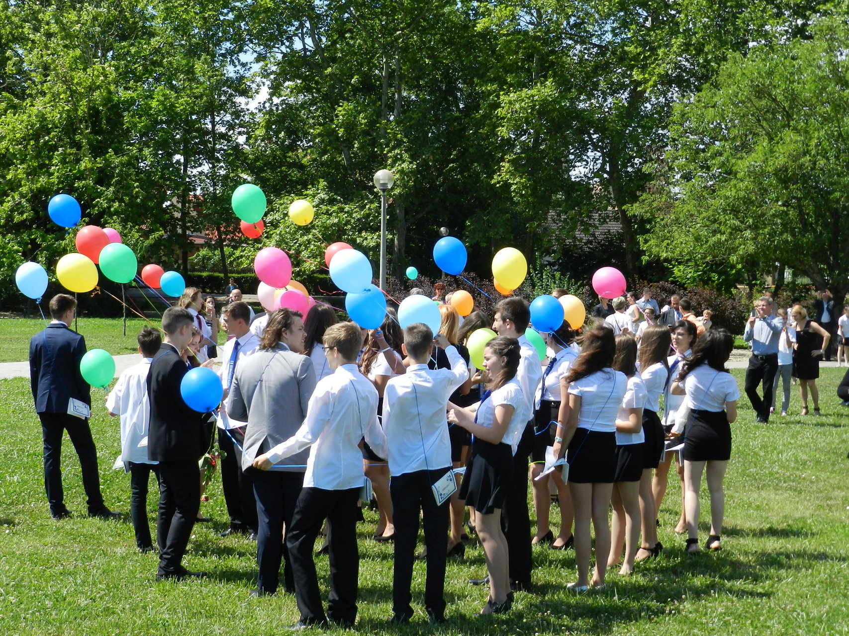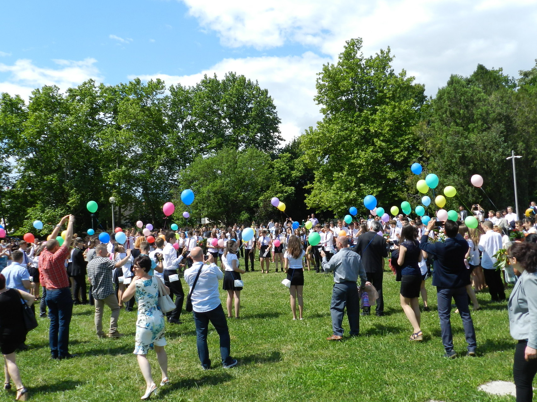 Az ünnepség végén a ballagók kivonultak a tornacsarnokból és léggömböket eresztettek szélnek, ezzel képletesen elengedve az elmúlt nyolc évet.