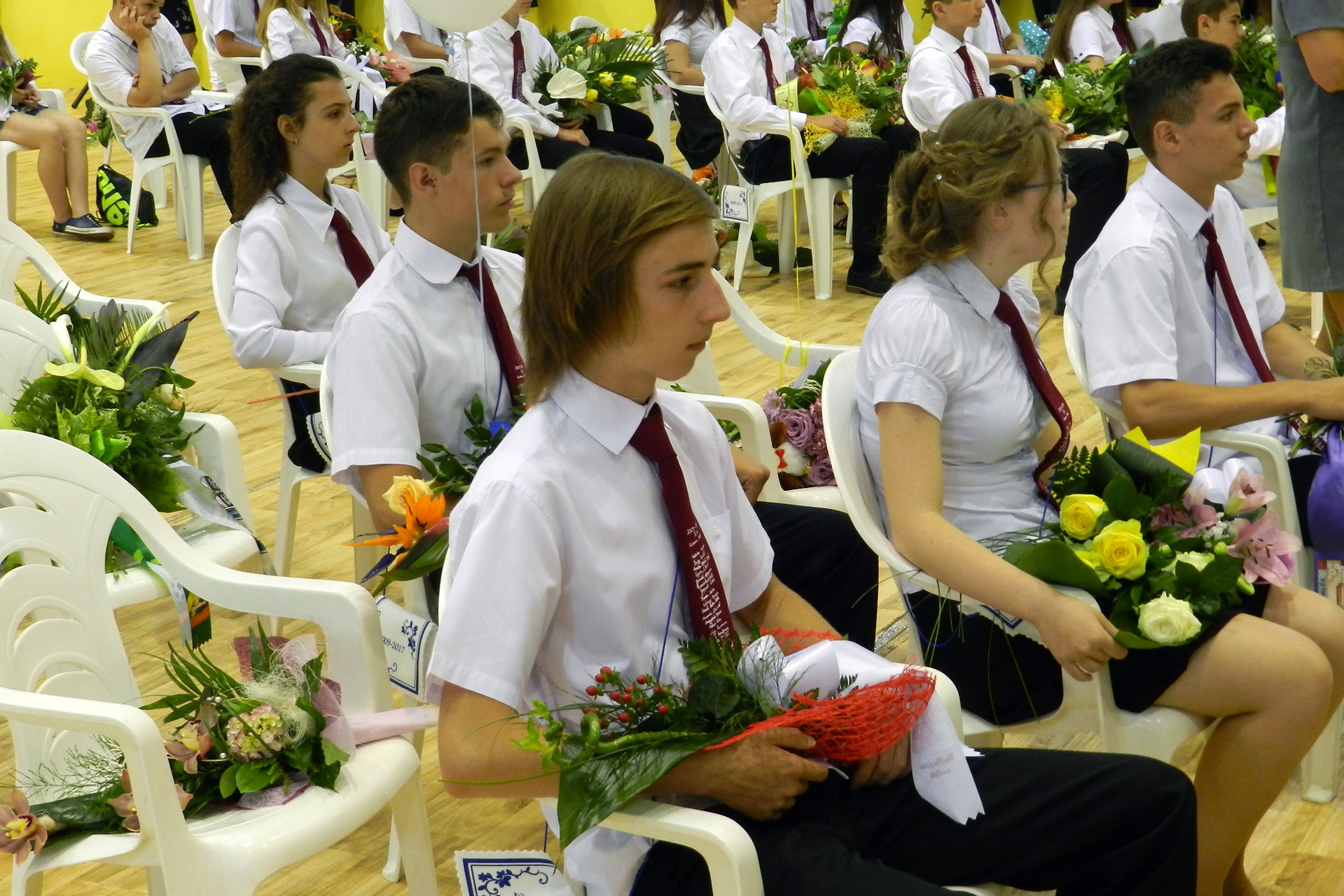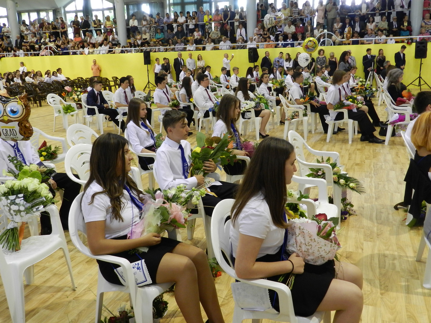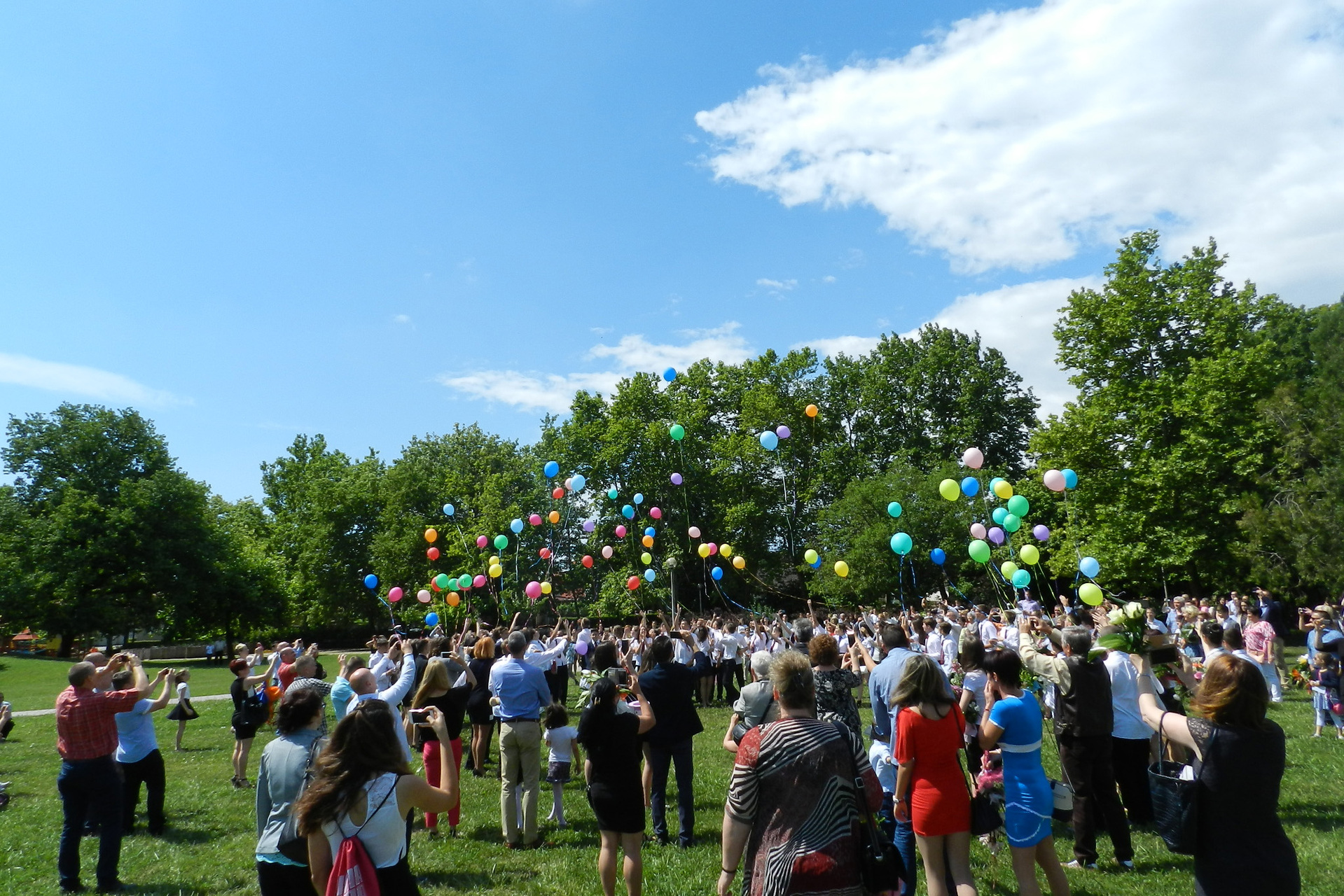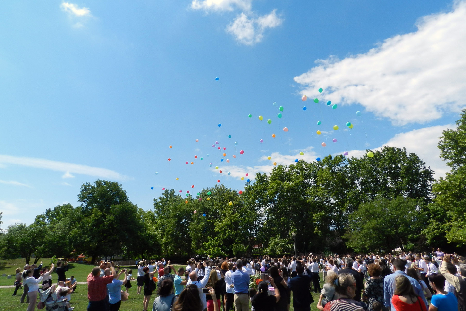 Az ünnepség végén a ballagók kivonultak a tornacsarnokból és léggömböket eresztettek szélnek, ezzel képletesen elengedve az elmúlt nyolc évet.