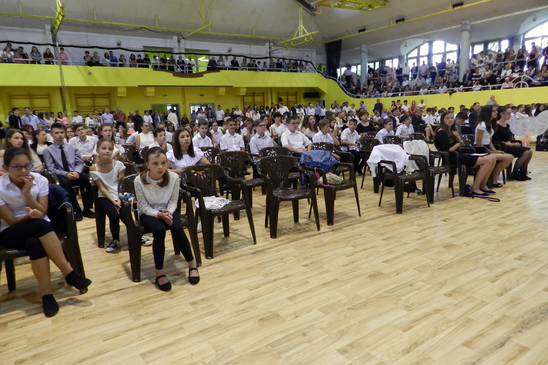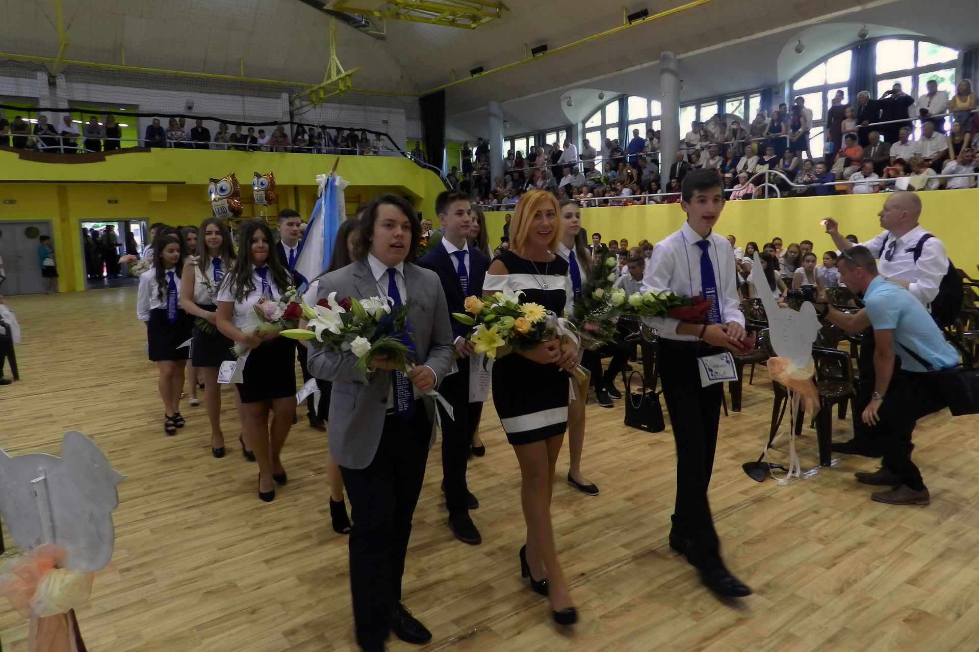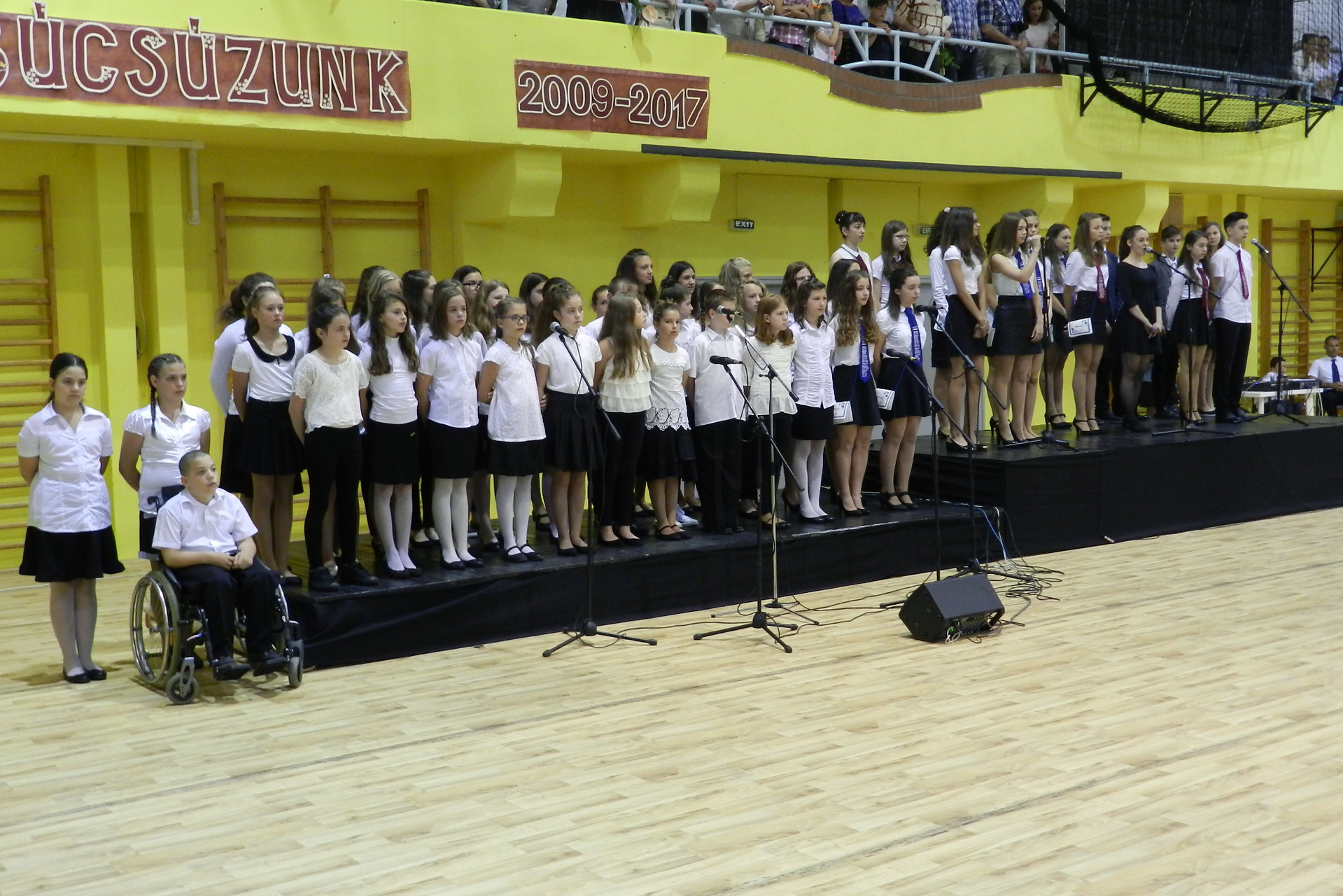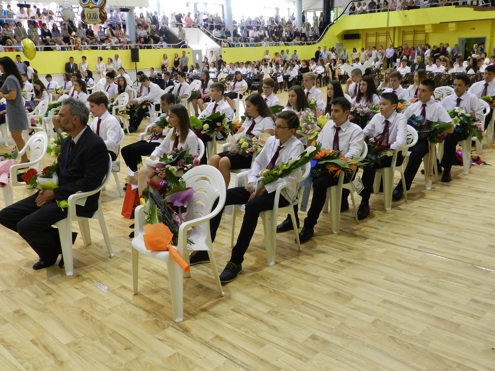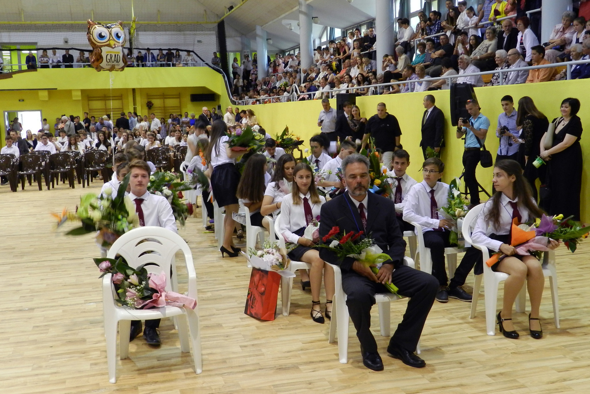 Az ünnepség végén a ballagók kivonultak a tornacsarnokból és léggömböket eresztettek szélnek, ezzel képletesen elengedve az elmúlt nyolc évet.