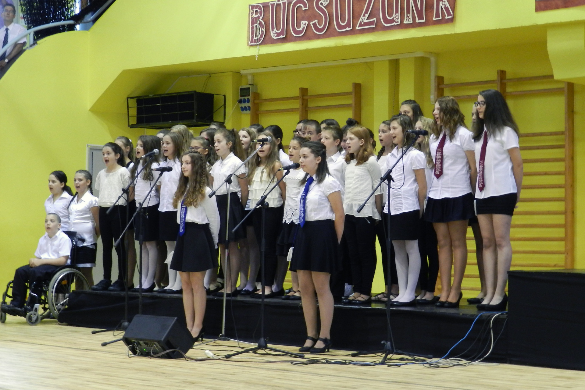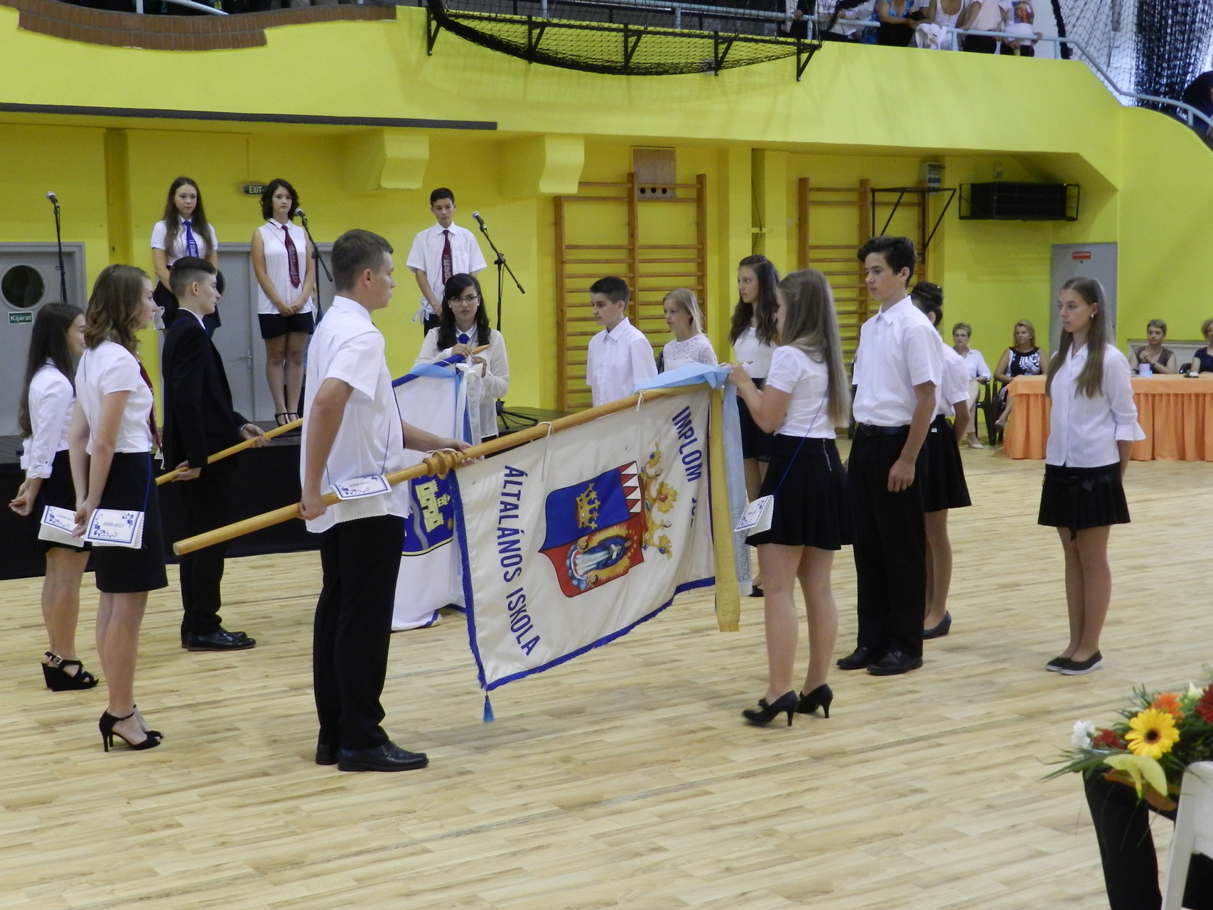 Az ünnepség a Himnusz közös eléneklésével indult, majd a diákok és az intézmény kórusa adtak műsort a ballagóknak. A nyolcadikos évfolyam képviselői átadták az iskola zászlaját a hetedikeseknek, utána Kertes Gabriella mondta el ünnepi beszédét.
