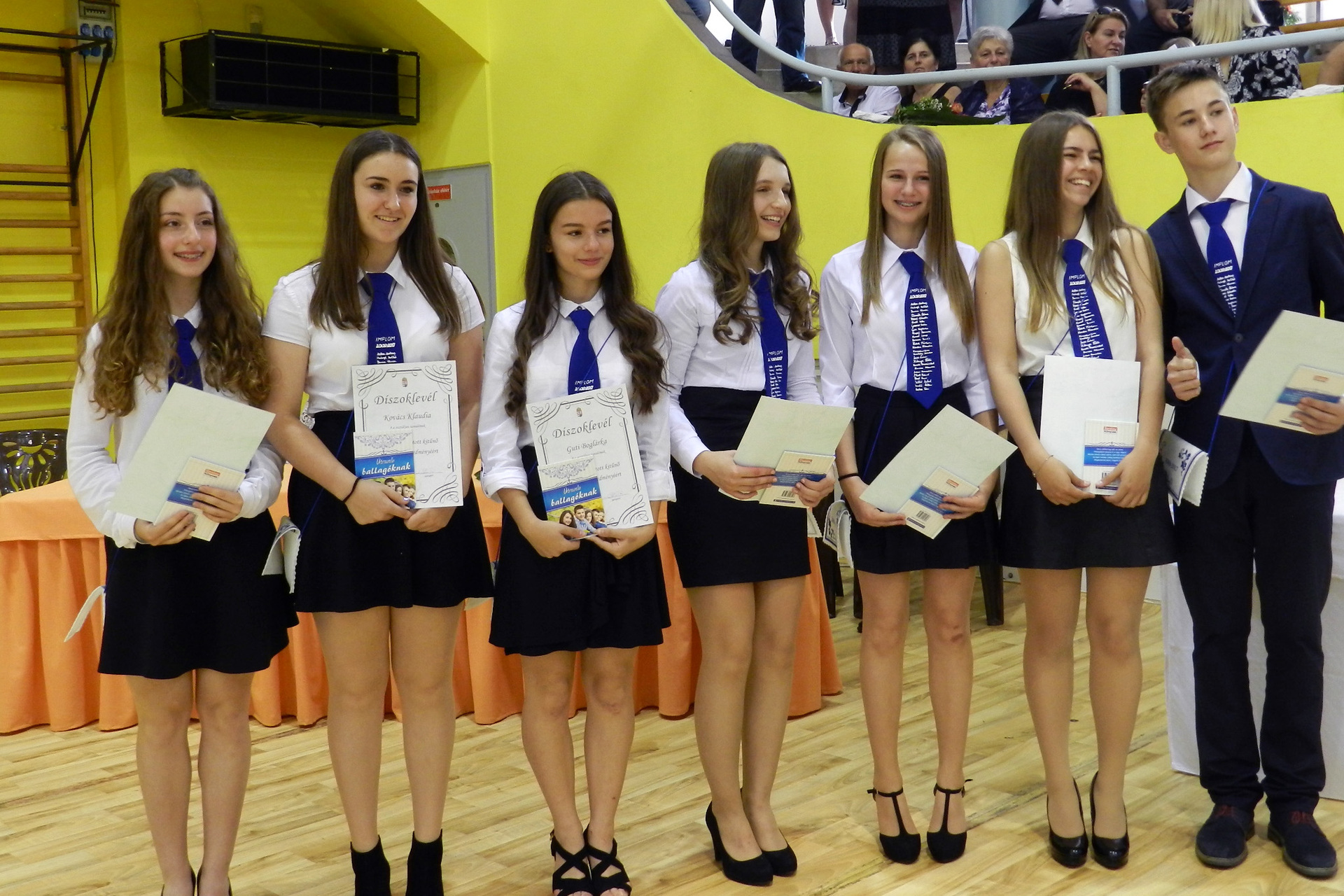 – A mai nap a ti ünnepetek, és a ti pillanataitokról szól. Végiggondolva az elmúlt napok történéseit, az osztálybúcsúkat, a bankett műsorát, elfogult vagyok veletek szemben, és büszkeséggel tölt el, hogy ilyen évfolyamtól búcsúzhatok. Ti a mieink vagytok, kicsit belőlünk valók, kicsit implomosok, mert nyolc év nyomot hagy az embereken. Mert vannak közös emlékeink.