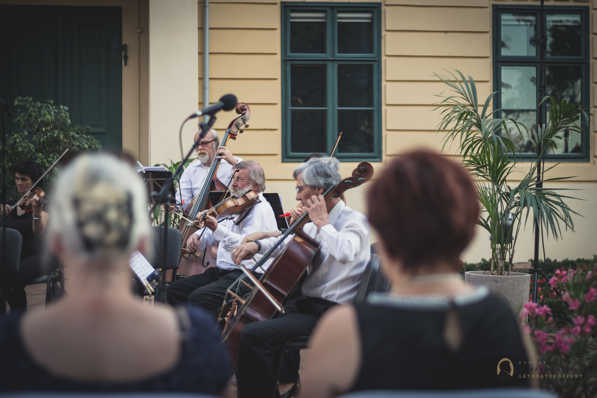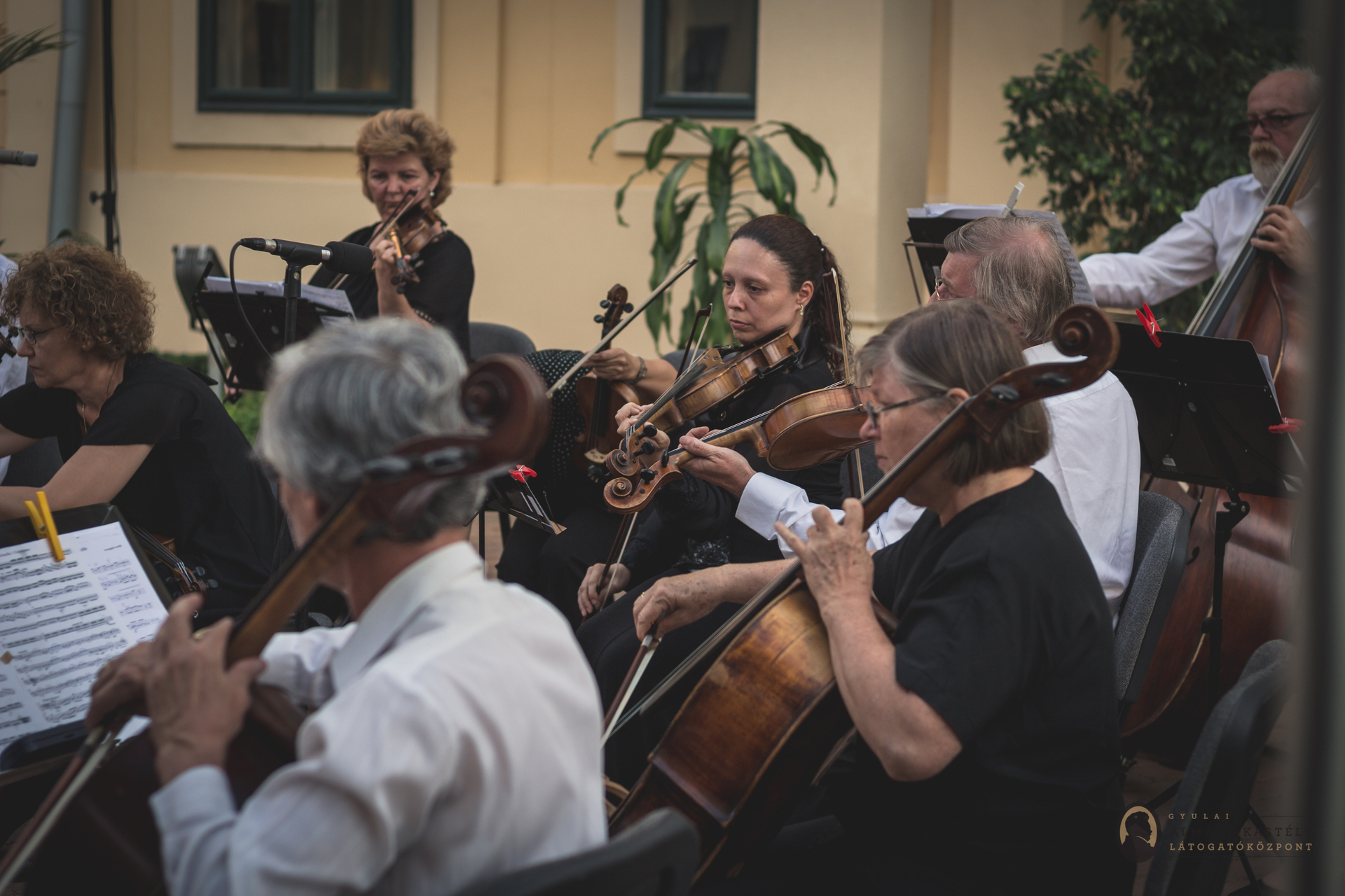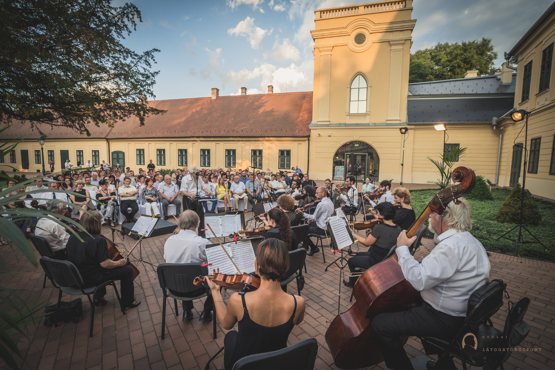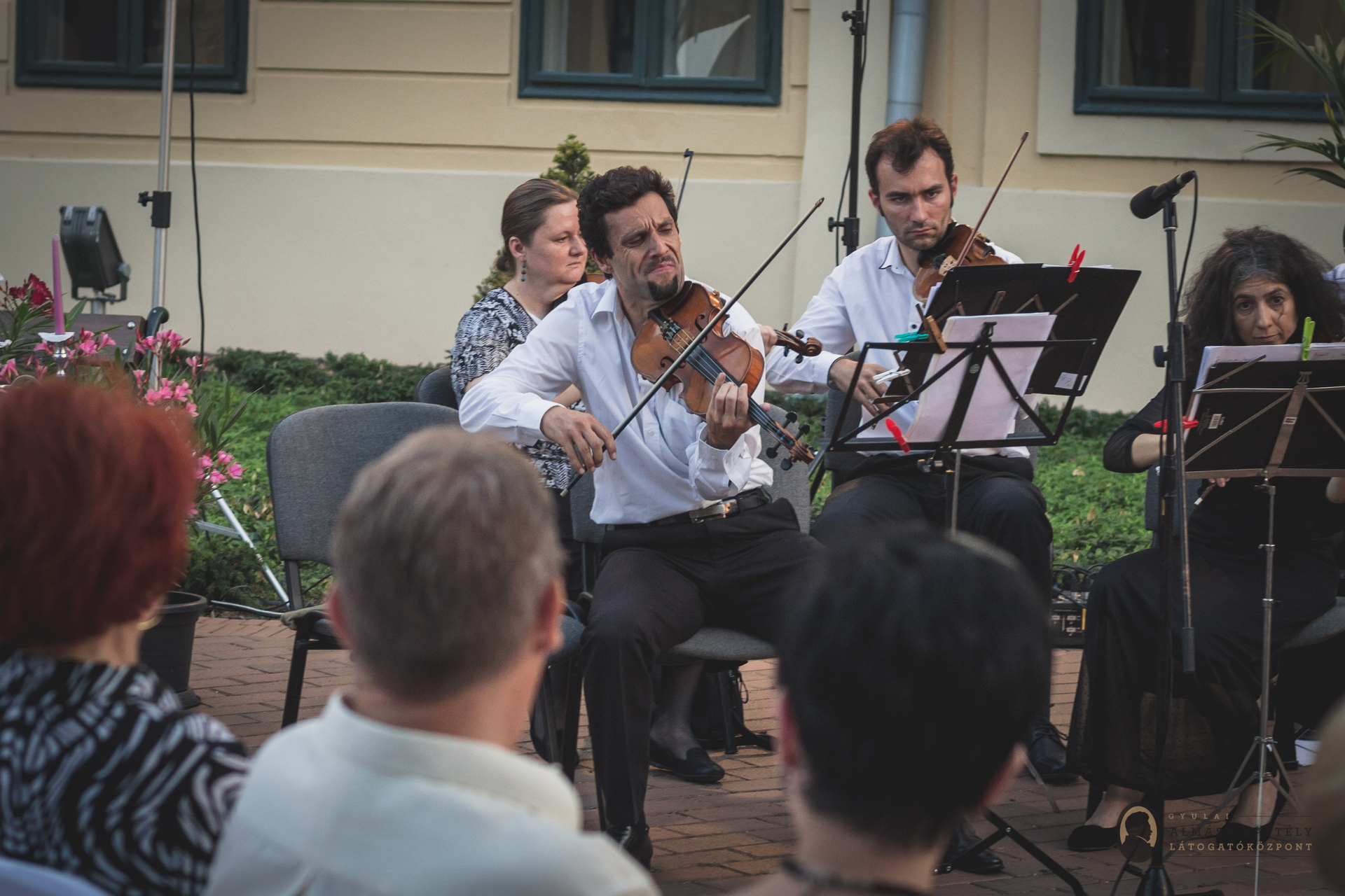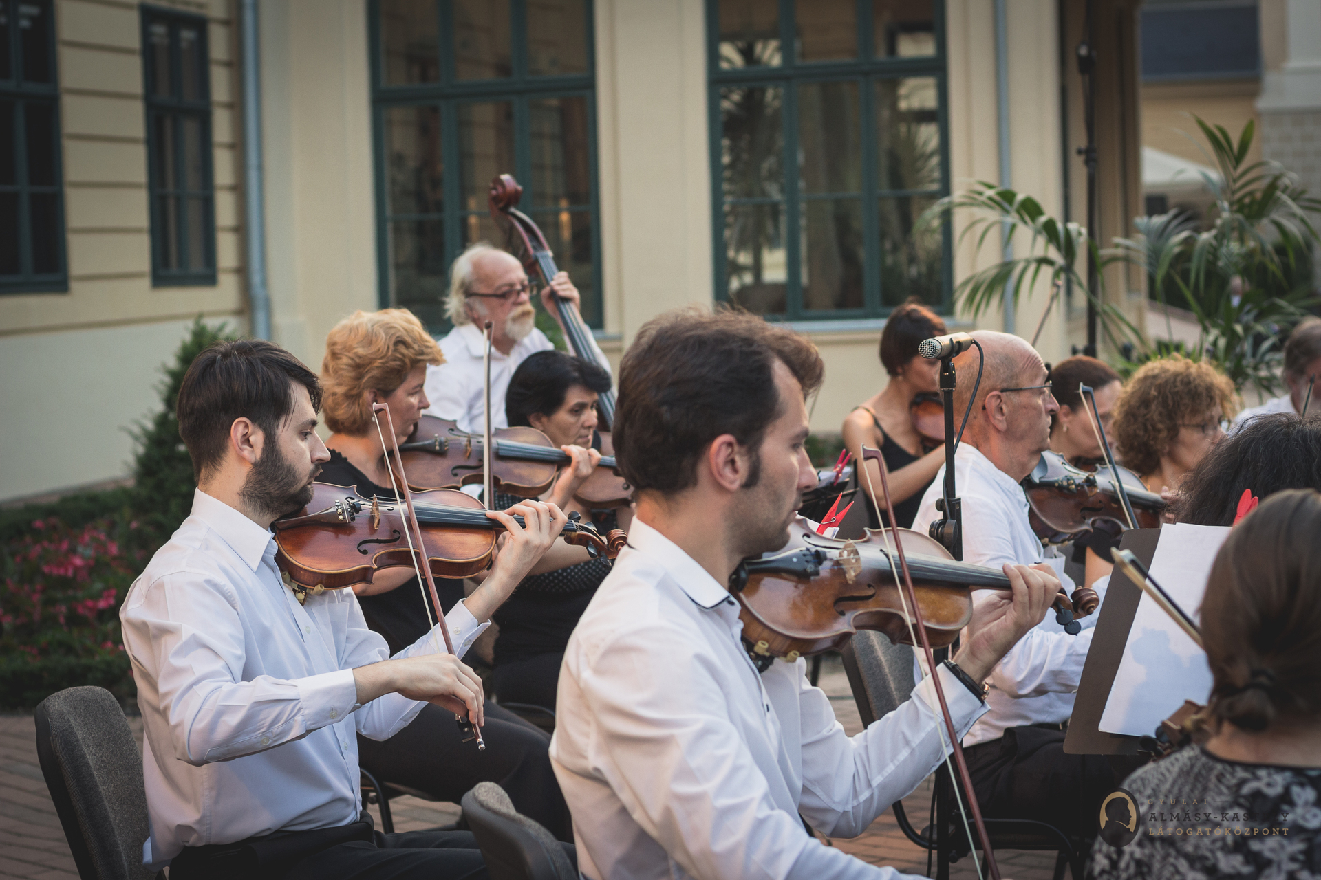 A rendezvényre kilátogatók egy igazán különleges élménnyel gazdagodtak: a patinás épület mellett, a lemenő nap fényében kezdte meg koncertjét az Aradi Állami Filharmónia Kamarazenekar, amely az olyan klasszikusok mellett, mint Monti, Gardel vagy éppen Piazzolla, modern komolyzenei művekben is megcsillogtatták tehetségüket, így hallhatta a közönség a Schindler listája című film főcímzenéjét, amely John Williams szerzeménye.