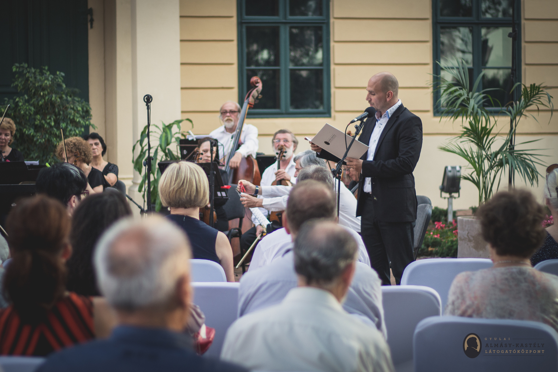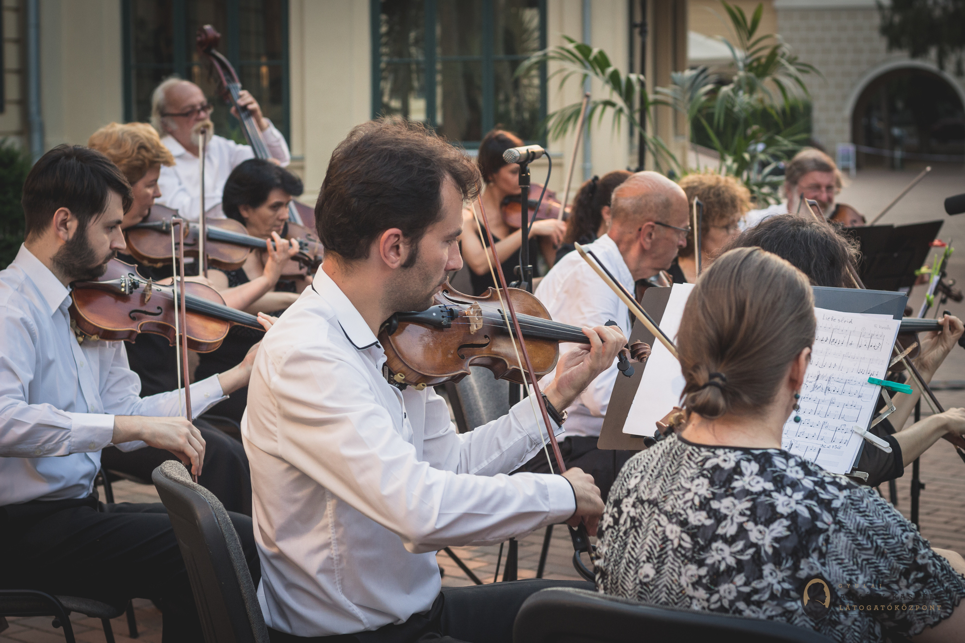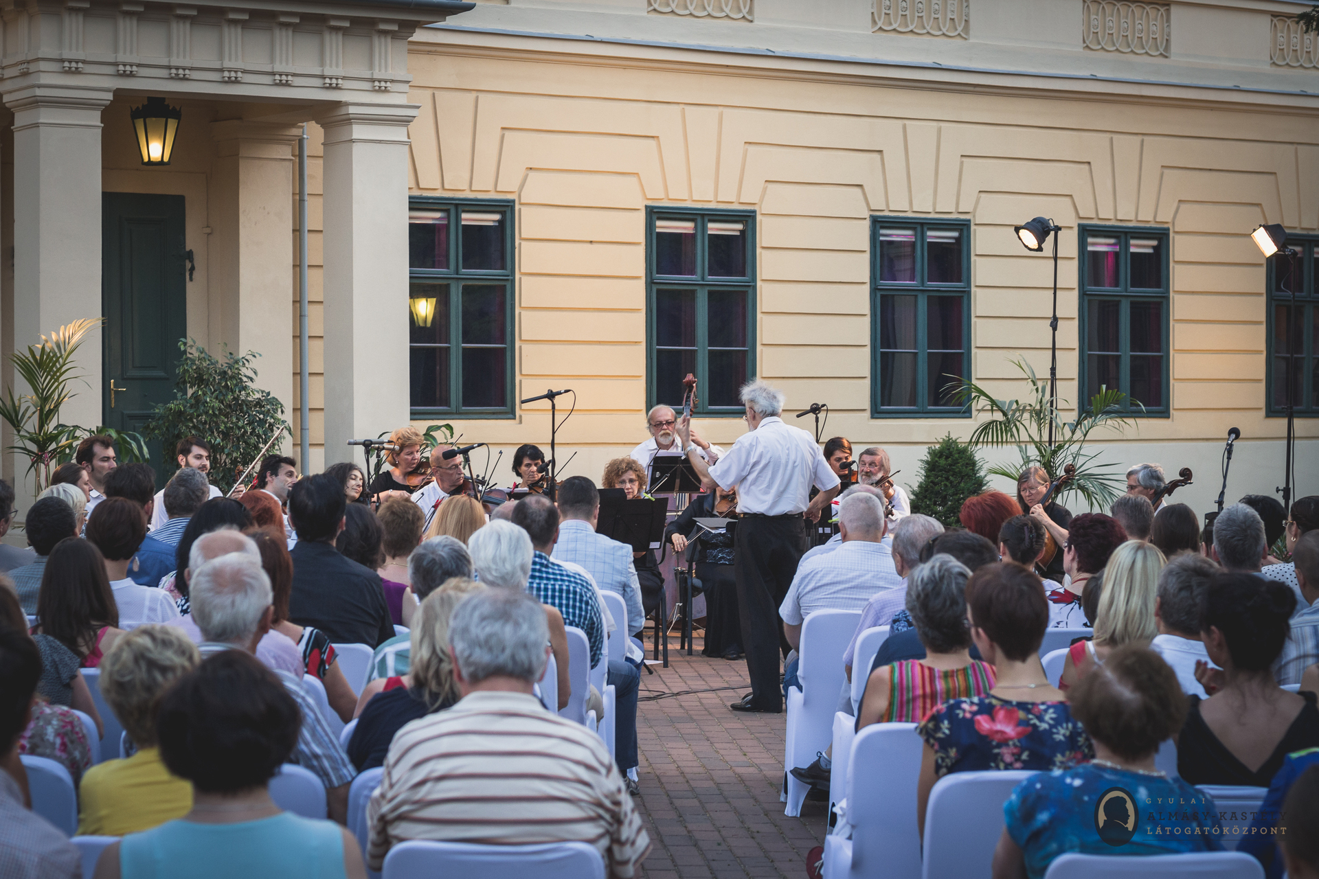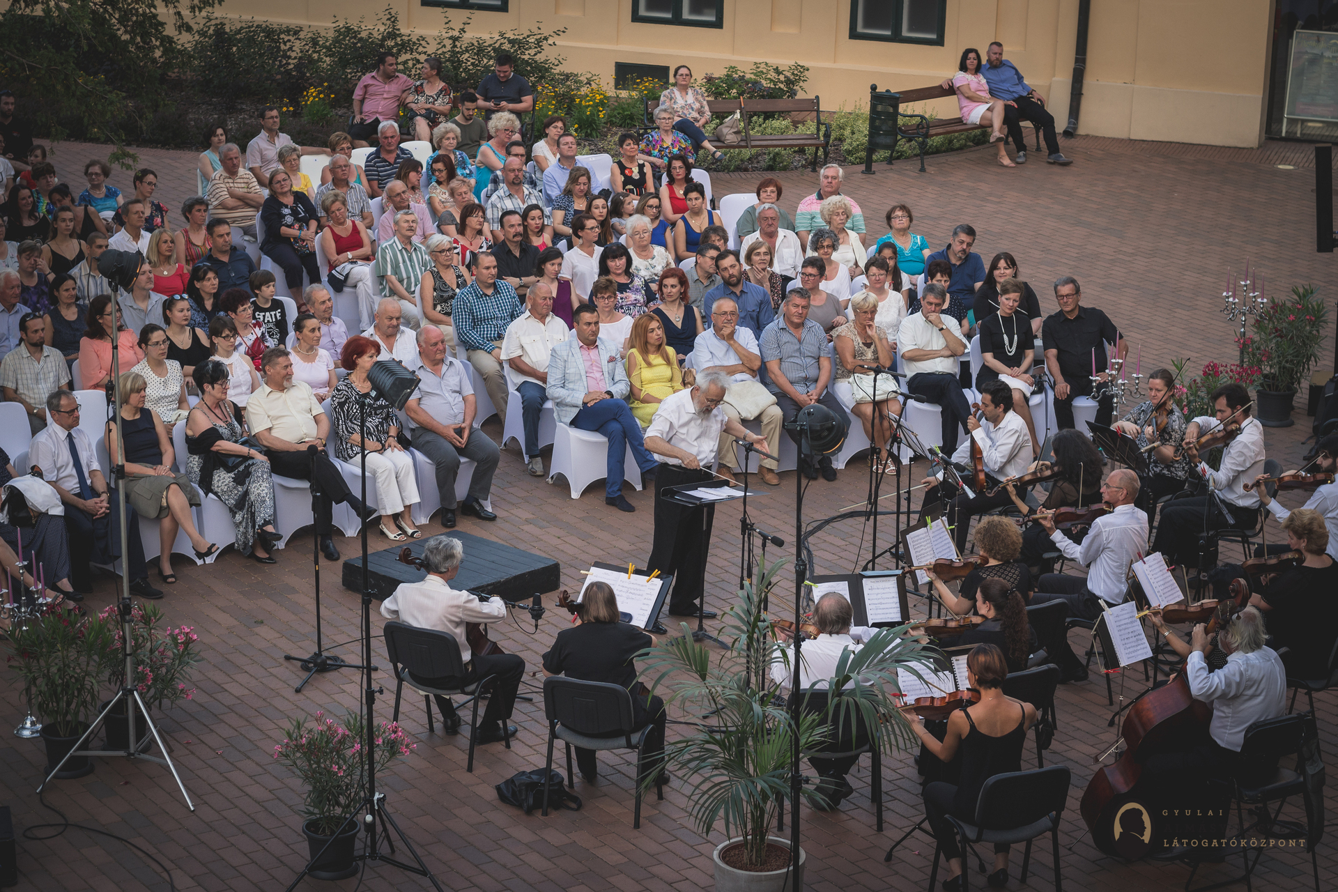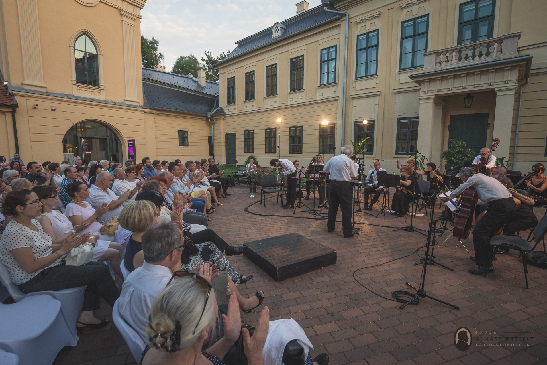 A rendezvényre kilátogatók egy igazán különleges élménnyel gazdagodtak: a patinás épület mellett, a lemenő nap fényében kezdte meg koncertjét az Aradi Állami Filharmónia Kamarazenekar, amely az olyan klasszikusok mellett, mint Monti, Gardel vagy éppen Piazzolla, modern komolyzenei művekben is megcsillogtatták tehetségüket, így hallhatta a közönség a Schindler listája című film főcímzenéjét, amely John Williams szerzeménye.