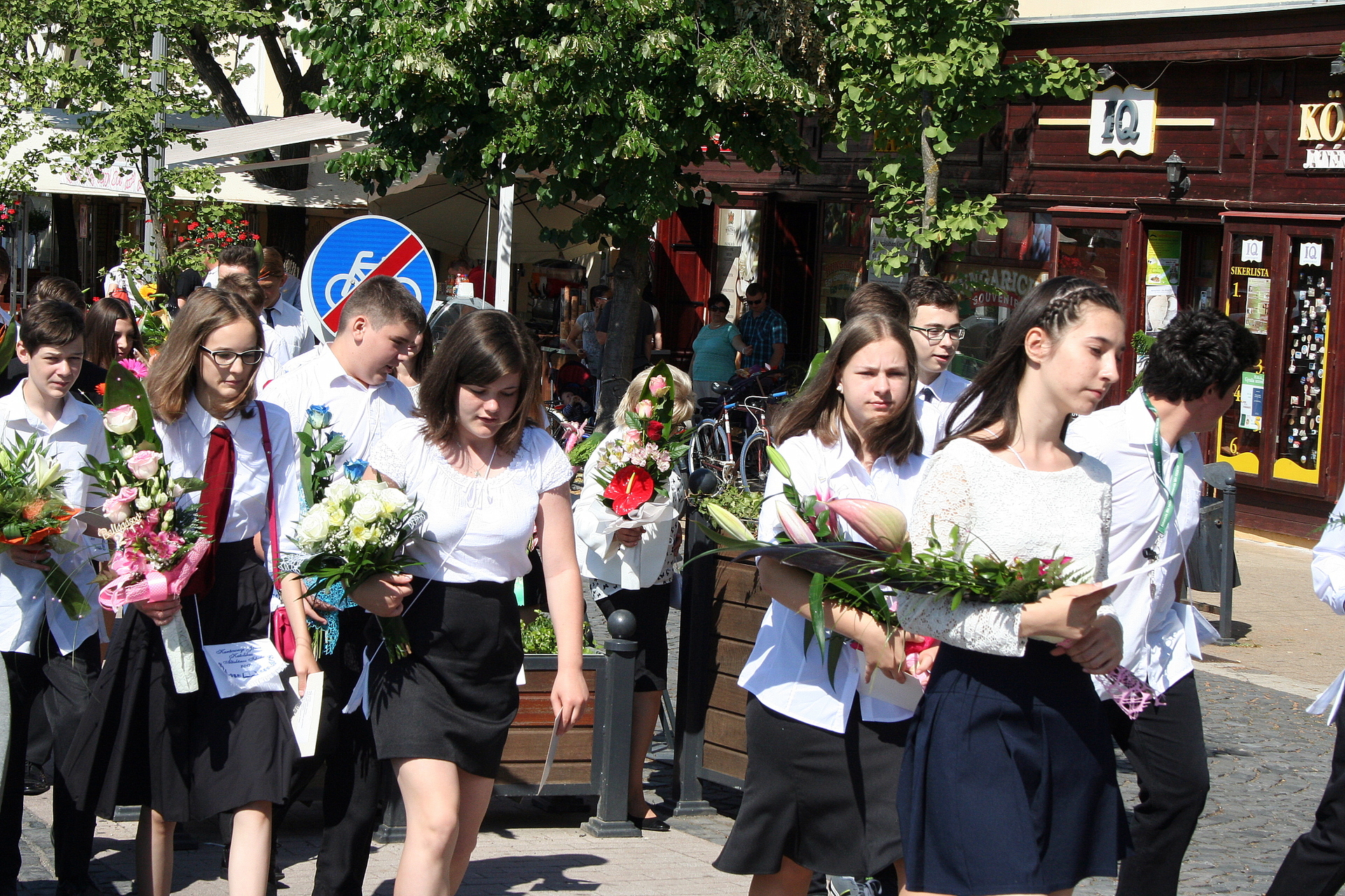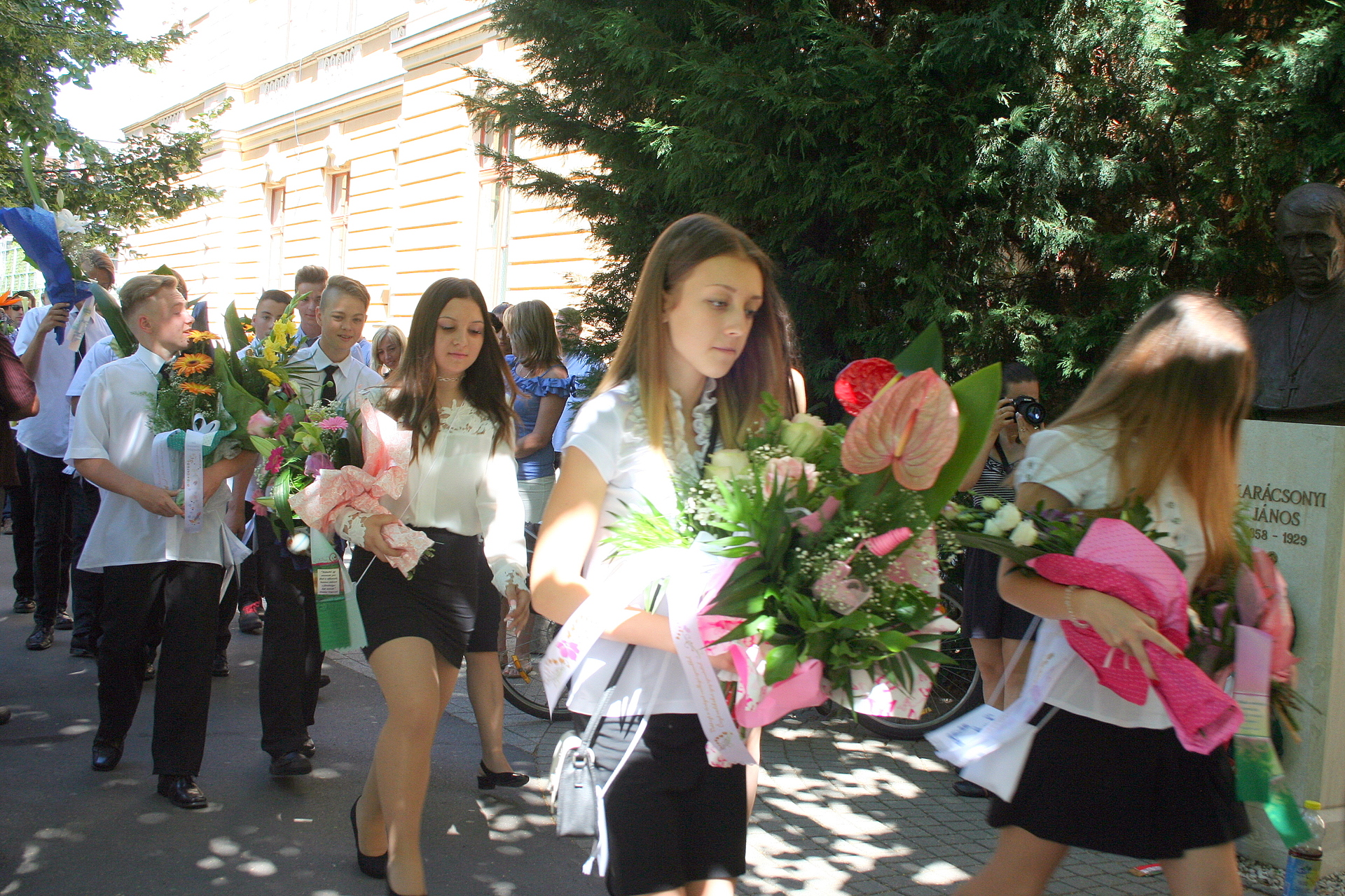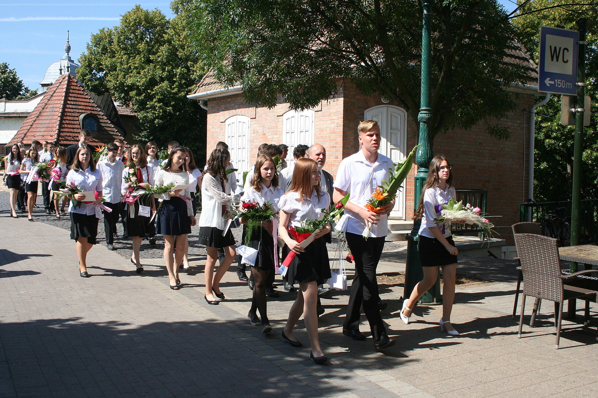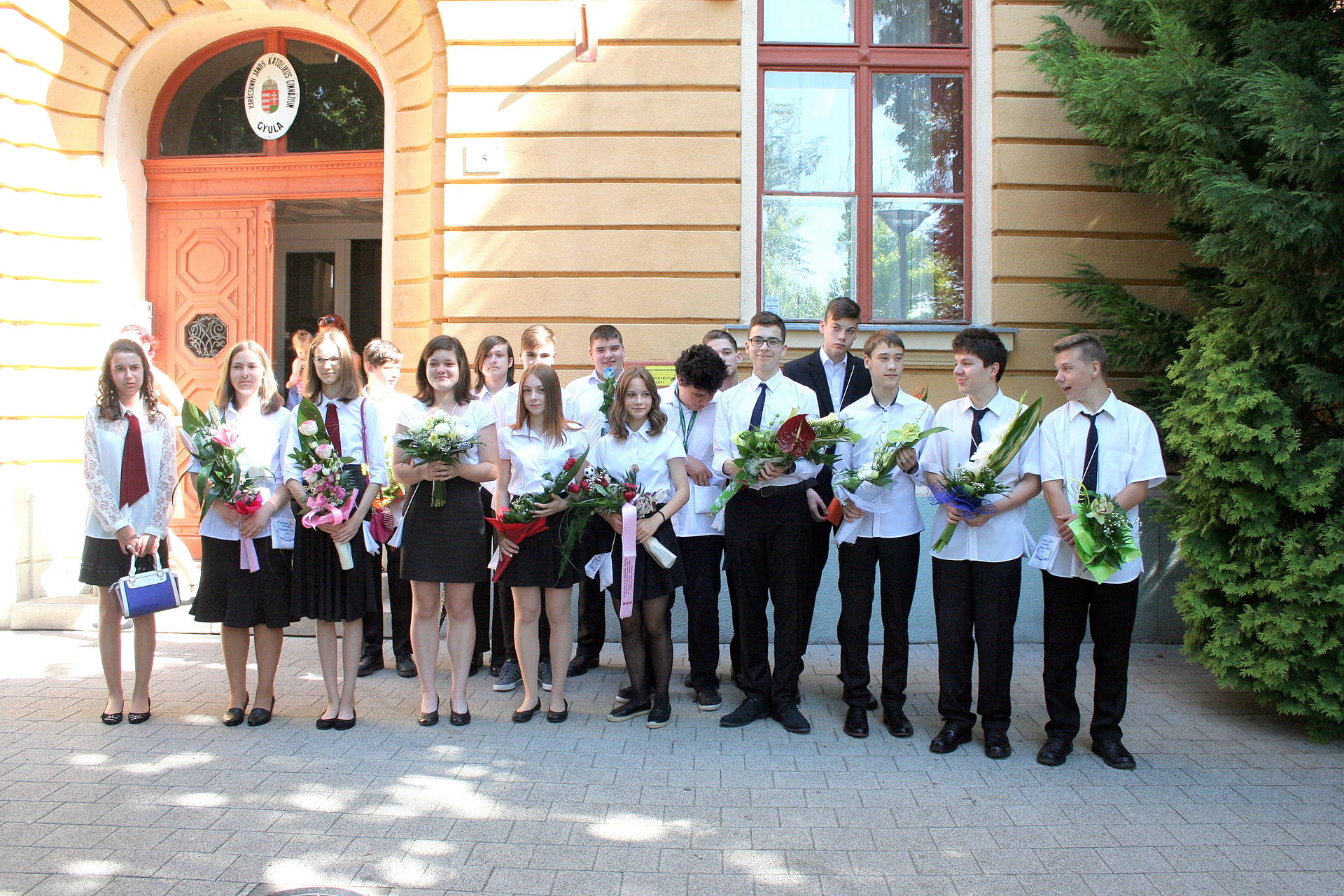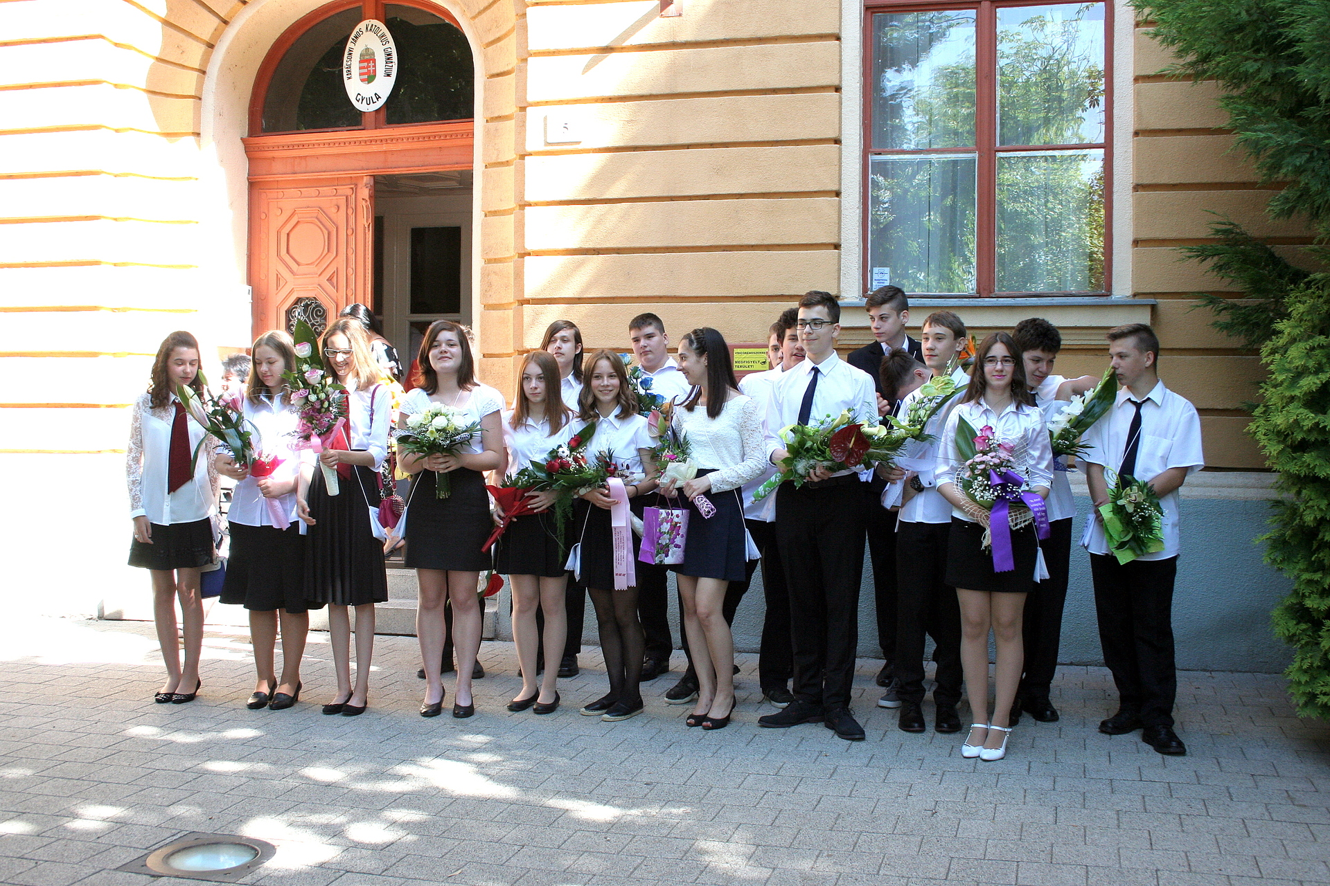 A tantestület nevében a tizenkettedikes és a nyolcadikos ballagókat Petróczki Zoltánné igazgató búcsúztatta. Évértékelésében kiemelte, az intézmény diákjai kiválóan teljesítettek az idei tanévben, helyi, megyei és országos szinten is remek versenyeredményeket értek el. Összesen 100 tanulmányi és 35 sportversenyen vettek részt, és számos alkalommal álltak fel a dobogó legmagasabb fokára. A gimnáziumban ötvennyolcan érettségiztek, közülük huszonegyen az előrehozott vizsgarendszer keretében, néhányan nyelvvizsgát is szereztek.