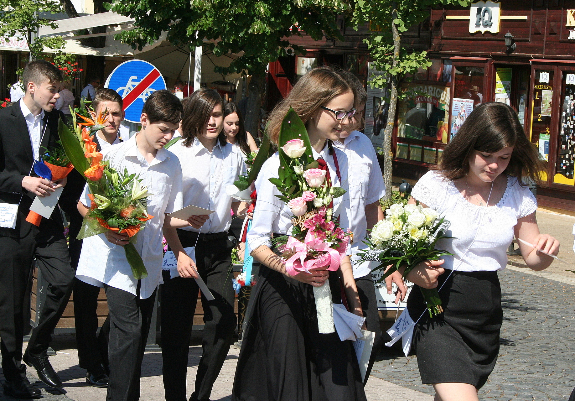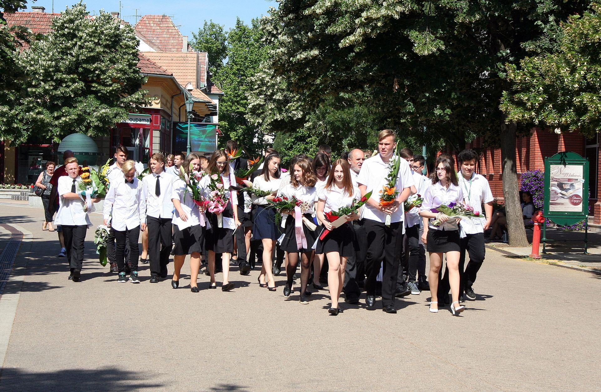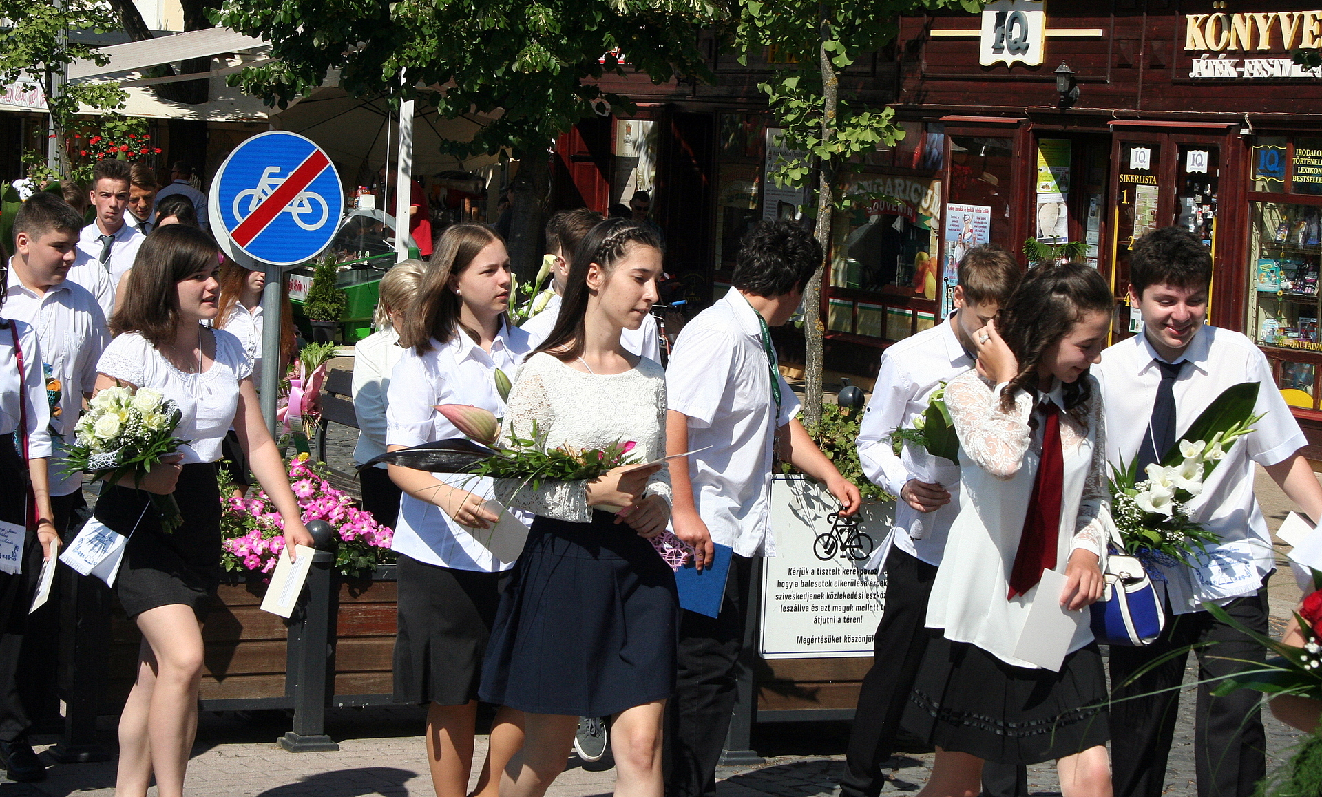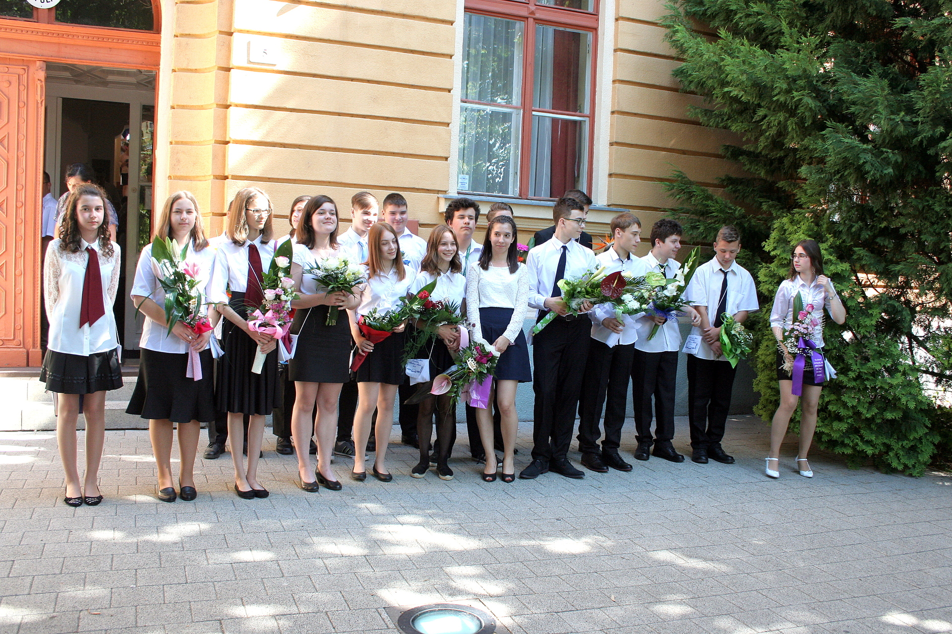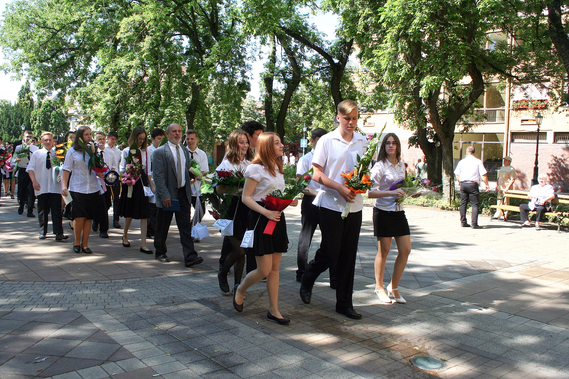 A tantestület nevében a tizenkettedikes és a nyolcadikos ballagókat Petróczki Zoltánné igazgató búcsúztatta. Évértékelésében kiemelte, az intézmény diákjai kiválóan teljesítettek az idei tanévben, helyi, megyei és országos szinten is remek versenyeredményeket értek el. Összesen 100 tanulmányi és 35 sportversenyen vettek részt, és számos alkalommal álltak fel a dobogó legmagasabb fokára. A gimnáziumban ötvennyolcan érettségiztek, közülük huszonegyen az előrehozott vizsgarendszer keretében, néhányan nyelvvizsgát is szereztek.