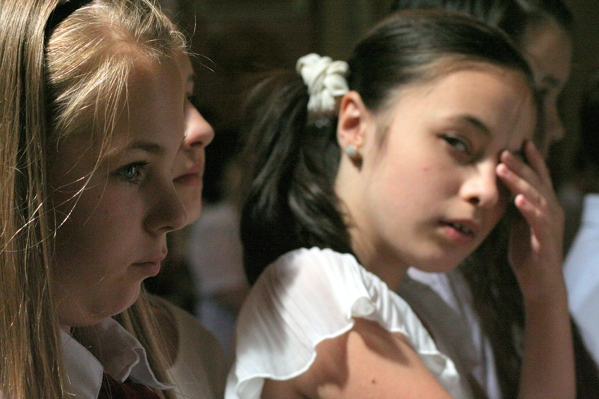 Rendkívüli osztályfőnöki órán búcsúztatták el a Karácsonyi János Katolikus Általános Iskola nyolcadikosait szombat délelőtt. A 8. a osztály 21 tanulójától Kiss András osztályfőnök köszönt el, a 8. b osztály 24 diákja pedig Bánkiné Szabó Judit osztályfőnökkel tekintett vissza az elmúlt nyolc esztendőre, s derűsen nyugtázta az időszak tanulságait.