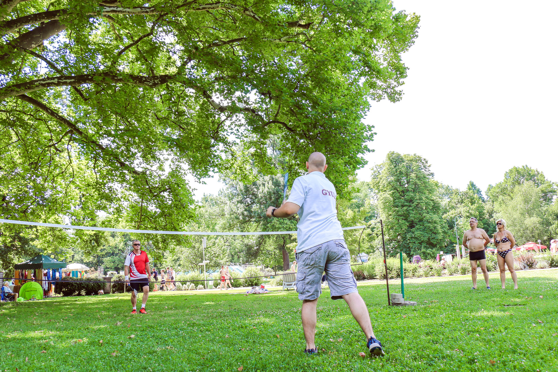 A JALTE fiatal versenyzői és edzőjük, Viczián János várt rám a csaknem kétszáz éves platánfa árnyékában felállított tollaslabdapályán. A békéscsabai sportklub a Gyulai Várfürdő meghívására érkezett, hogy népszerűsítse a hatalmas kultusszal rendelkező sportágat.