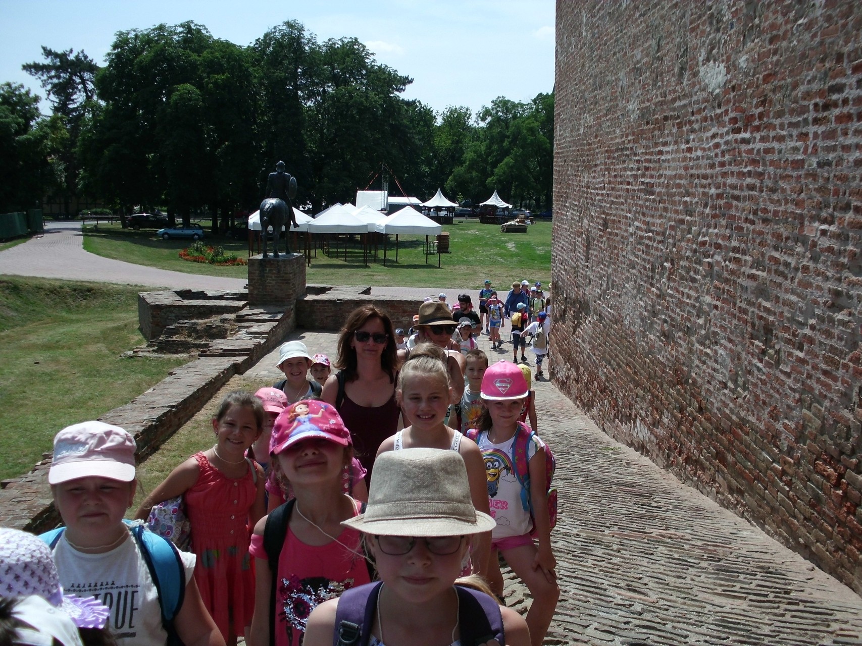 A finom ebéd elfogyasztását követően felkerekedtek a csoportok, hogy külső helyszíneken szervezett programokon vegyenek részt. Kisvonattal kiutaztunk Szanazugba, ahol hajóra szálltunk, majd gyönyörködtünk a Körösök szépségében. Ellátogattunk a gyulai várba is, ahol a gyerekek korhű ruhákba bújtak, a fiúk még egy lovagi tornán is részt vehettek. A kalandparkban aztán bátorságpróba következett, majd a gyerekek megismerkedtek a süvegcukor-készítő mesterséggel.