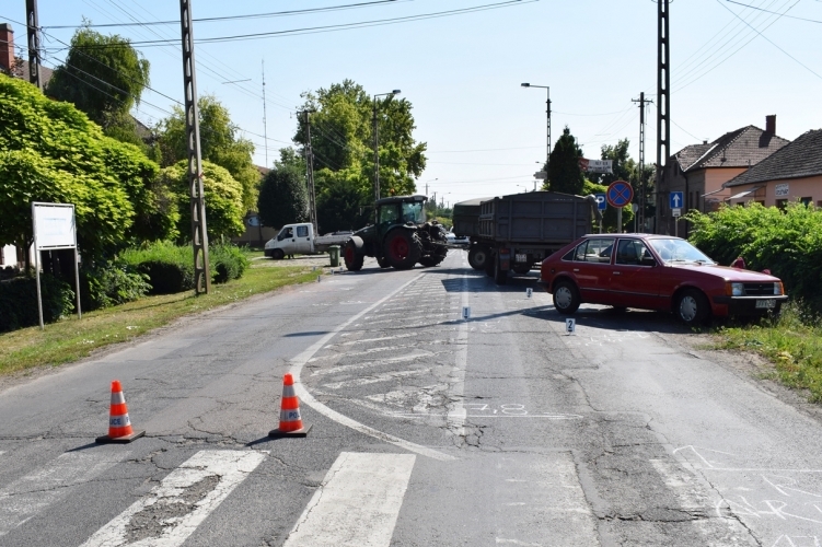 Mezőkovácsházán, az Árpád utcában reggel háromnegyed nyolc körül egy pótkocsis mezőgazdasági vontató személygépkocsival ütközött össze. A személygépkocsi egyik utasa könnyebben megsérült.