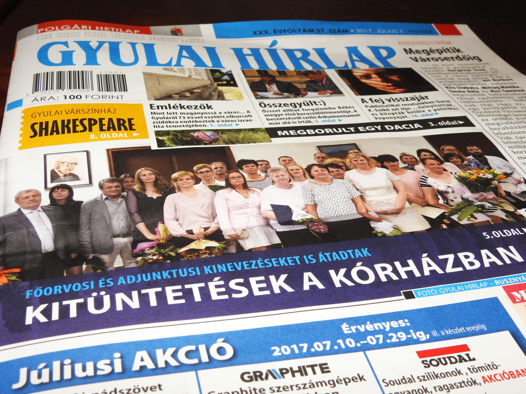A Gyulai Hírlapot saját kézbesítőink viszik el az önök által megadott lakcímre hétről hétre. Előfizetőink már szerdán este kézbe vehetik és olvashatják a friss Gyulait! Az előfizetésnek más előnye is van, arról nem is beszélve, hogy előfizetve 33 forinttal olcsóbb egy lapszám. A Gyulai Hírlapra egy kerek esztendőre csupán 3500 forintért fizethet elő. Lapunk ajándéknak sem utolsó! Ha az előfizetéssel kapcsolatosan kérdése lenne, hívja Csepregi Brigittát a 06-30-627-6889-es számon.
