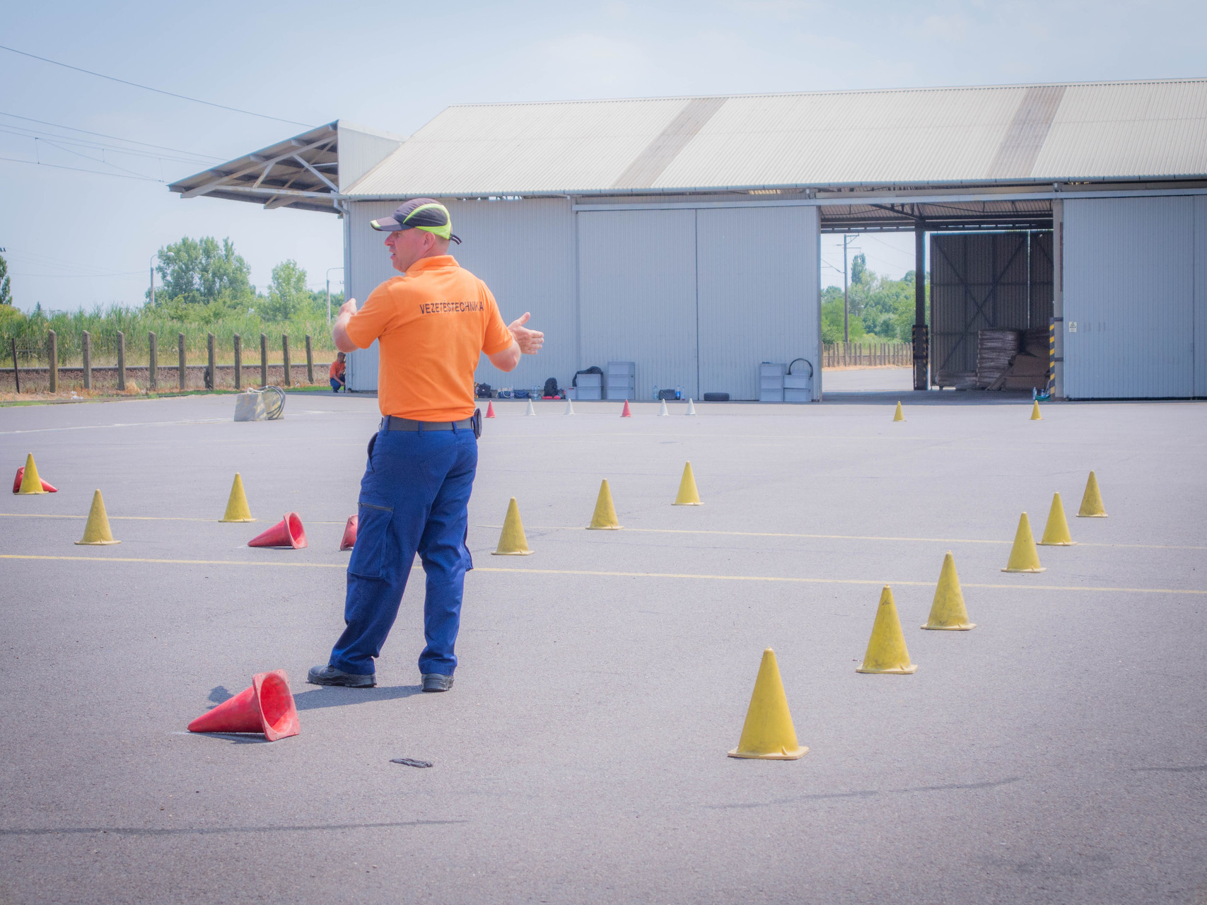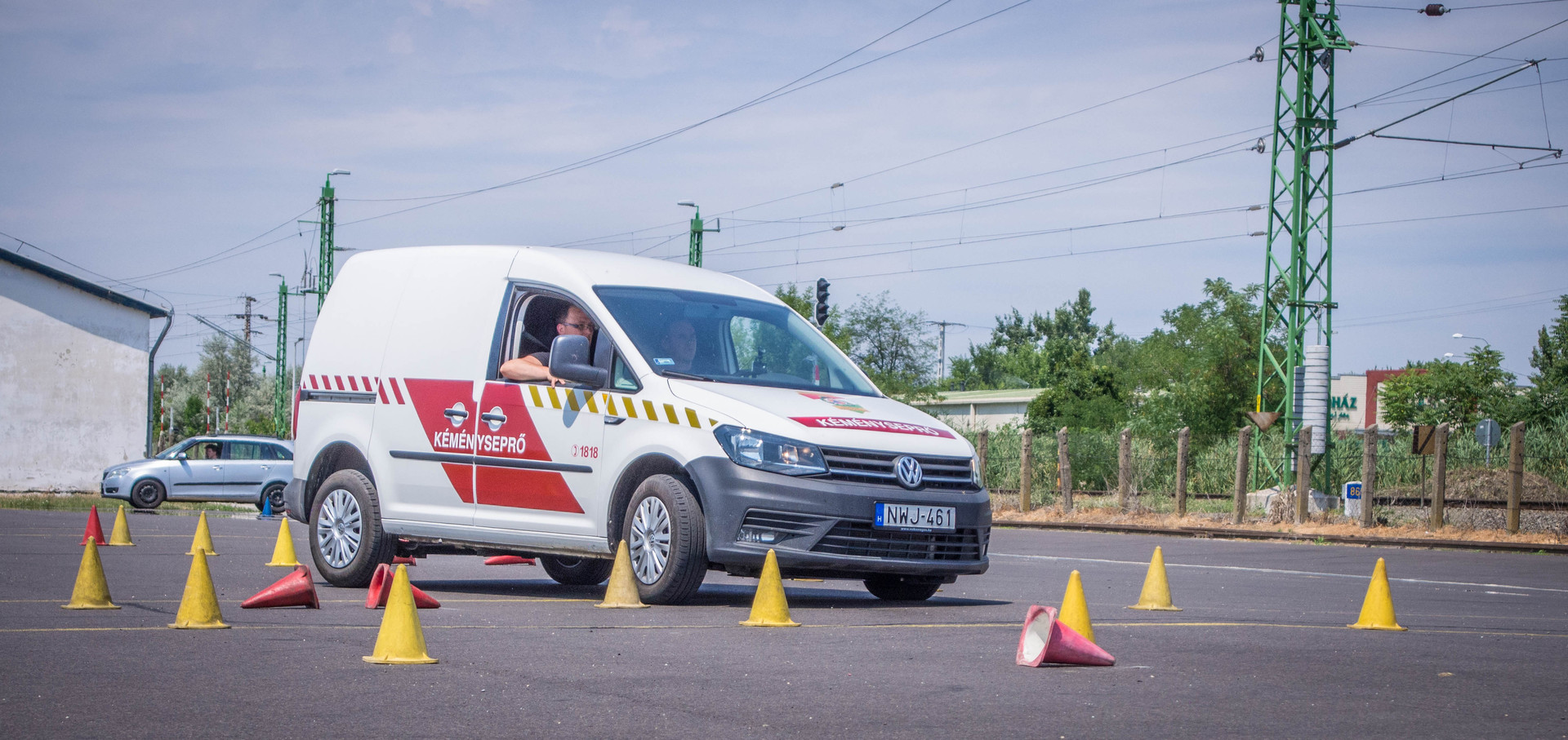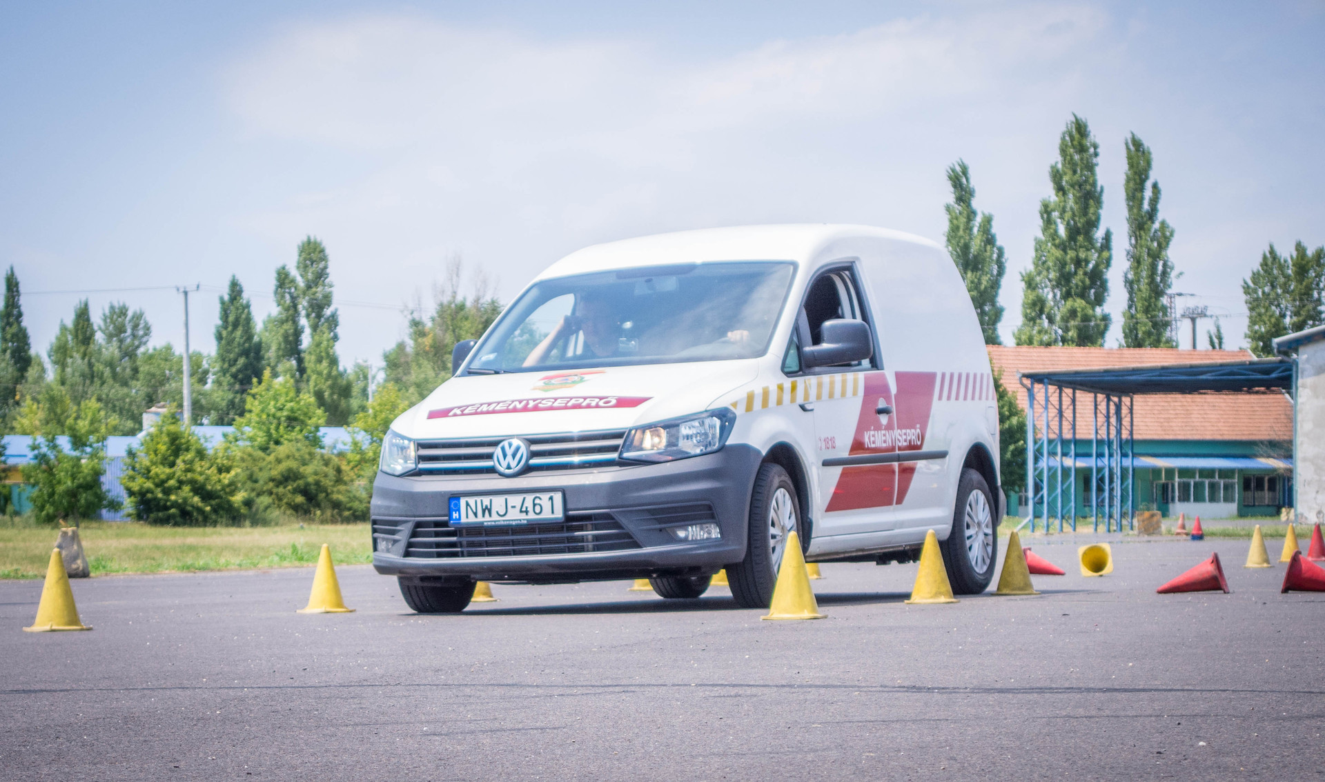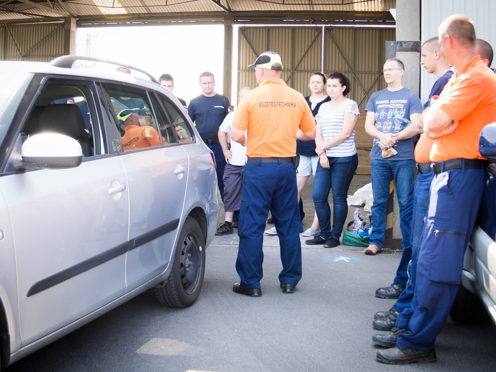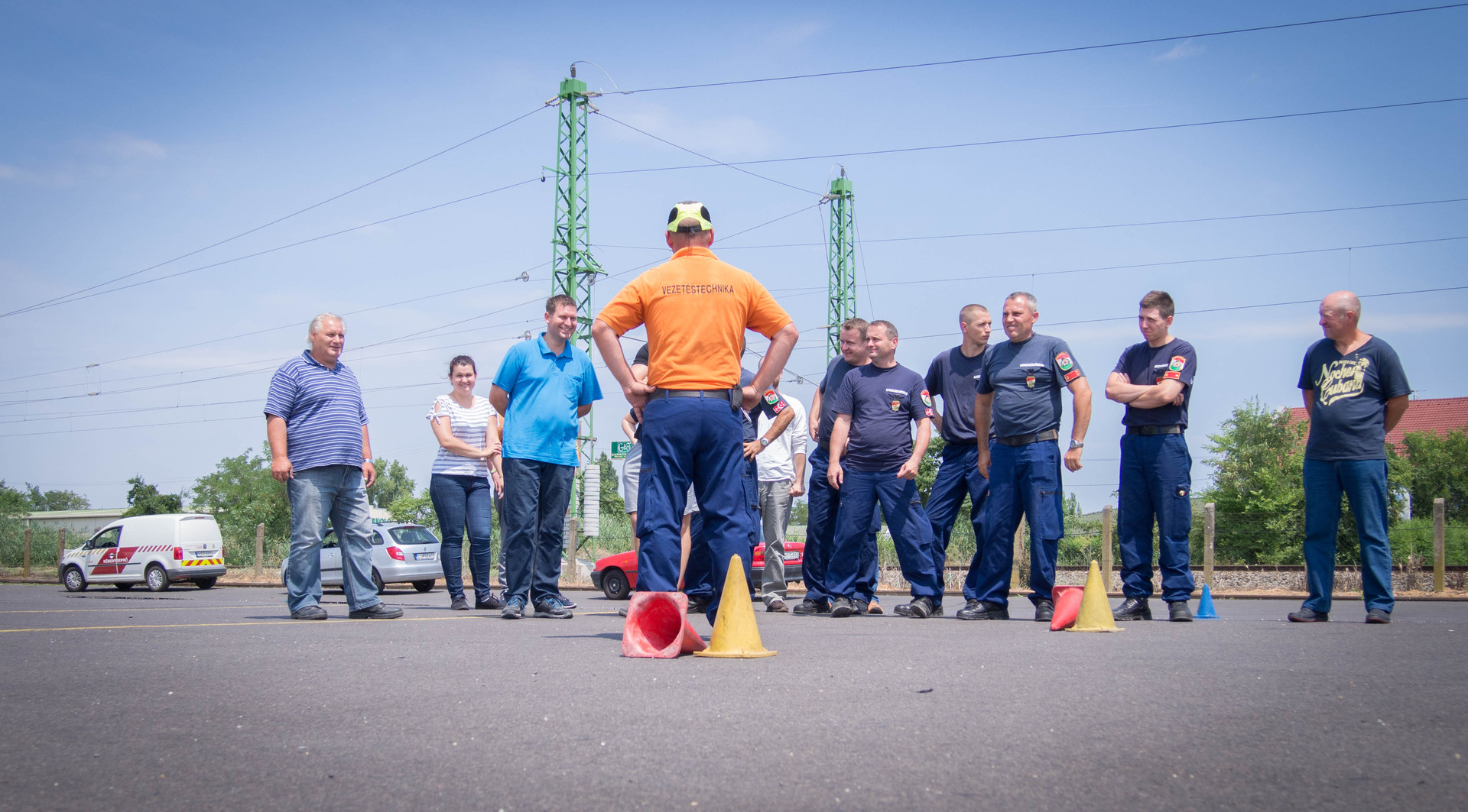 Ezek a fiúk egész héten itt vannak, napi húsz emberrel foglalkoznak átlagban ezen a tanpályán. Hogy milyen apropóból? A 16/2013 (V.28) BM-utasítás alapján, mely a hivatásos katasztrófavédelmi szervre is vonatkozik, szolgálati gépjárműveket csak olyan személy vezethet, aki megfelel egy alapszintű vezetéstechnikai vizsgán. Ennek keretében zajlik ország szerte az oktatás, melyen több ezer főnek kell részt vennie. A rendelet alapján ide tartoznak a katasztrófavédelem hivatásos, valamint kormánytisztviselői és közalkalmazotti, valamint munkavállalói állománya, de még a Bevándorlásügyi Hivatal emberei is. Utóbbiak ugyan nem tartoznak a katasztrófavédelemhez, de a BÁH-nak nincs saját csapata erre a feladatra, így esett a választás a katasztrófavédelem trénereire.