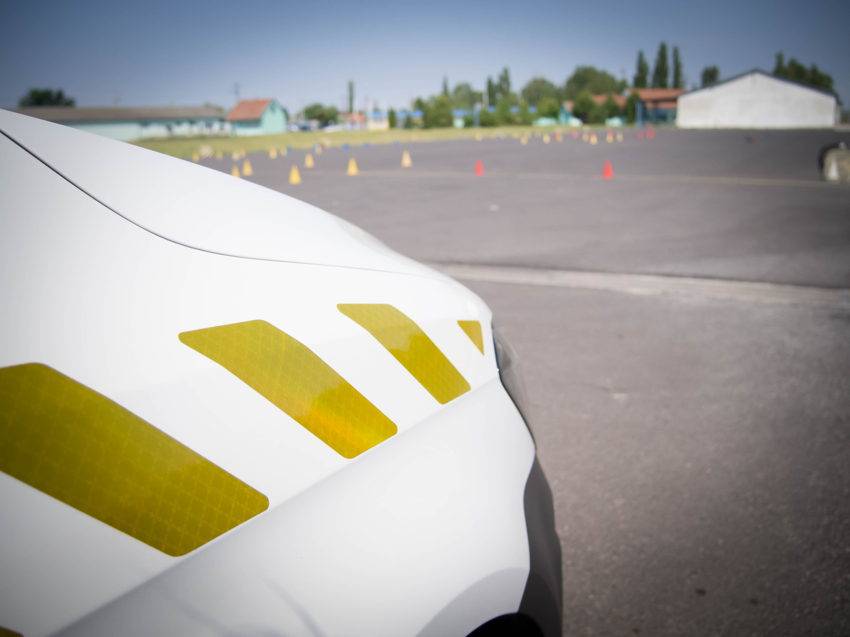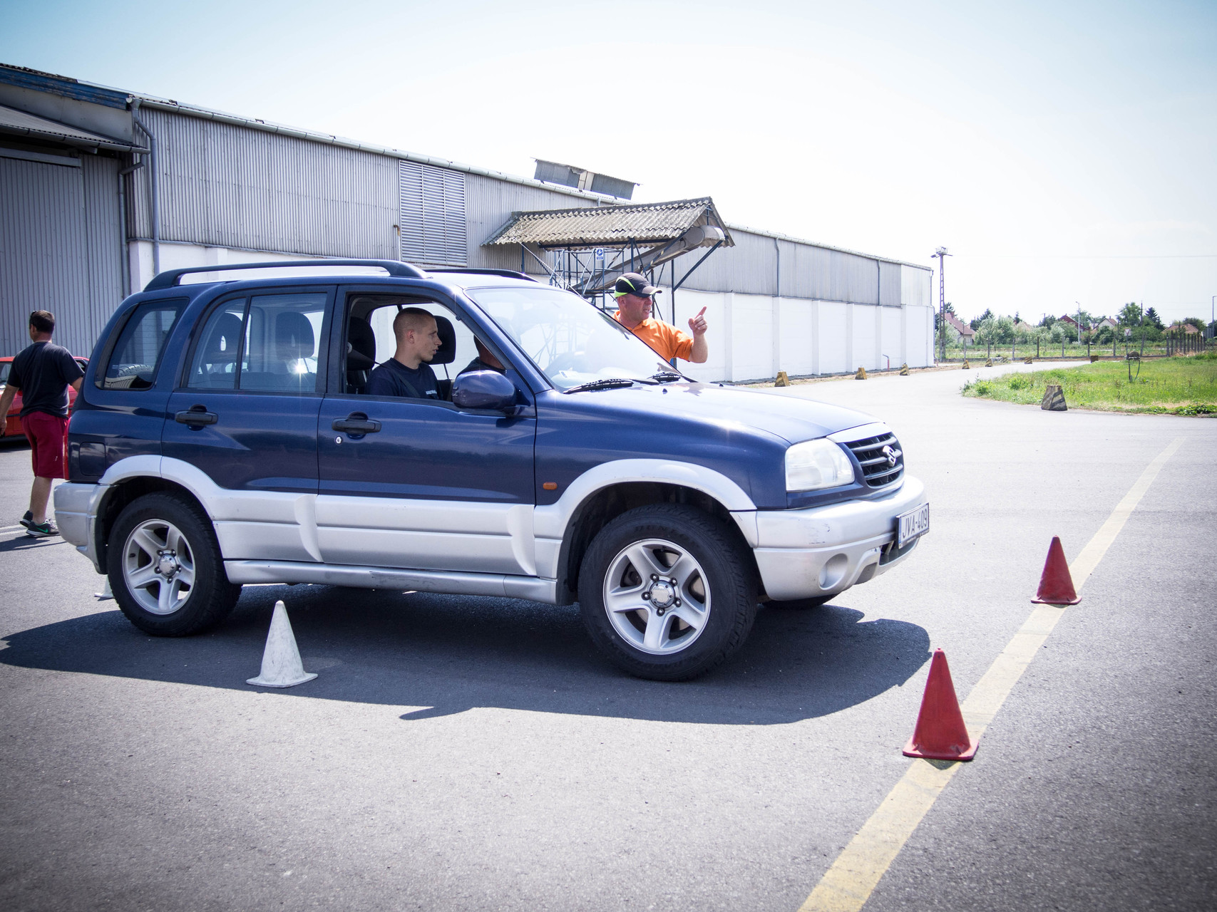 A tanpályán persze elhangoznak a kötelező instrukciók annak érdekében, hogy az oktatás személyi és járműsérülések nélkül történhessen. A vezetési elmélet után végre mindenki elfoglalhatta helyét a volán mögött vagy éppen az első utasülésen. Ez utóbbi a balansz. Az itt helyet foglaló utas biztosítja a jármű egyensúlyát, hogy az minden irányban azonos menettulajdonságokkal bírjon. Emellett persze, mint ahogy azt az oktatók is mondják: „Okos ember a másik hibájából tanul!” Itt kiválóan át lehet élni a pályát, látni lehet, mire hogy reagál az autó, s ezt a tapasztalatot lehet később hasznosítani.
