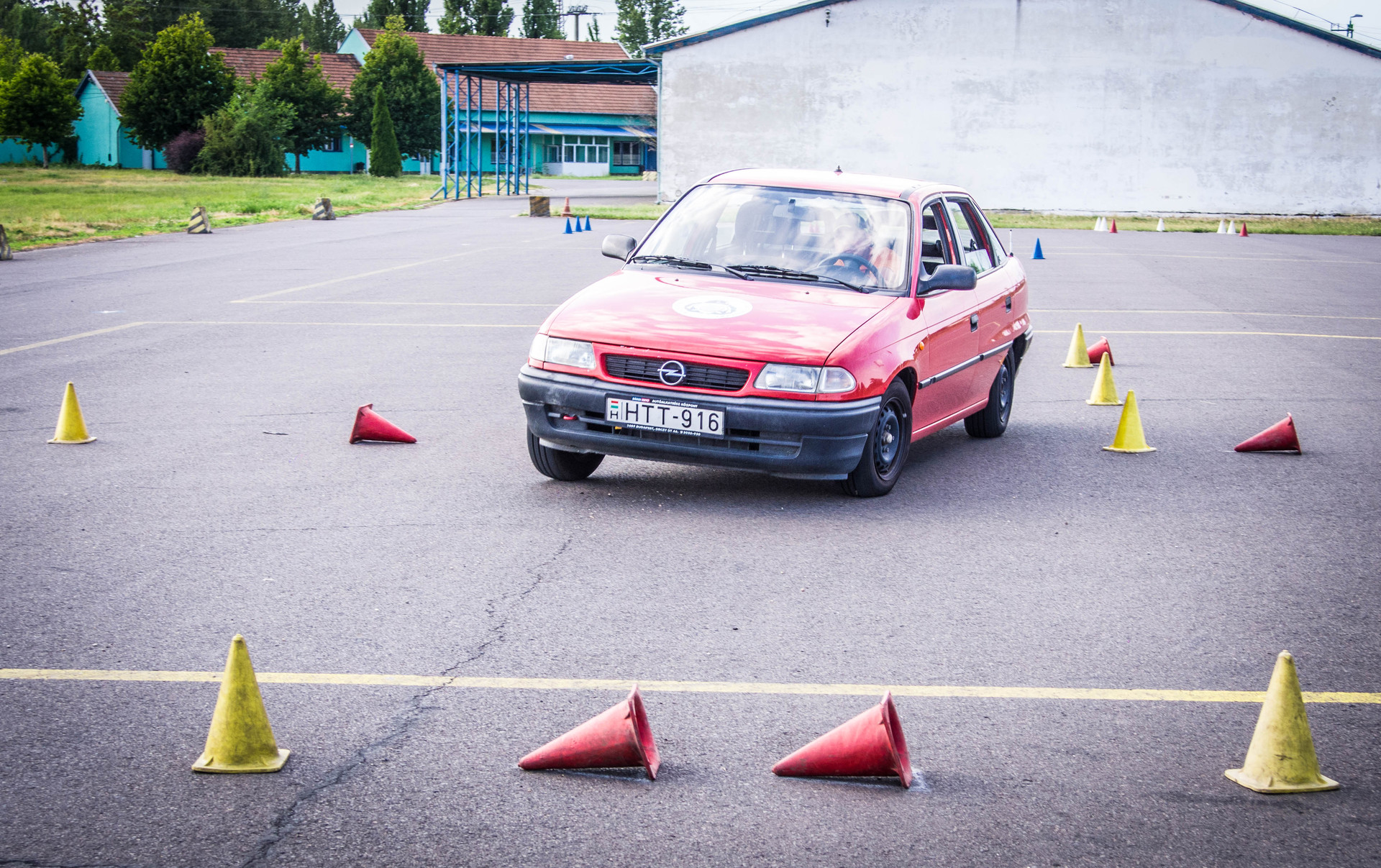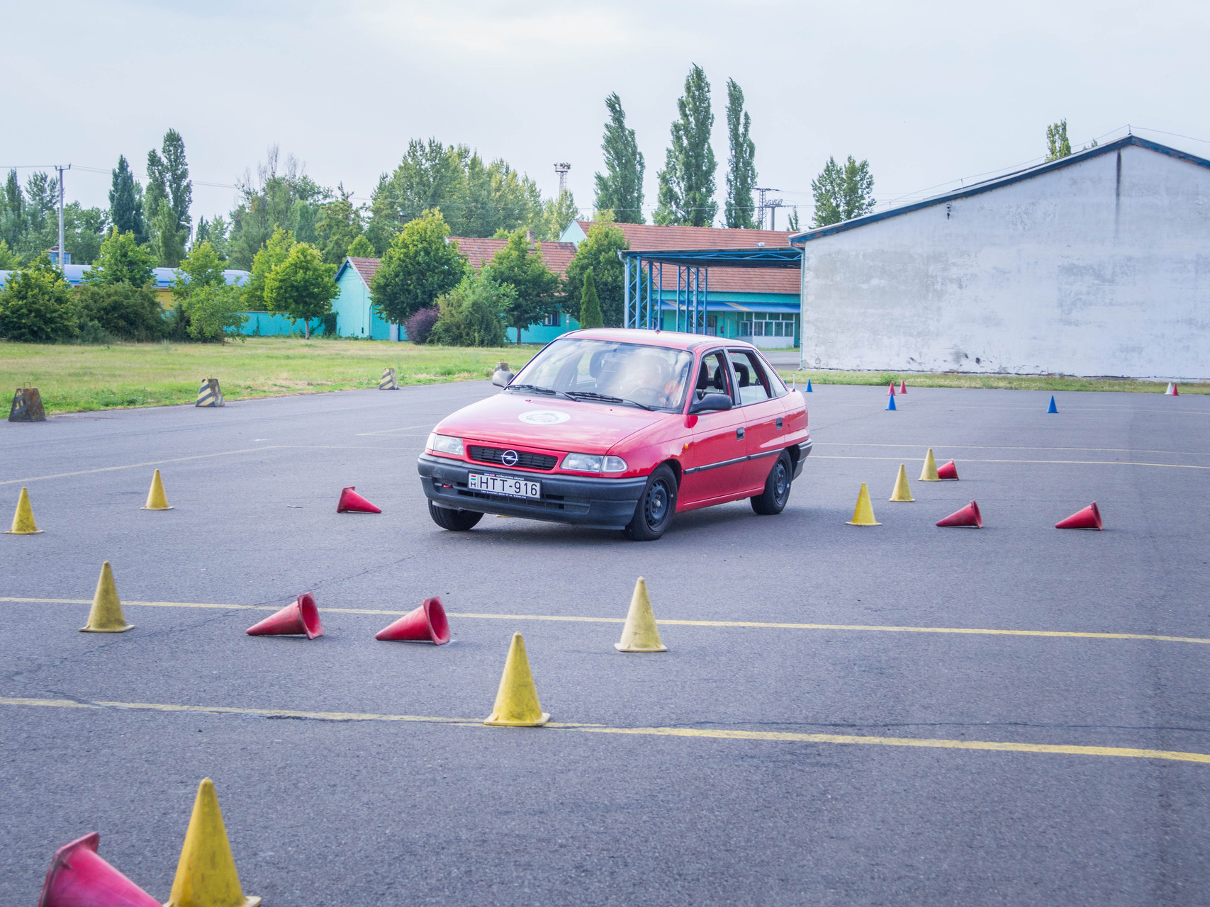 A pályán először alapvetően két elemet gyakorolnak a résztvevők. A garázsméretű helyre történő beállást orral és tolatva minden irányból, valamint a szlalomozást. Amikor ez már mindenkinek megy, akkor következik egy hirtelen elkerülést szimuláló elem gyakorlása, valamint egy cél- és vészfékezés, mely a közúti közlekedésben előforduló veszélyhelyzeteknél lesz jól hasznosítható.