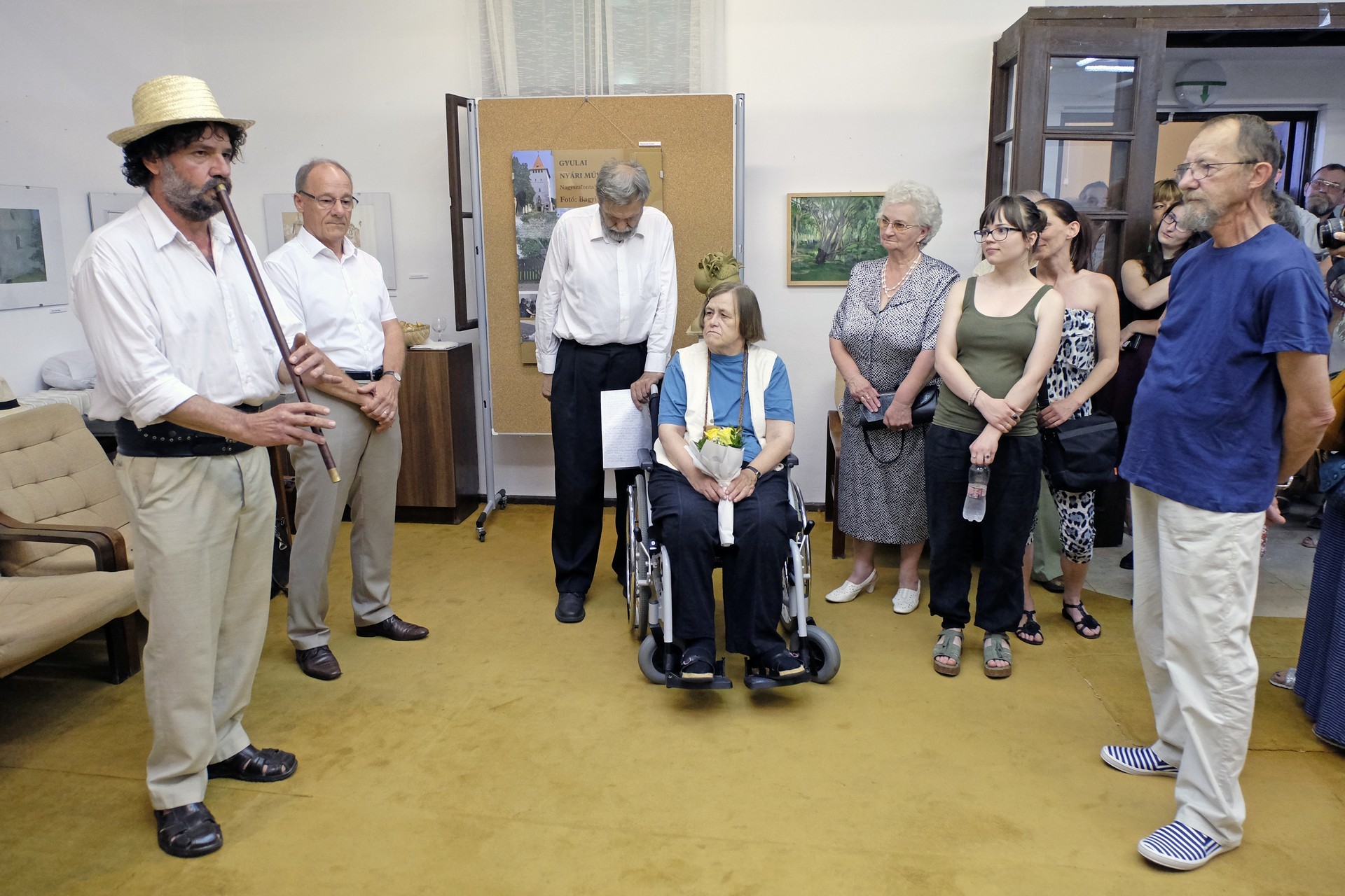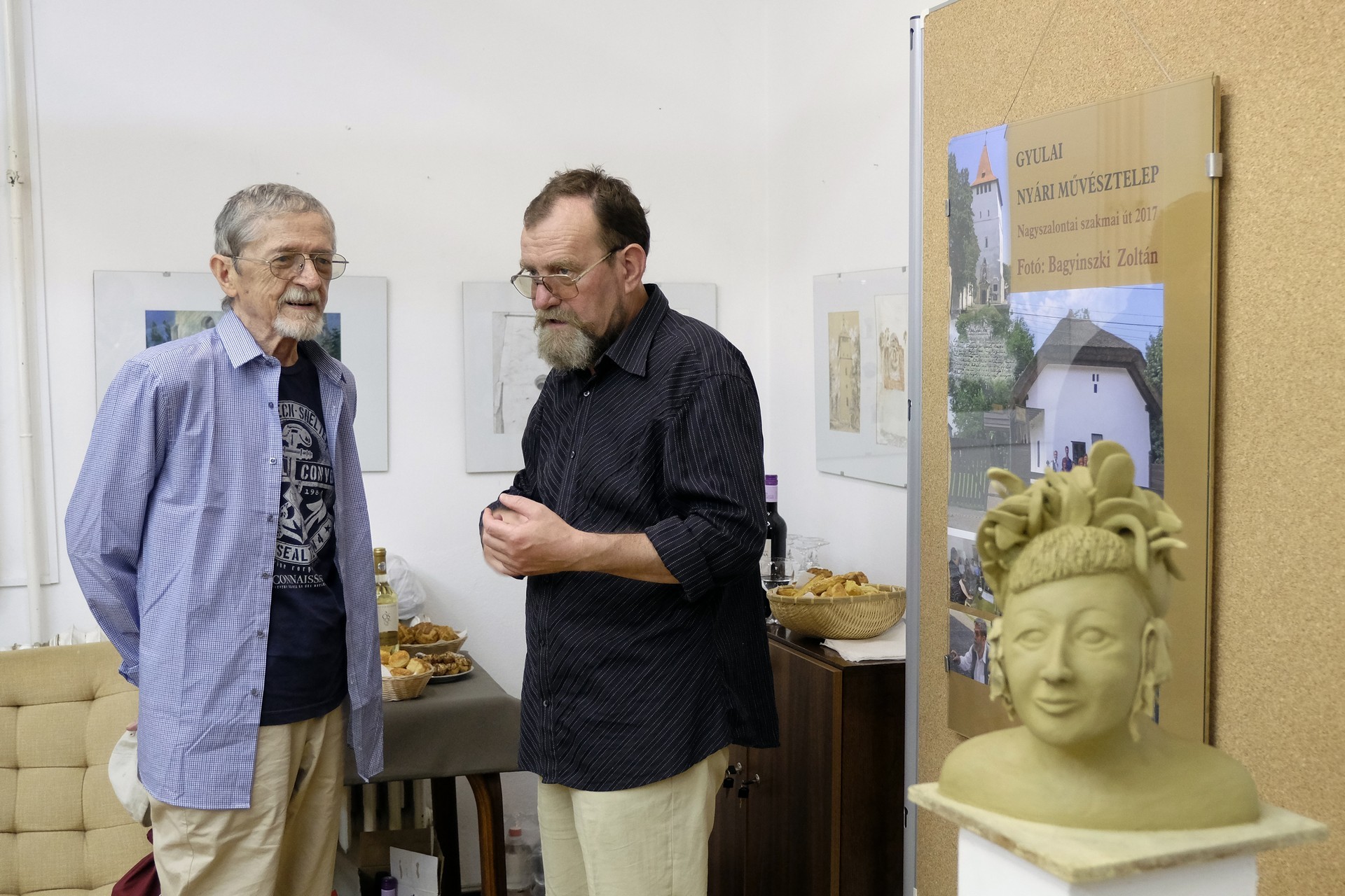A tárlat megnyitója Pribojszki Ferenc furulyajátékával indult, majd Lakatos József Péter adott elő egy verskoszorút. A kiállítást Bagyinszki Zoltán nyitotta meg, akit rengeteg szál fűz a művésztelephez, hiszen ő a csoport önkormányzati összekötője, egyben barátjuk is. Beszédében – amely alatt egy összeállítás futott az általa, a telepről készített fotókból – kiemelte, hogy Gyula a kultúra magyar városa, amelynek életében a művésztelep kiállításának megnyitója mindig ünnepi esemény. Hozzátette, hogy reméli, a következő 48 évben is itt fog alkotni a társaság.