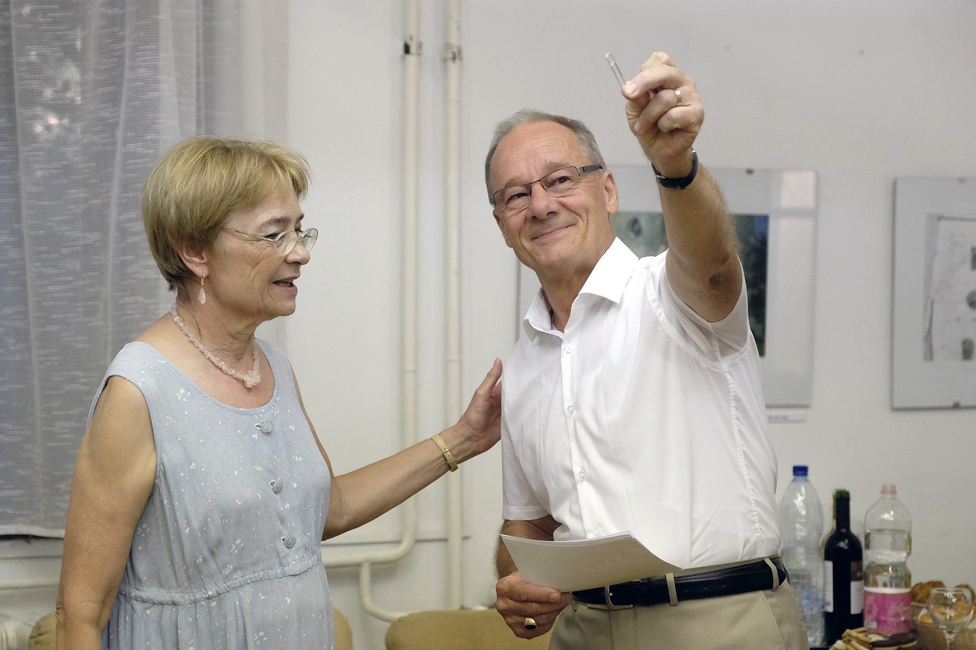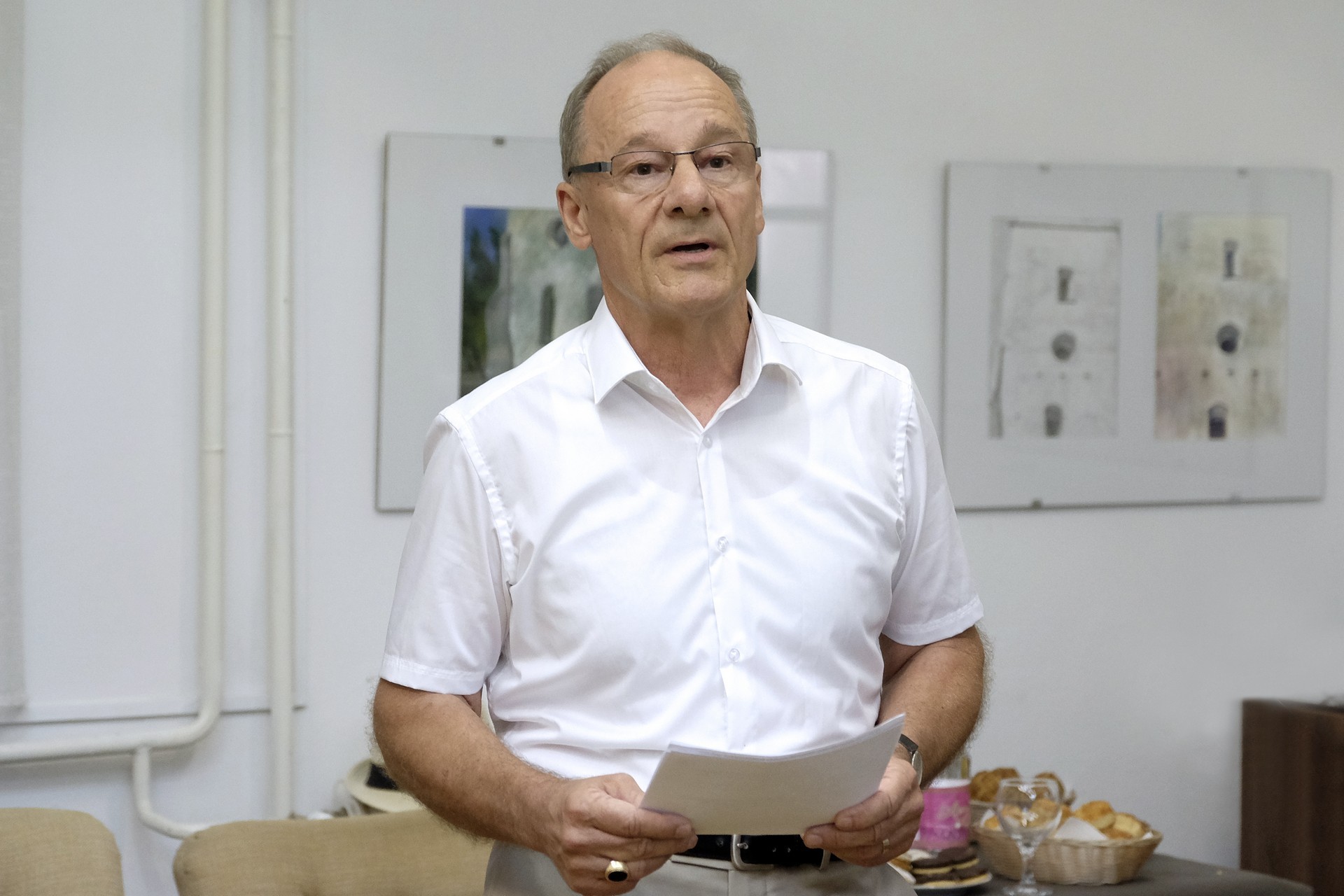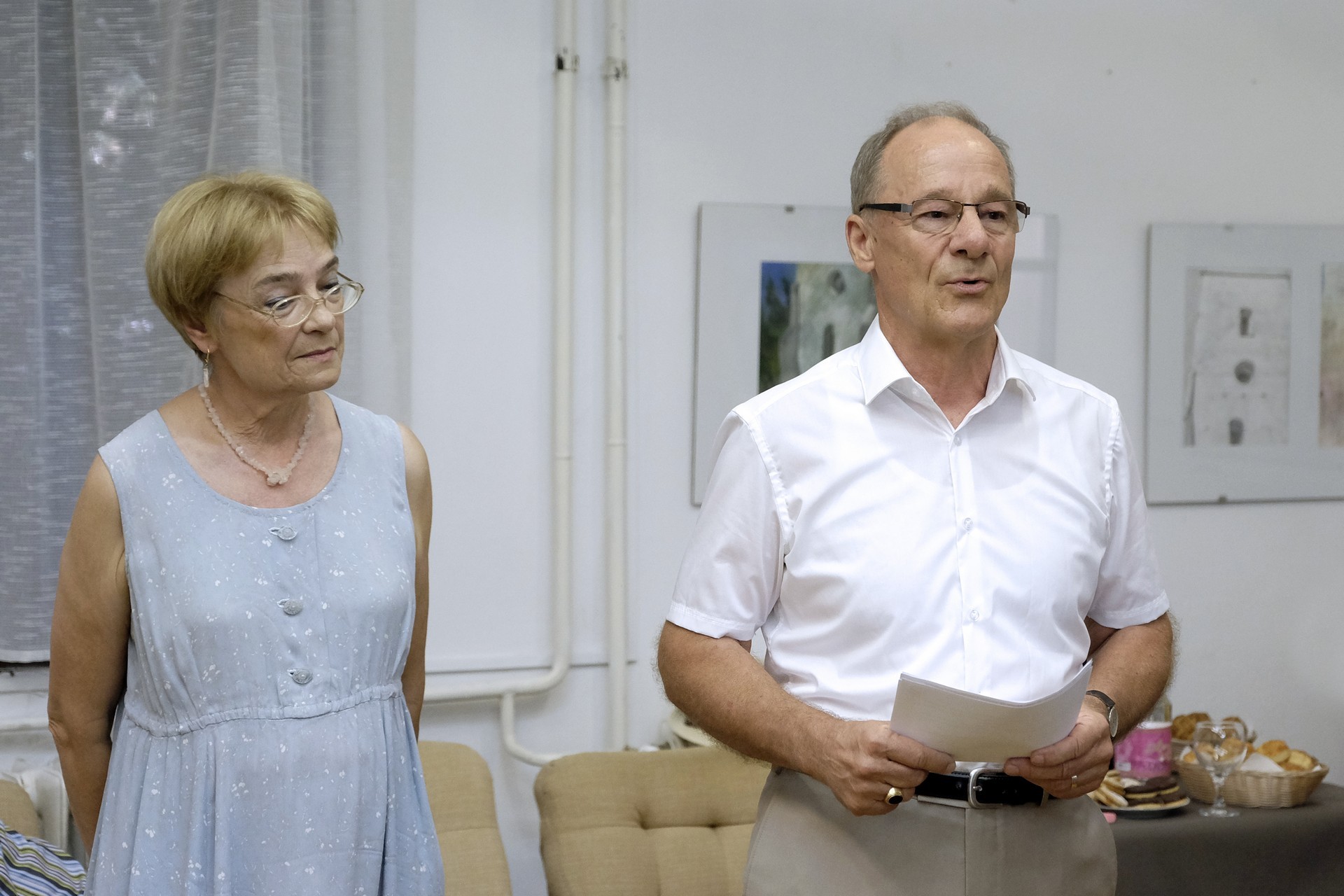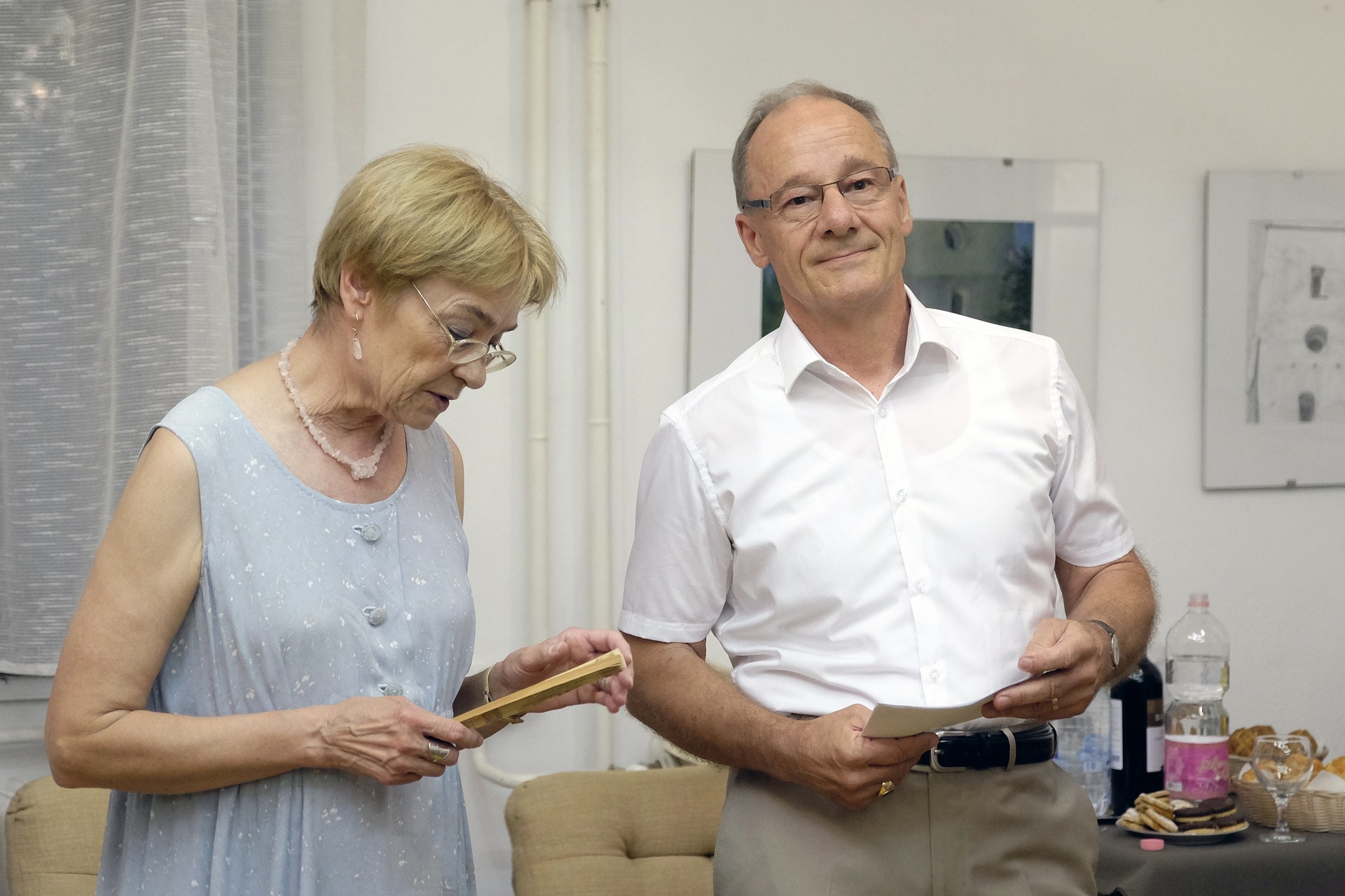 A Gyulai Nyári Művésztelep tagjai is készültek egy különlegességgel, hiszen Bagyinszki Zoltán nyugdíjba vonul az év végén, ezért és köszönetképpen a rengeteg segítségért, az egyik kiállított festménnyel ajándékozták meg őt.