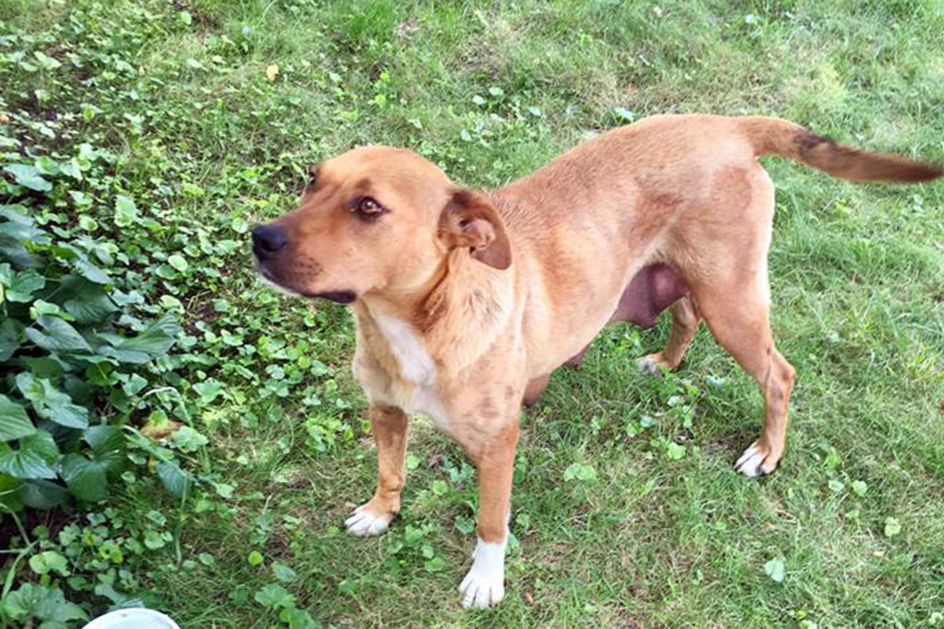 A mamát szerették volna befogadni, de a család kutyái nem fogadják el, így ő is gazdikereső. Barátságos, szelíd, jóindulatú kutyus.