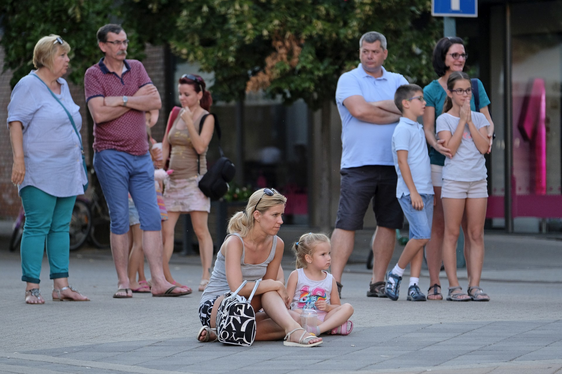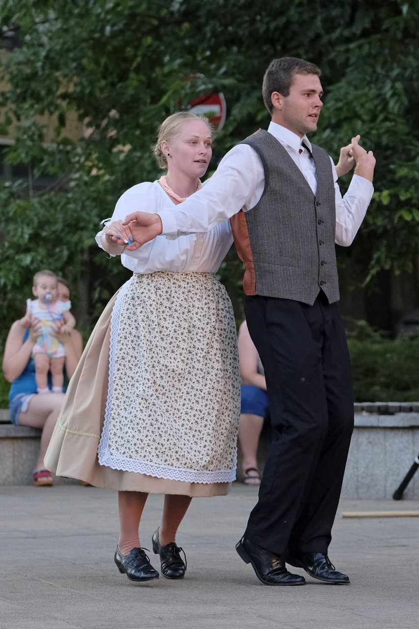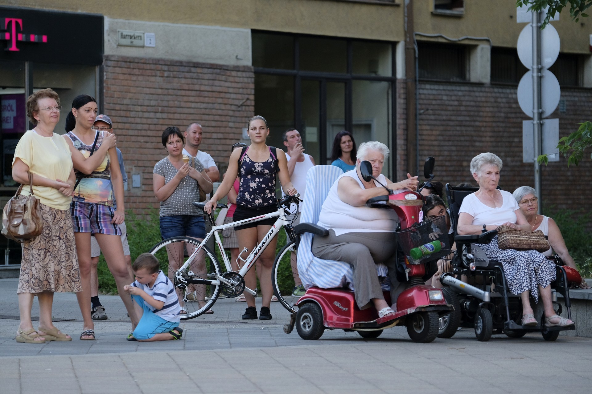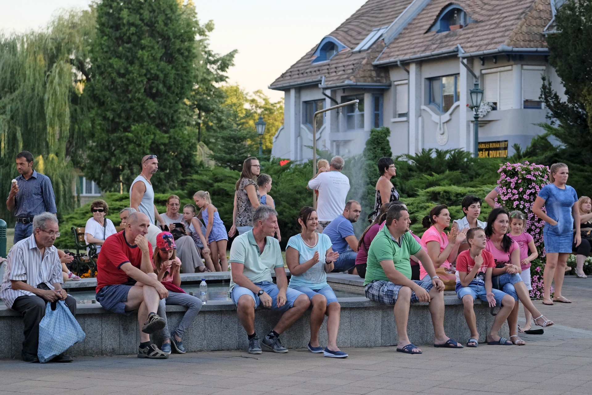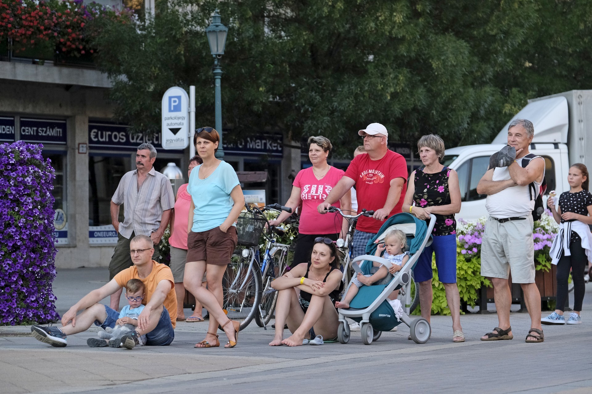 A mostani alkalomkor a Harruckern téren járók izgalmas produkciónak lehettek szemtanúi, hiszen a néptánc fürdővárosi képviselői táncolták el repertoárjukat. A népviseletbe öltözött előadók a Körösök-völgyének helyi sajátos tánchagyományaiból adtak elő. A több mint fél órás előadást gyönyörű zenék tették impozánsá.