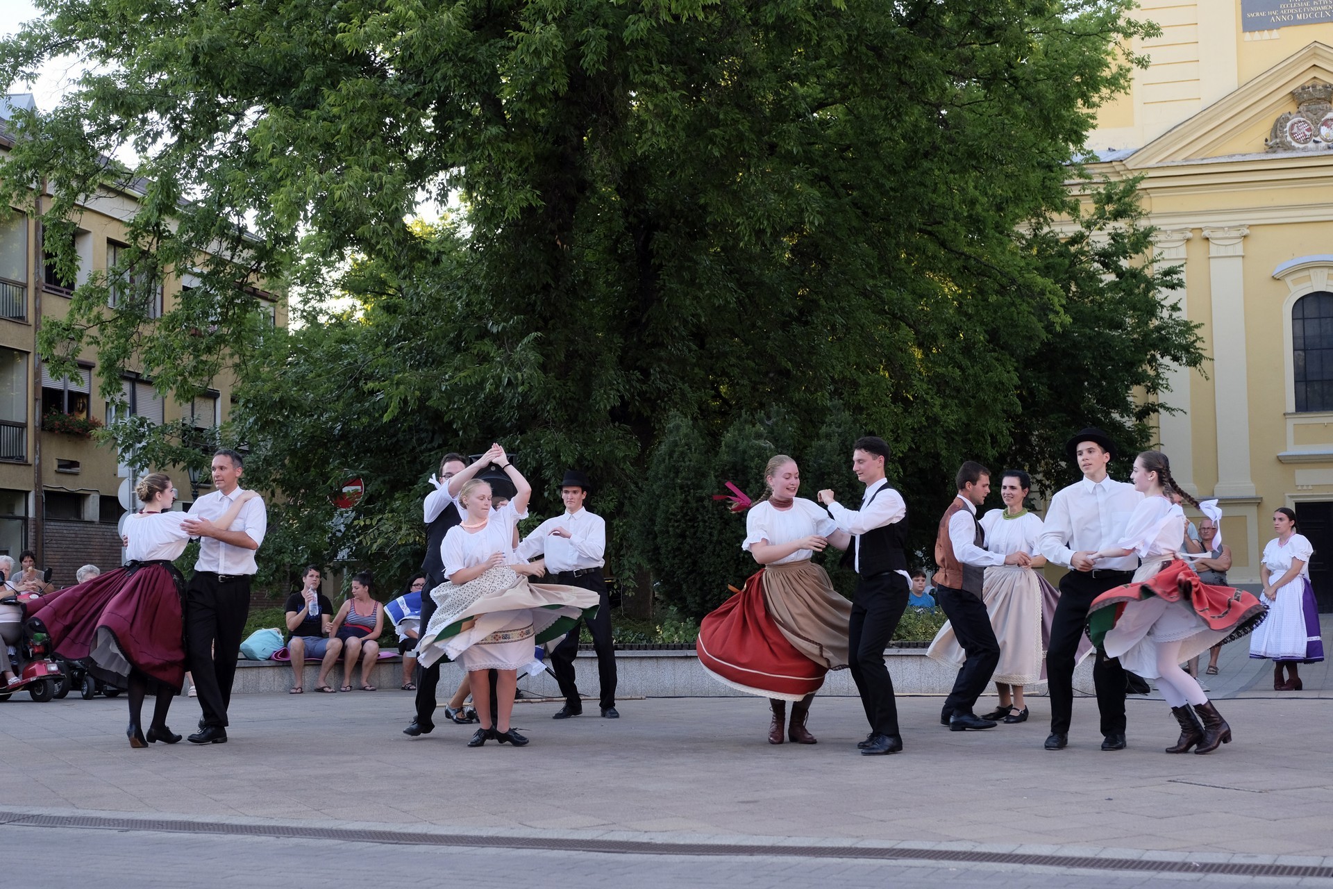A Harruckern Táncegyüttes a belvárosi katolikus templom előtt lépett fel