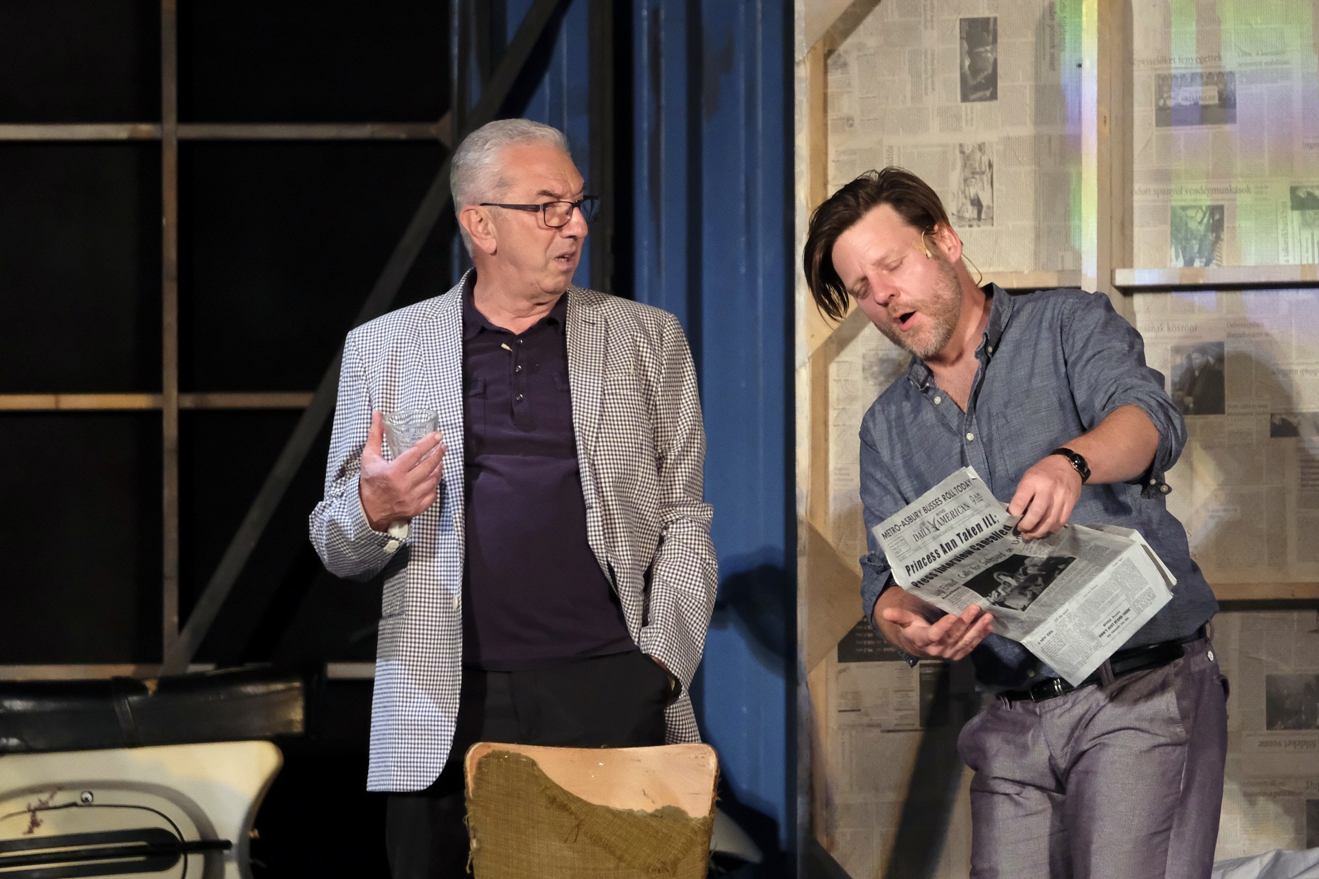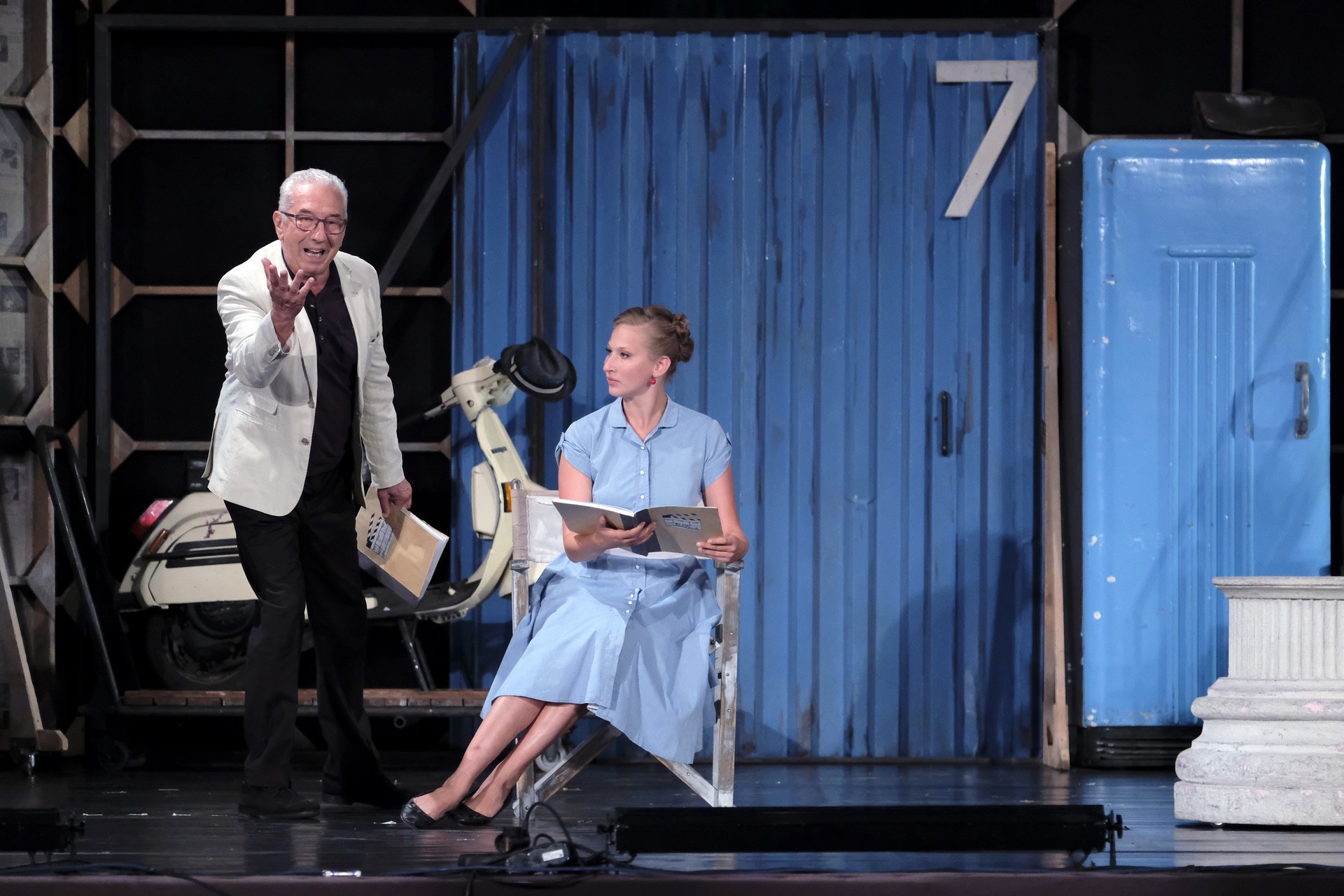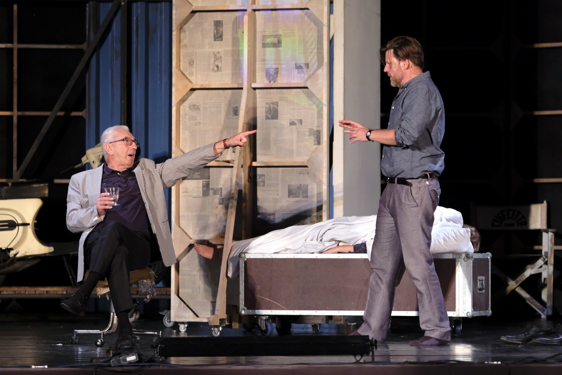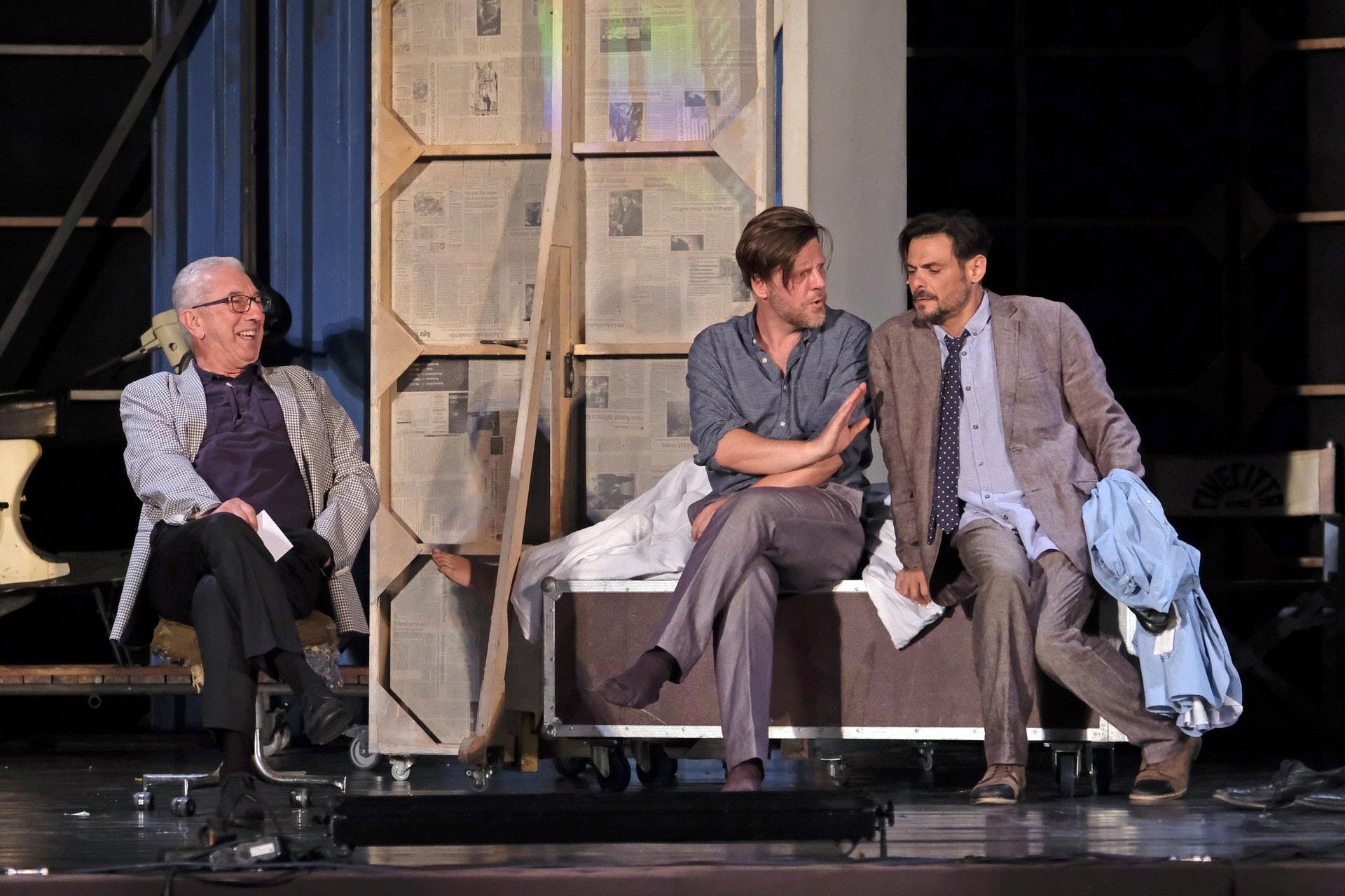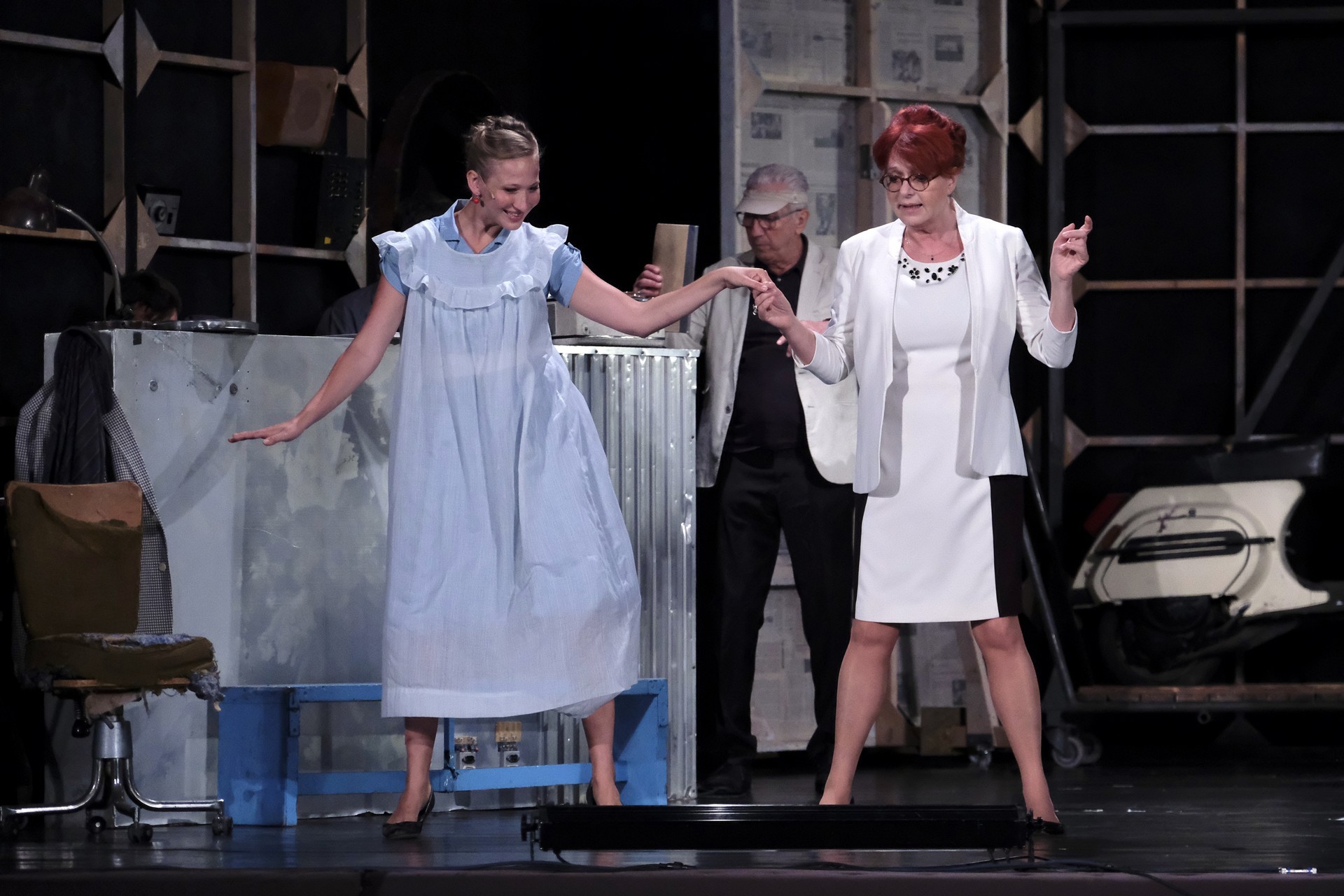 A megelevenedő történet másik szála minden korban megállja a helyét. A rendező meglátta a lehetőséget, hogy színházat készítsen a színházban. Ez alkalmassá teszi a történet kereteit arra, hogy egy szokásos színdarab próbájának munkafolyamataiba tekinthessünk bele – méghozzá élőben. A színész is ember, a munkahelyen vitázik, főnöke van, idősebb mestere van, féltékenység, irigykedések, intrikák és kritikák kísérik pályáját. A párhuzamokban látott aktuálisabb szálak azok a túlkapások, amelyeket a jelenkori média siserehada hoz magával. A hírességek magánélete nem szent, paparazzák és paparazzók követik minden lépésüket, a róluk szóló hírek hírértéke pletykalapoktól függően konvergál a nullával. Azért reméljük, ezt a szintet mindenkor és mindenképpen sikerült túlszárnyalni!