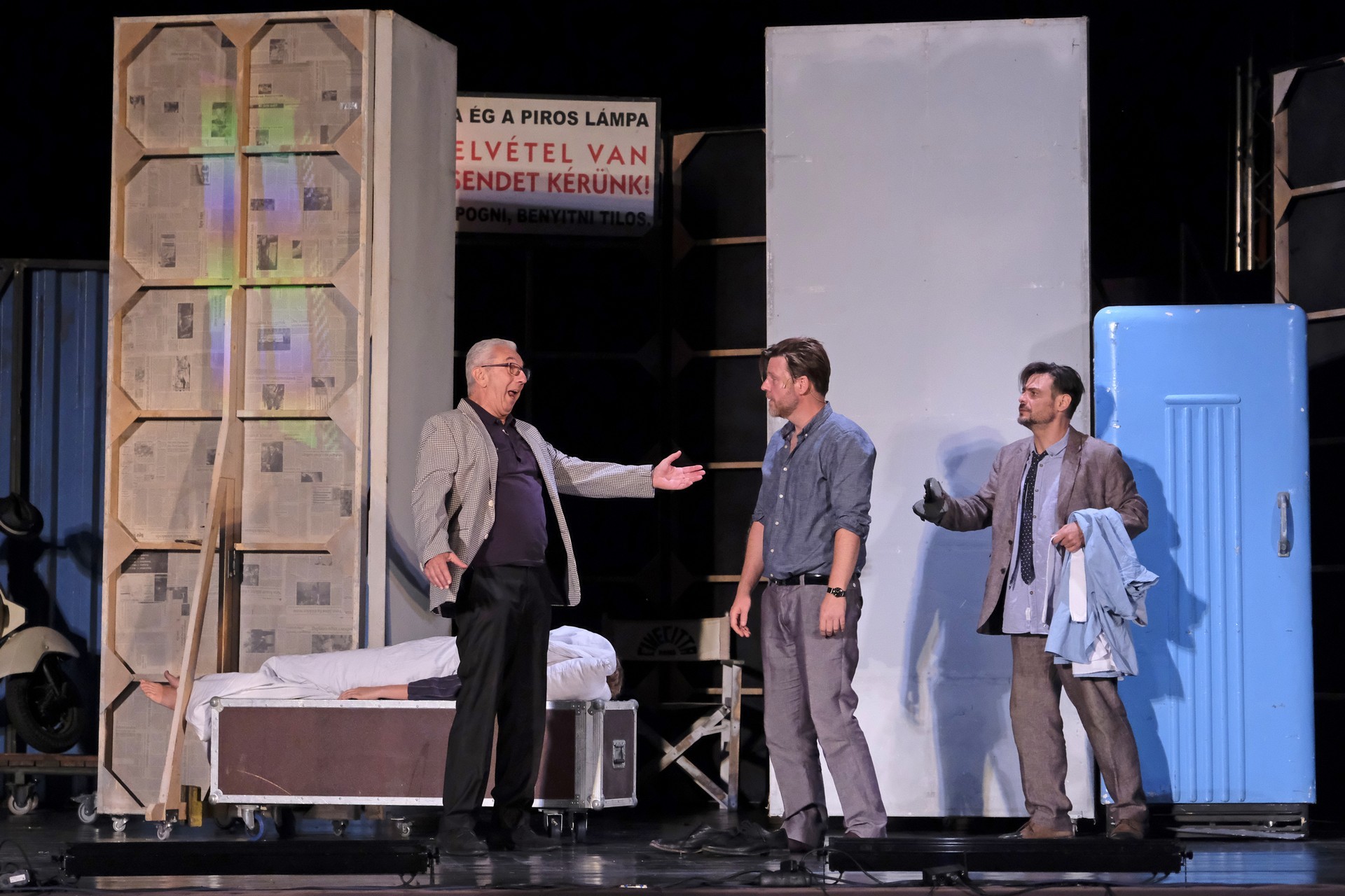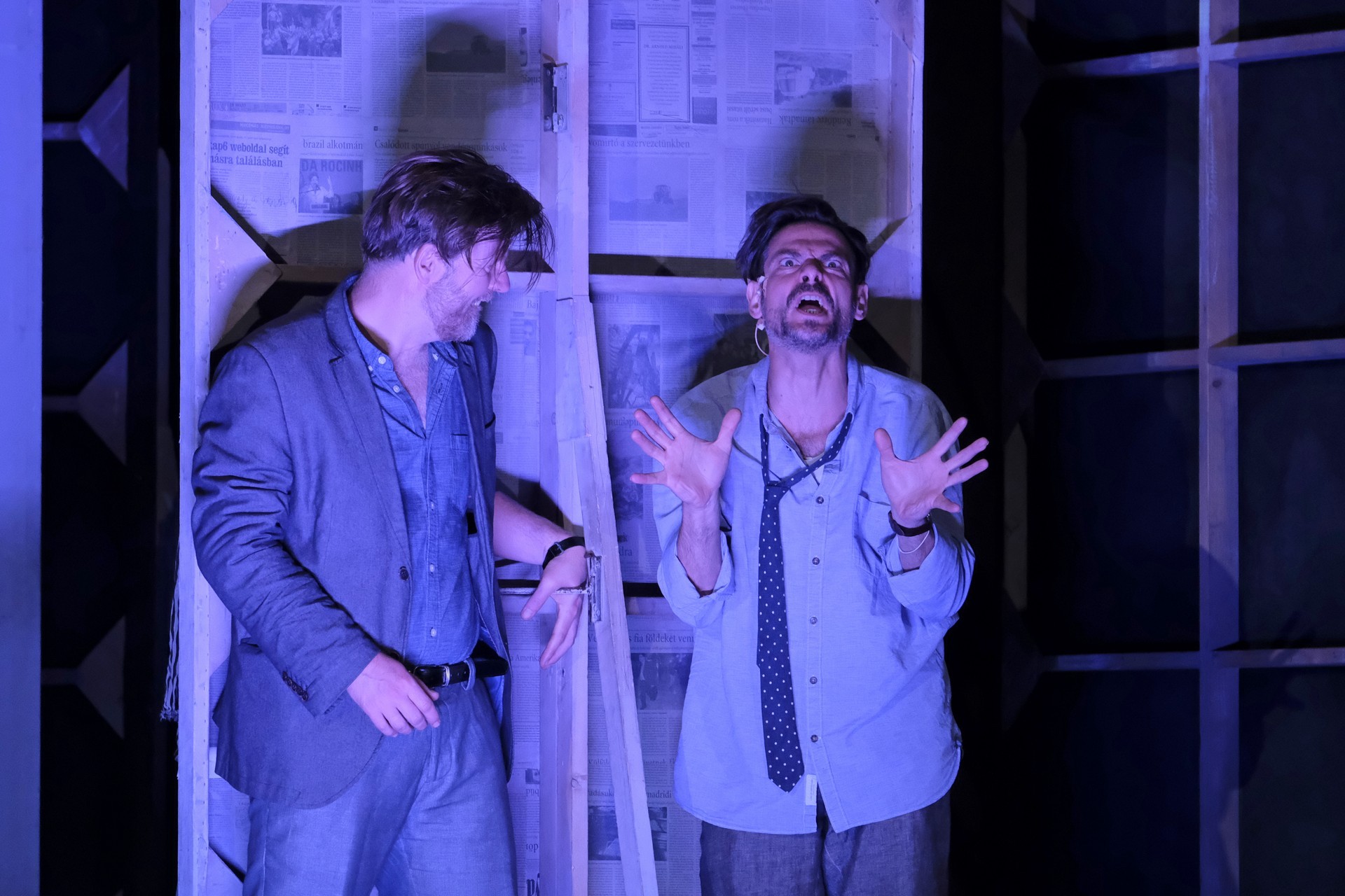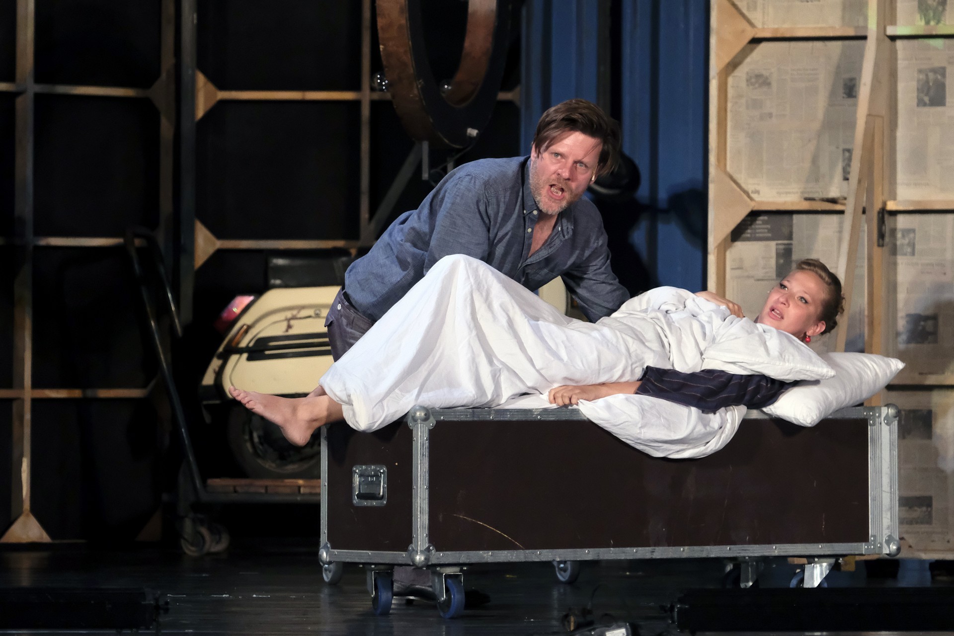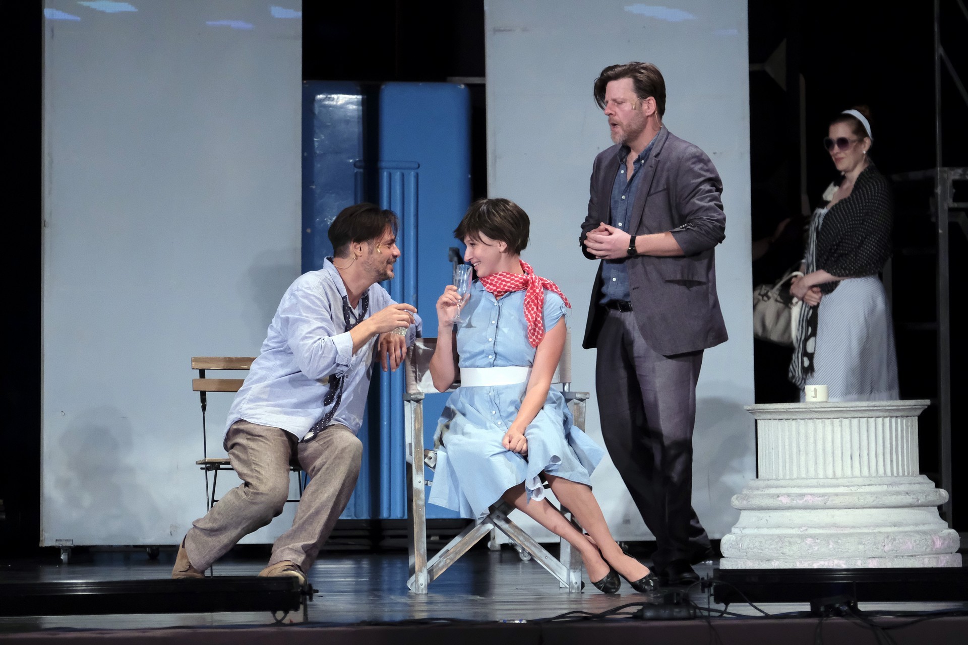 A megelevenedő történet másik szála minden korban megállja a helyét. A rendező meglátta a lehetőséget, hogy színházat készítsen a színházban. Ez alkalmassá teszi a történet kereteit arra, hogy egy szokásos színdarab próbájának munkafolyamataiba tekinthessünk bele – méghozzá élőben. A színész is ember, a munkahelyen vitázik, főnöke van, idősebb mestere van, féltékenység, irigykedések, intrikák és kritikák kísérik pályáját. A párhuzamokban látott aktuálisabb szálak azok a túlkapások, amelyeket a jelenkori média siserehada hoz magával. A hírességek magánélete nem szent, paparazzák és paparazzók követik minden lépésüket, a róluk szóló hírek hírértéke pletykalapoktól függően konvergál a nullával. Azért reméljük, ezt a szintet mindenkor és mindenképpen sikerült túlszárnyalni!