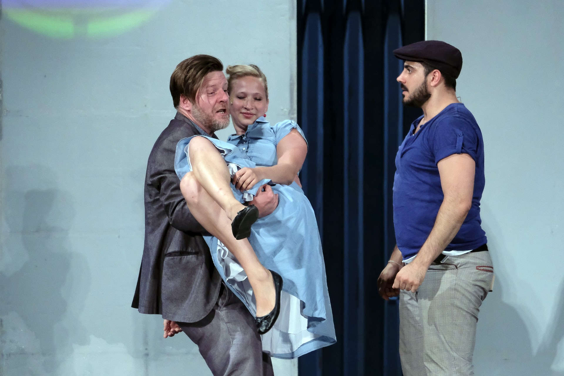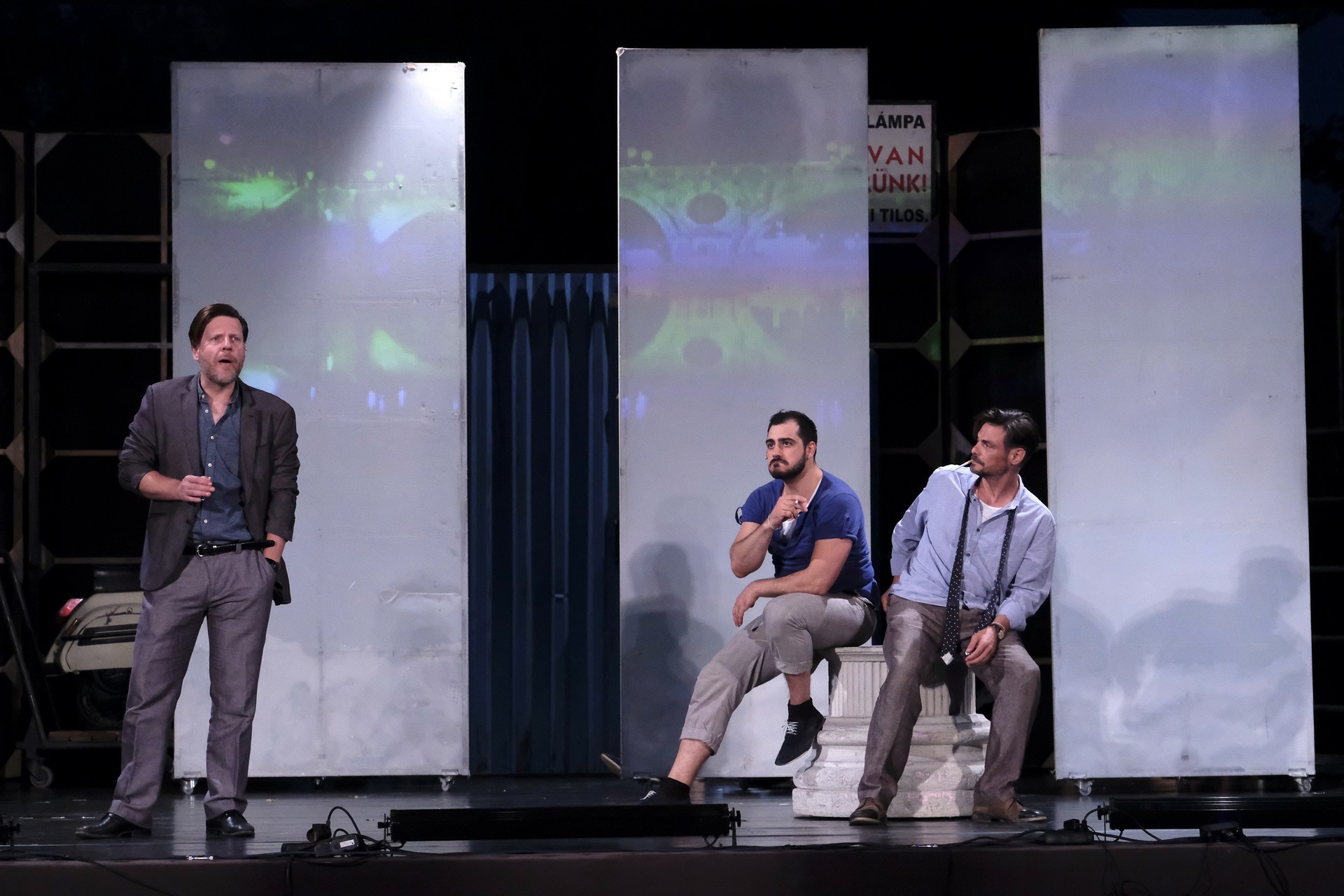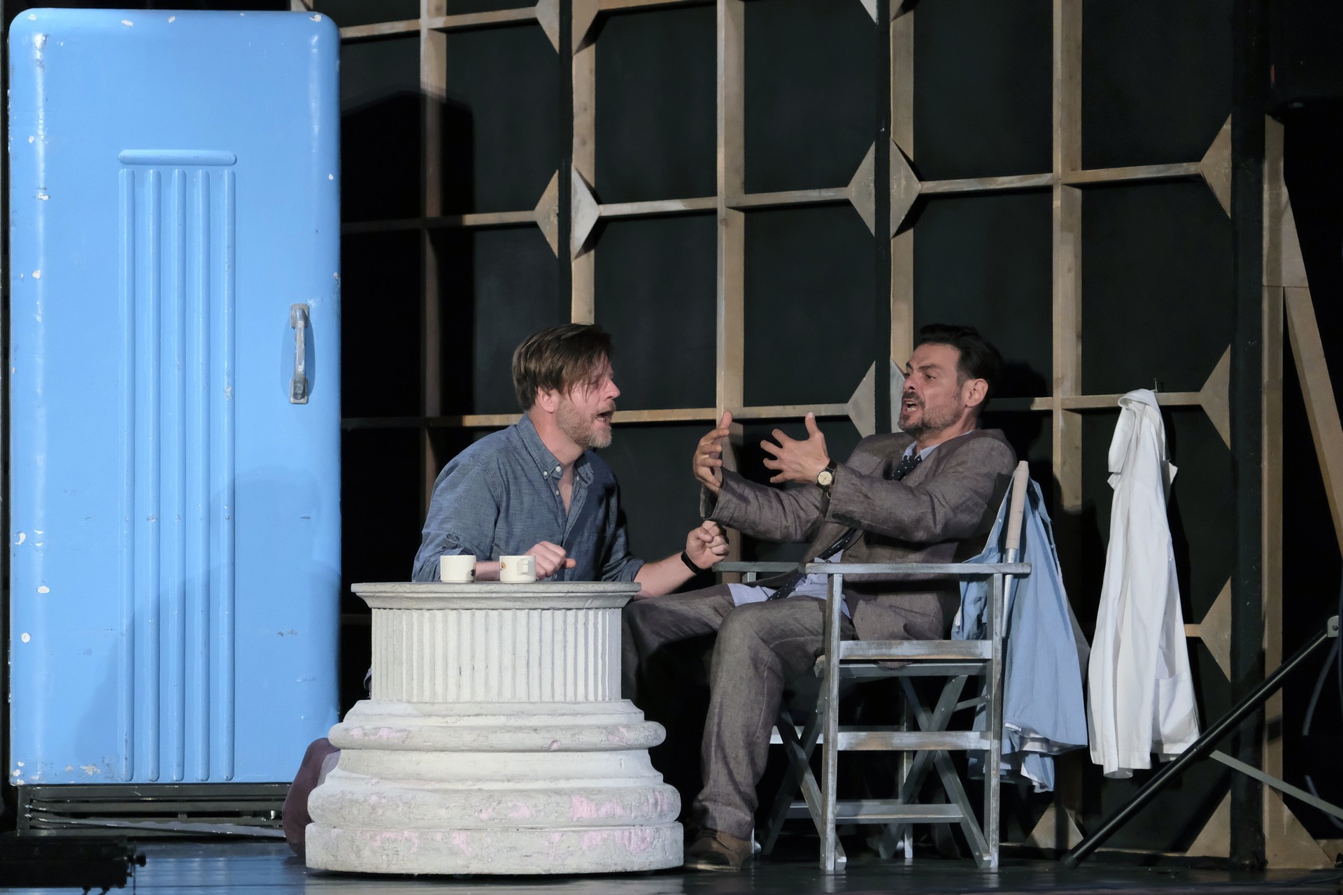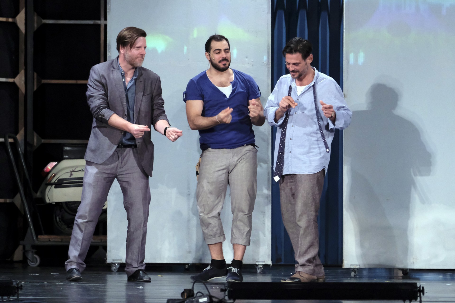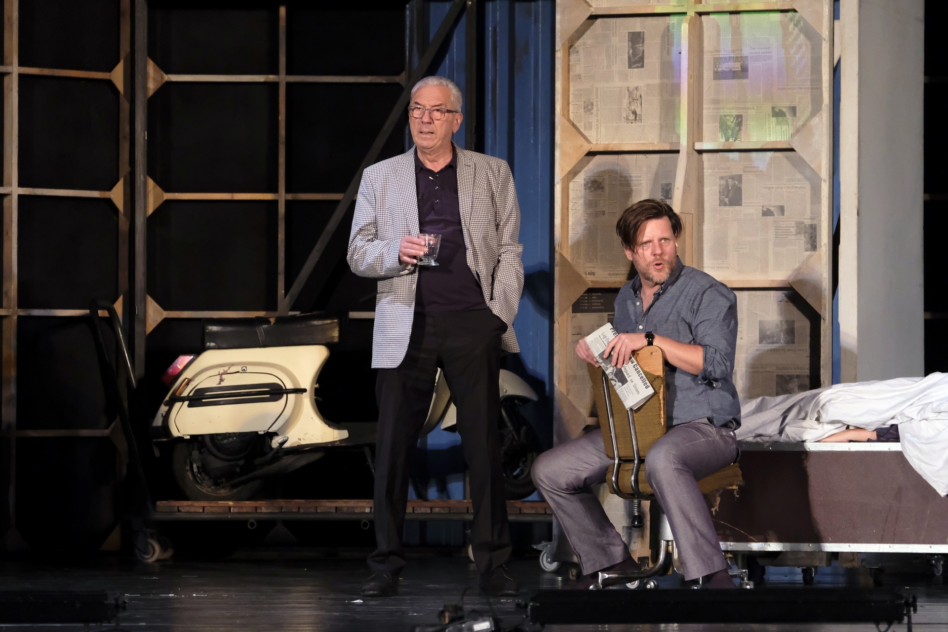 A megelevenedő történet másik szála minden korban megállja a helyét. A rendező meglátta a lehetőséget, hogy színházat készítsen a színházban. Ez alkalmassá teszi a történet kereteit arra, hogy egy szokásos színdarab próbájának munkafolyamataiba tekinthessünk bele – méghozzá élőben. A színész is ember, a munkahelyen vitázik, főnöke van, idősebb mestere van, féltékenység, irigykedések, intrikák és kritikák kísérik pályáját. A párhuzamokban látott aktuálisabb szálak azok a túlkapások, amelyeket a jelenkori média siserehada hoz magával. A hírességek magánélete nem szent, paparazzák és paparazzók követik minden lépésüket, a róluk szóló hírek hírértéke pletykalapoktól függően konvergál a nullával. Azért reméljük, ezt a szintet mindenkor és mindenképpen sikerült túlszárnyalni!