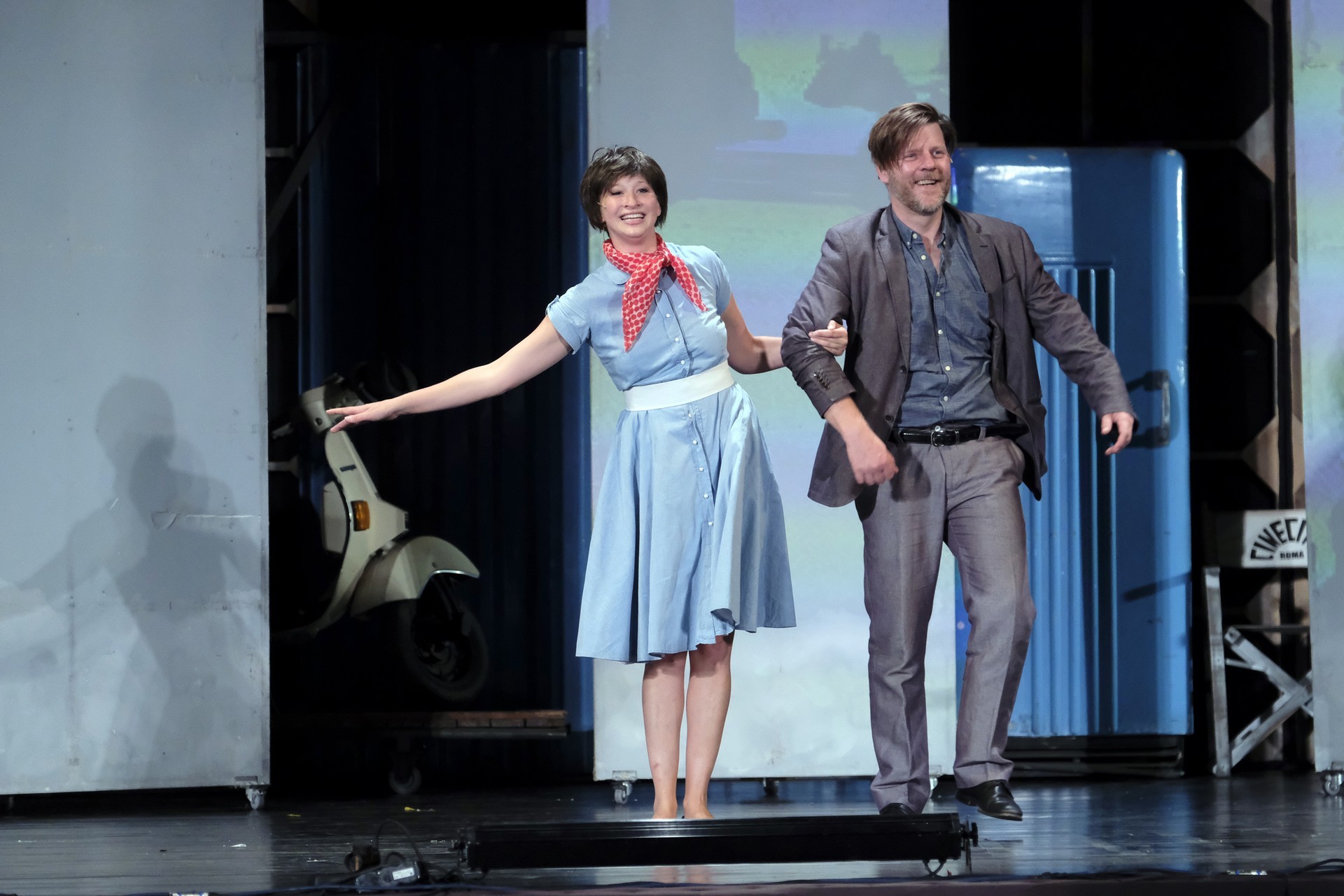 A rendező örökölte a siker receptjét: végy egy eredetileg sikeres filmet (Roman holiday, 1953, Audrey Hepburn és Gregory Peck, 2 Oscar), egy olasz temperamentumra építő, varázslatos dalokat magában foglaló musicalátiratot (2001, Paul Blake szövege és Cole Porter zenéje – Zöldi Gergely fordításában, itt Wágner Puskás Péter zenei asszisztenciájával) és campar senza fatica é una voglia molto antica. Sok olasz mondat elhangzott előadás közben is, jobbára nemzetközi sztereotip műveltségszavak, jellemző szófordulatok, ugyanakkor élvezhetőség és követhetőség tekintetében azért nem mindenki járt jól.