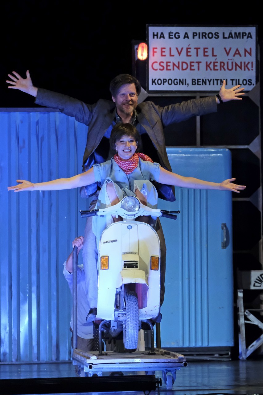 Különösen igénybe vette a nézők figyelmét, hogy a színpadra állított változatban két történet futott egymással párhuzamosan. Egyikben az eredeti fekete-fehér film története elevenedik meg: egy törpeállam trónörököse, a bájos Anna hercegnő (Tenki Réka) európai körútjának a végén, Rómában fellázad a protokoll előírta robot ellen, elszökik az éjszakába. Elalszik egy padon, ahol éppen a folyton anyagi gondokkal küszködő, a hatalmas sztorira váró, amerikai bulvárújságíró, Joe Bradley (Fekete Ernő) talál rá, akinek karakteréből a vagányságot és az érzelmességet egyaránt sikerült kihozni. Anna a jómodorú, lovagias fiatalember lakásában ébred. Bradley hamar rádöbben, hogy az óriási sztorija éppen az ágyában hever. Megbízza barátját, a jószívű Irving Radovichot (Szikszai Rémusz), hogy egy öngyújtónak álcázott fényképezőgéppel készítsen dokumentációt a hercegnő római kalandjairól, amit a paparazzónak álló barát készségesen teljesít. Bradley és Ánya /Ann Smith (ahogyan a főrangú lány magát álnéven megjelöli) az egész napot együtt töltik, olyasmiket művelnek, amiről szoros napirendje miatt a hercegnő csak álmodozhatott: scooterrel bemotorozzák Róma nevezetességeit, piacolnak, kiskocsmákba tévedhetnek, táncmulatságba mehetnek. Találkoznak a társadalom minden rétegével, az egyszerű borbélytól az amorózóig, a taxistól a cipőeladóig (Nagy Dániel Viktor hét szerepben parádézik kitűnően), a heves vérmérsékletű, mindenáron énekesnőnek kívánkozó Francesát (Cseh Judit) is beleértve.