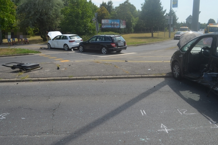 Békéscsabán, a Gyulai út és a Bajza utca kereszteződésében délután fél kettő körül összeütközött három személygépkocsi. A balesetben ketten könnyebben megsérültek.