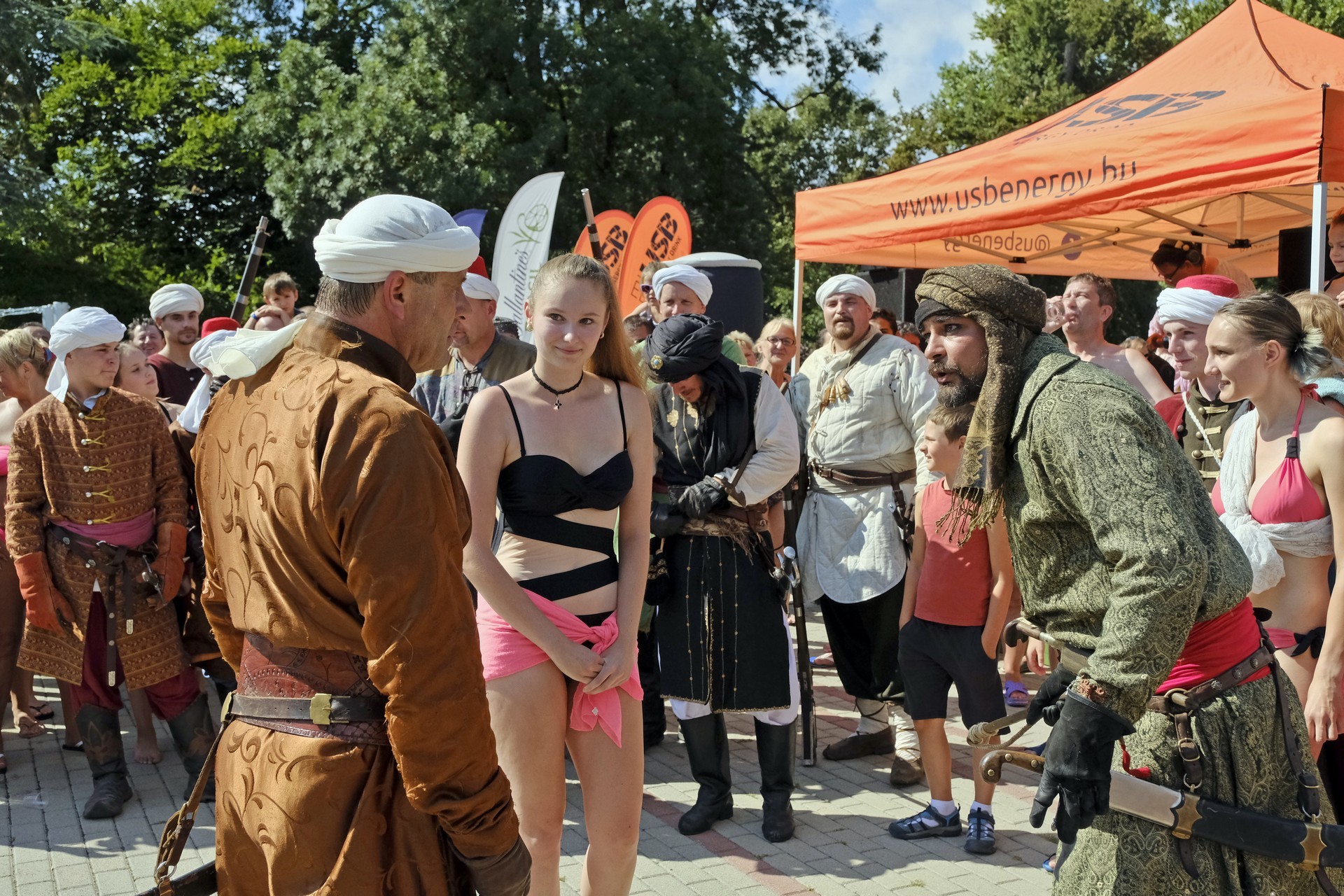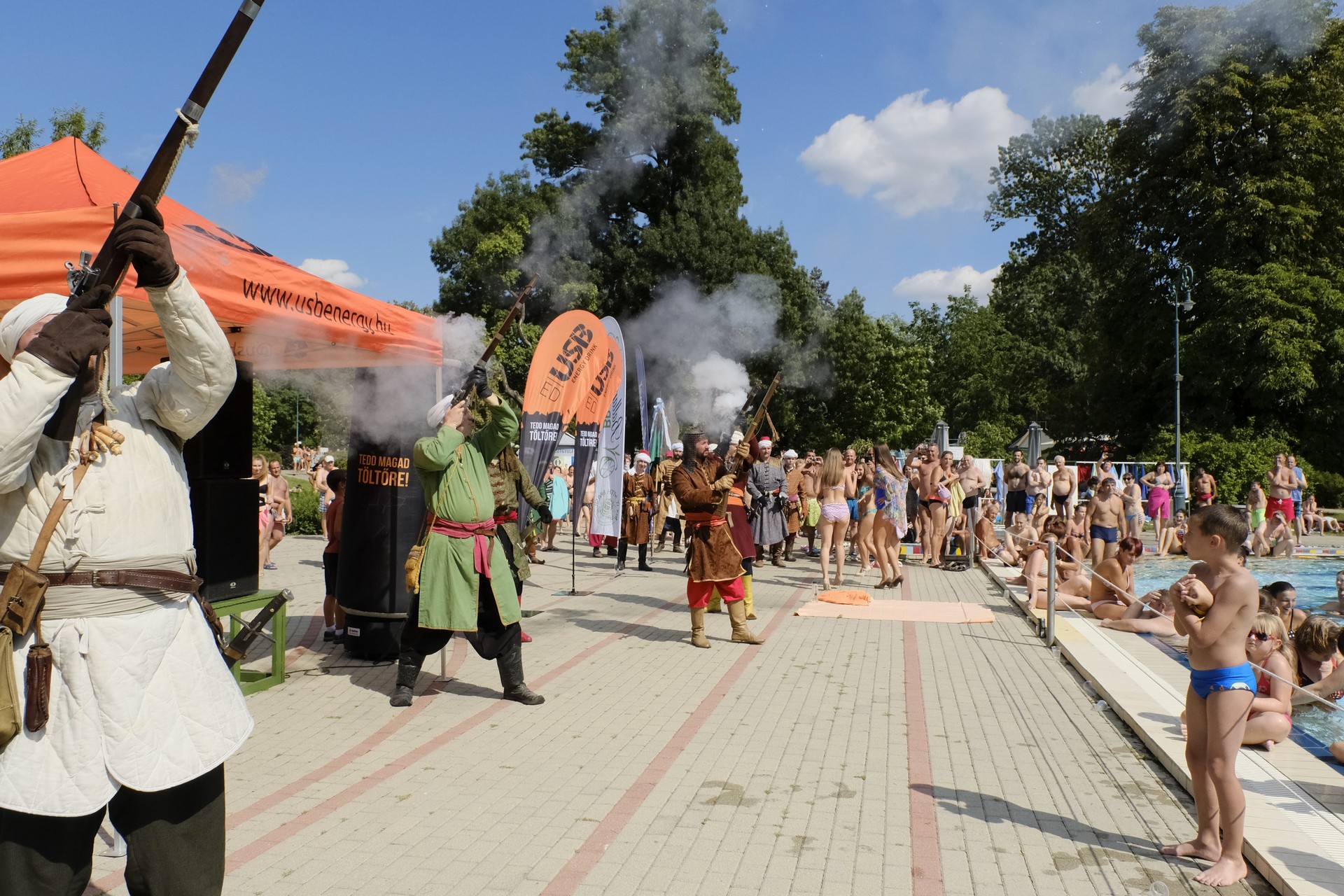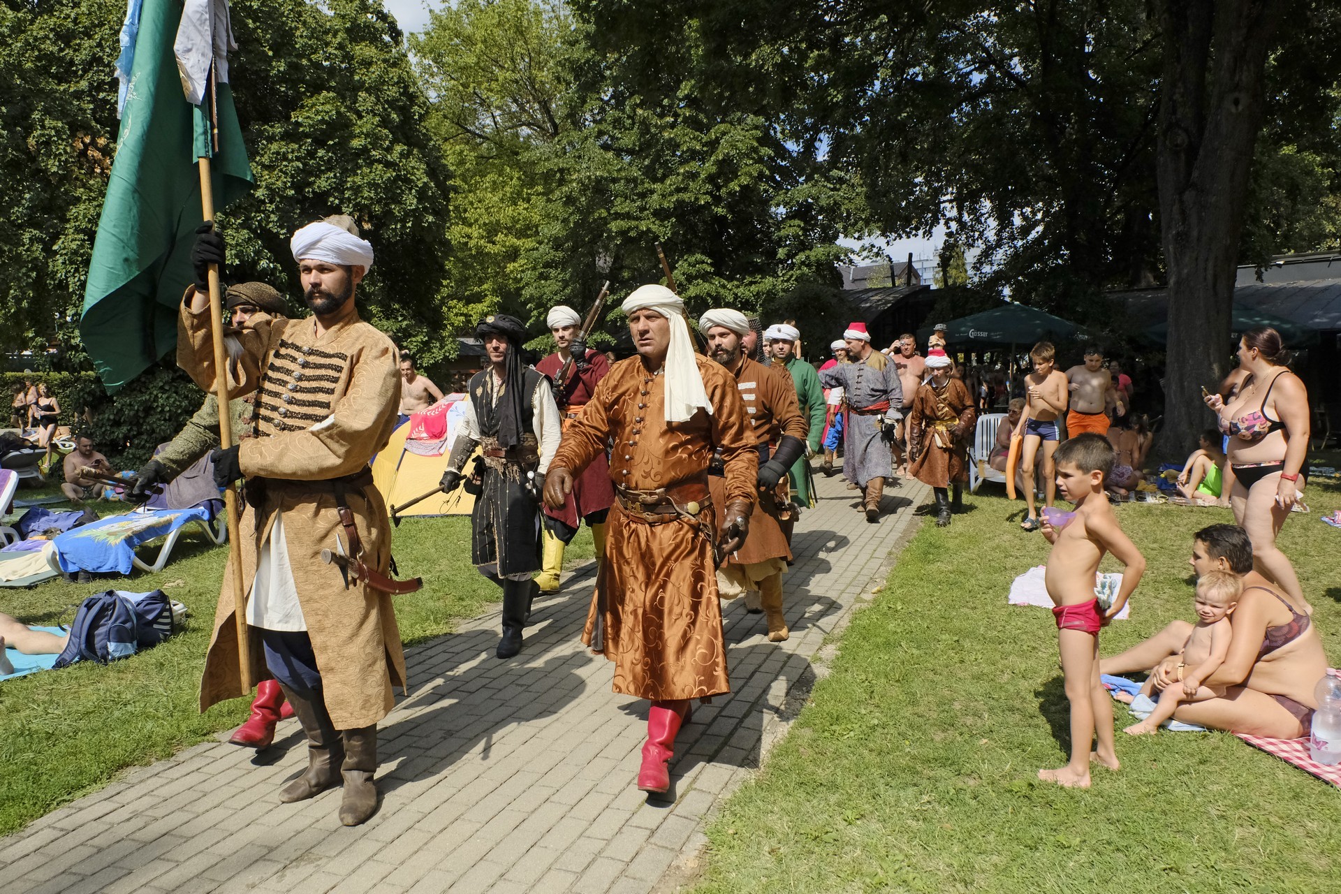 Nem mindennapi élményben lehetett része a Gyulai Várfürdő látogatóinak július 29-én. A pancsoló közönséget ugyanis állig felfegyverzett oszmán katonák lepték meg, akik végigdúlták a vízi paradicsom minden szegletét. Videós anyagunkban megmutatjuk a harcosok látogatásának néhány pillanatát.