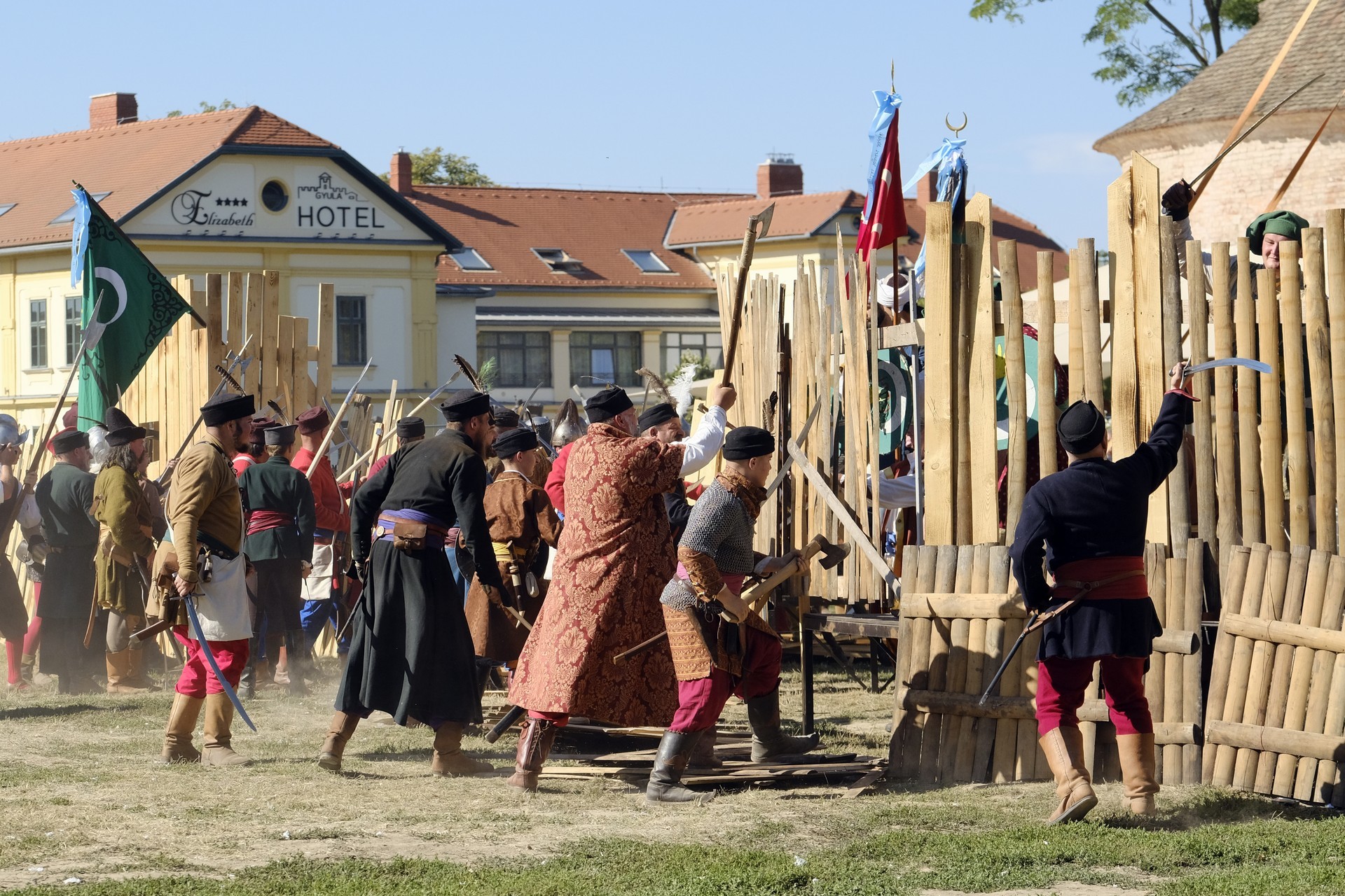A történelmi tények mezsgyéjét elhagyva a hagyományőrzők egy fiktív ostromot tártak elénk. A bemutatón sorra vették a csapattestek feladatait és az ostrom kivitelezésének lehetőségeit. Az igencsak puskaporos hangulatot a keresztény seregek végső győzelme feledtette, amelyben a magyar hajdúk is komoly szerepet kaptak.