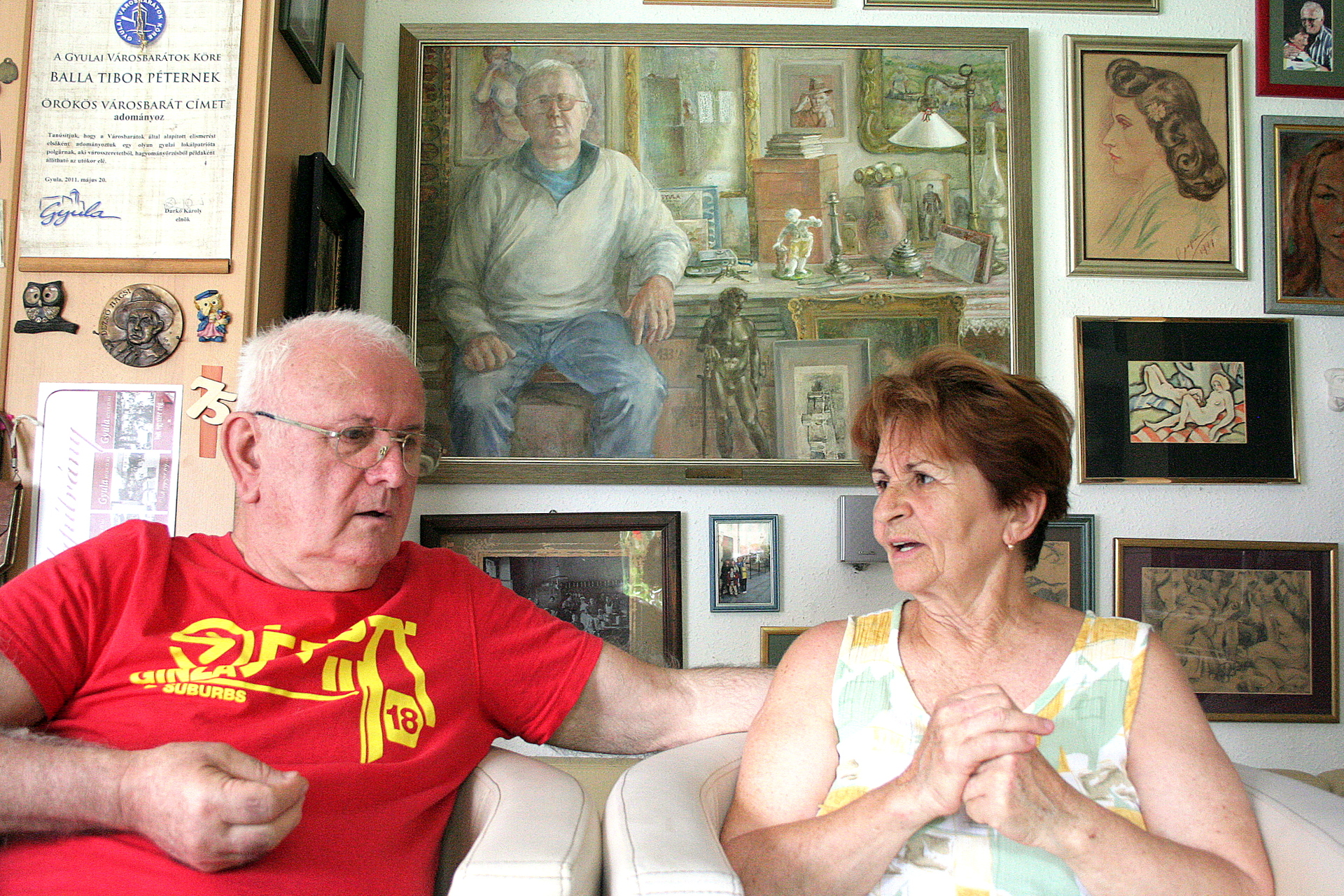 Gyula és Gyula. Csak és kizárólag Gyula. A város szeretete. Ez az érzés lenne az, amely Balla Tibor páratlan gyűjteményét létrehozta. Jó volt minderről elbeszélgetni, mindebbe belelátni, és átélni, milyen a fekete karosszékben, és milyen élve bekerülni a személyiségek adatbázisába, Csonti Facebookjába. Jó volt Balla Tibor és felesége vendégének lenni. Ha úgy alakul, ne maradjanak ki belőle Önök sem.