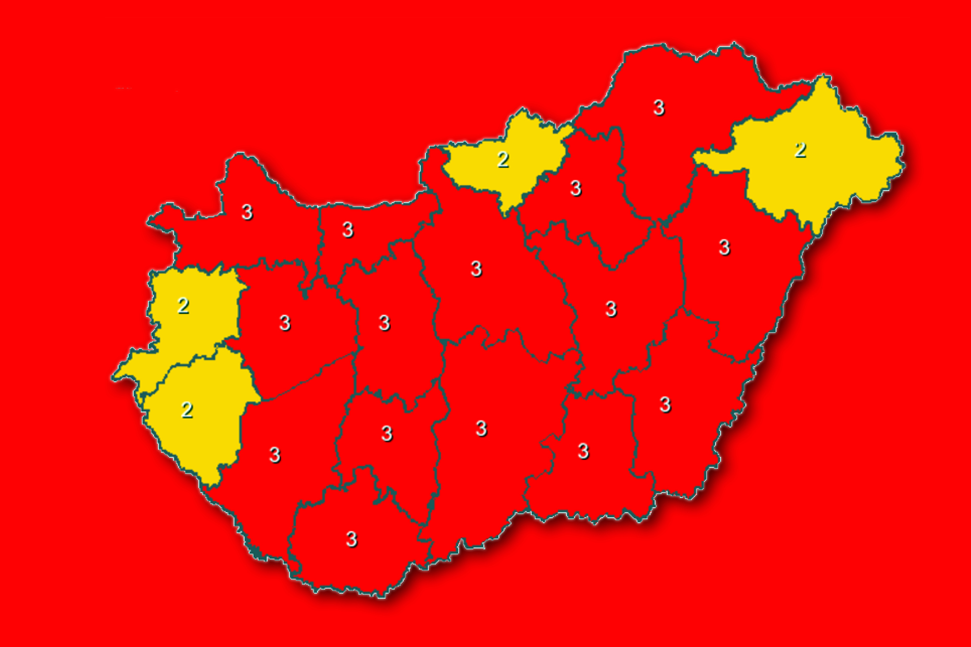 Kiemelték továbbá, hogy pénteken (késő) este északnyugaton már nagyobb valószínűséggel fordulhat elő zivatar viharos széllökés, esetleg jégeső kíséretében. Győr-Moson-Sopron megyére a heves zivatar veszélye miatt is kiadtak elsőfokú figyelmeztetést.