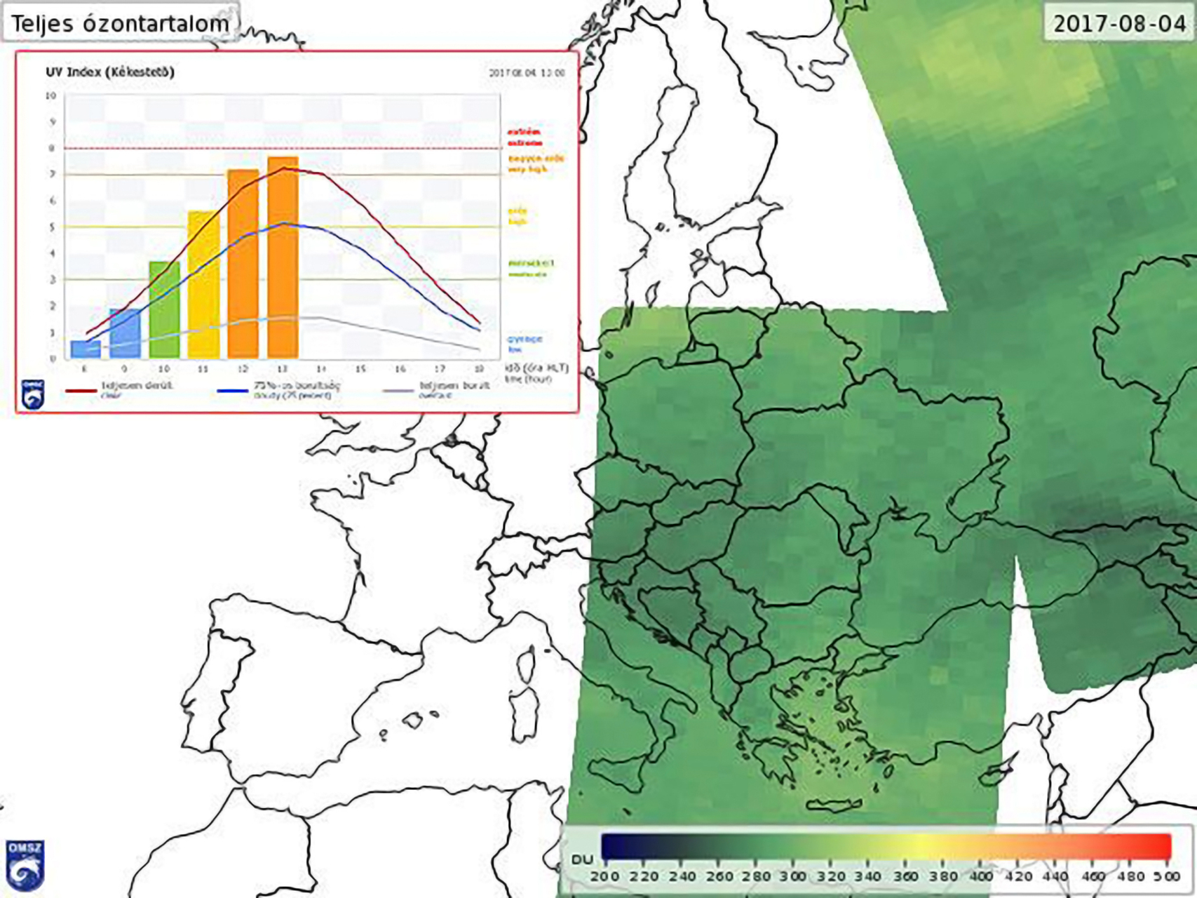 A meteorológiai szolgálat pénteken a honlapján kiemelte: a kirívóan alacsony ózonértékeknek megfelelően nagyon magas UV-sugárzási értékeket is mértek az országos UV-monitoringhálózat mind az öt mérőállomásán. Az UV-index már 13 óra körül megközelítette egyes helyeken a 8-as értéket (extrém szintet), de másutt is 7 körül volt – tették hozzá.