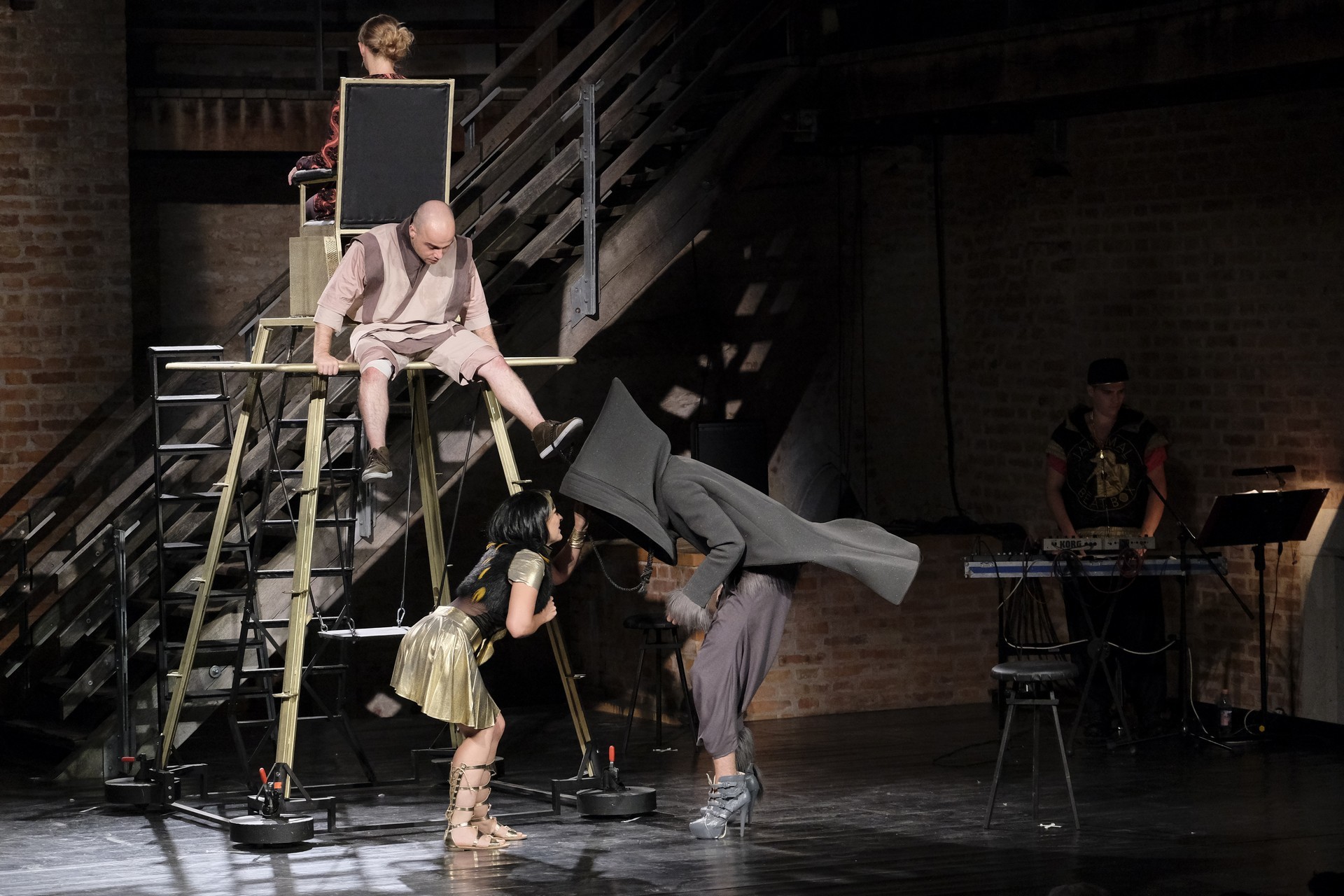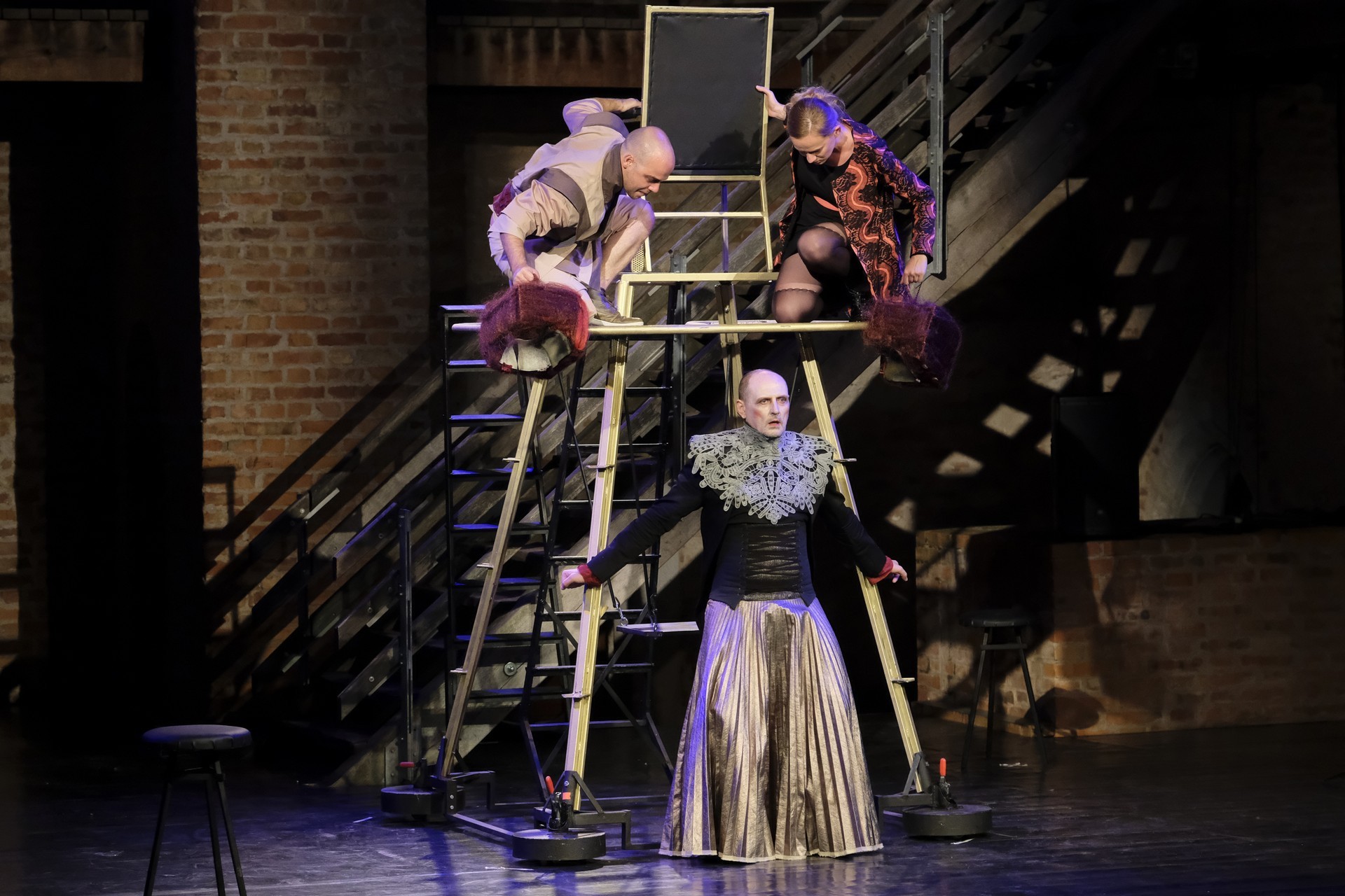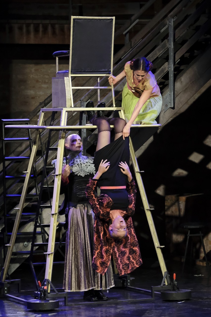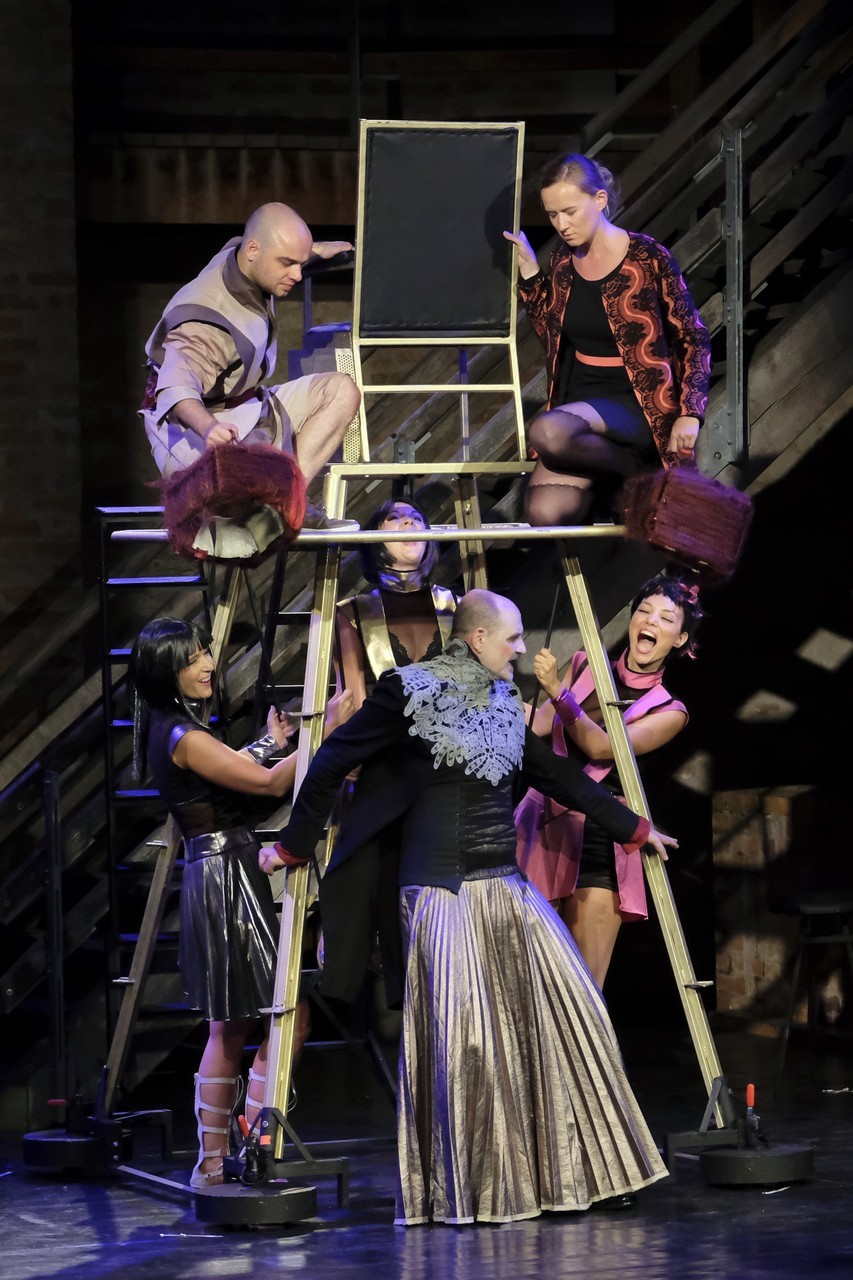 A Vörösmarty-darabbal nehéz dolgozni, hiszen a boldogságkeresés, létértelmezés, útkeresés tematikáját járja körbe. Mi dolgunk a világon, miért élünk, merre tartunk, ki kísér az úton, kik milyen hatással vannak ránk? A fejlődés nemtelen, örök folyamat, a női szerepeket férfiak is játsszák és fordítva, itt nem egy-egy ember, hanem az emberiség tudata manifesztálódik. Három világszint egyesülésében tapasztaljuk meg létünk mindennapos önharcait. A kereszténység hármas szimbolikája mentén, a pokoltól a paradicsomig, az Atyától a Szentlélekig dinamikus változásokban ábrázolt a történet. Hármas alakzatban érkeznek elénk az ördögfiak (Kurrah, Berreh, Duzzog: Sipos Marianna, Denk Viktória, Balogh Eszter), a nemtők (az életfa őrzői), a napszakok (éj, dél, ismét éj), a vándorok (tudós, kalmár, fejedelem, mind Bartha Lóránd). A három út Y-ban való találkozása a DNS-kromoszómák modern összefonódását is jelképezi, a világ egyetlen sejtbe is be van zárva, nem kell az univerzumban gondolkodni, hiszen még a molekula szintjén sem ismerjük jól a teremtés erejét. Balázs Zoltán jól látta, hogy nincs szükség a hatalmas terek bejárására ahhoz, hogy megelevenedjen a küzdelem az Ének között. Tizenöt négyzetméter elég volt, hogy mindenki követhesse a történet vonalát, amely nem túl didaktikusan, hanem igazán ígéretes rendezői attitűddel bontakoztatott ki.