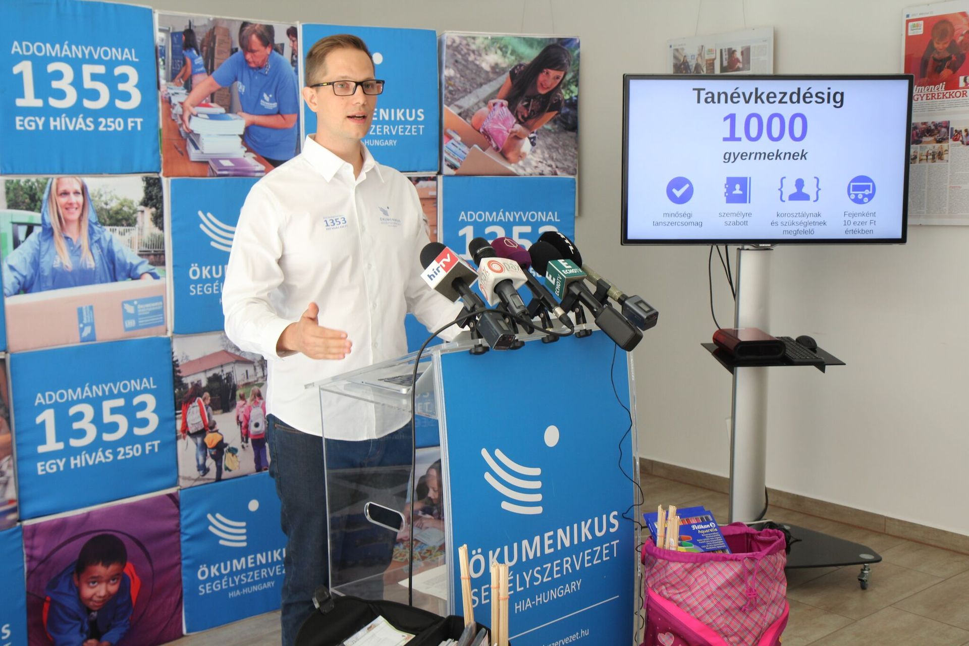 Gáncs Kristóf, az Ökumenikus Segélyszervezet kommunikációs igazgatója az adománygyűjtés célkitűzéseit és részleteit ismertette. Mint mondotta, a legtöbb családban az iskolakezdésre való készülődés izgalmas, örömteli időszak: gyűlnek a füzetek és a ceruzák, az ünneplő ruha, a tornazsák, az új cipő bevetésre készen várják az első becsengetést. Az Ökumenikus Segélyszervezet látókörébe azonban évről évre sok olyan nehéz sorsú család kerül, ahol az öröm helyett félelemmel gondolnak a tanévkezdésre.