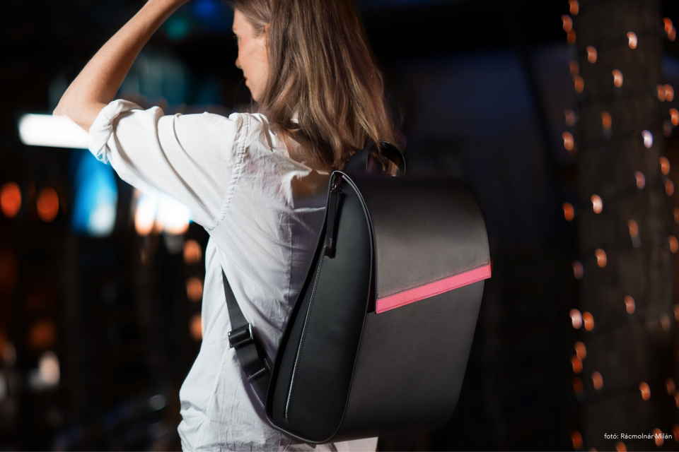 Pákozdi Rebeka mestermunkája egy olyan tartásjavító hátizsák, amelynek kifinomult, stílusos megjelenése a nagyvárosi, fiatal felnőtt nőket célozza meg. A táska a vállak hátrahúzásával, a gerinc ívéhez igazodó merev hátrésszel ellensúlyozza és korrigálja a görnyedt testtartást, belső elrendezése a súly optimális eloszlását segíti.