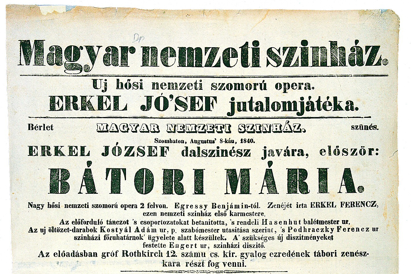177 évvel ezelőtt, 1840. augusztus 8-án mutatták be először Erkel Ferenc első magyar dalművét, a Bátori Máriát a pesti Magyar Színházban, amelyet attól a naptól kezdve neveztek Nemzeti Színháznak.