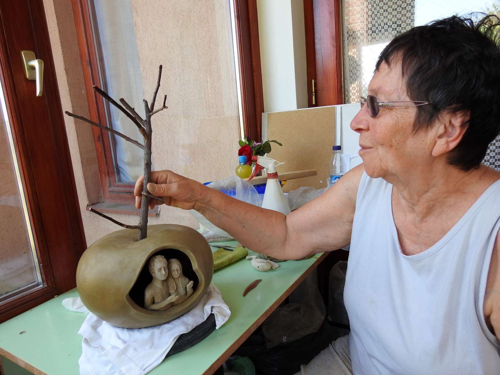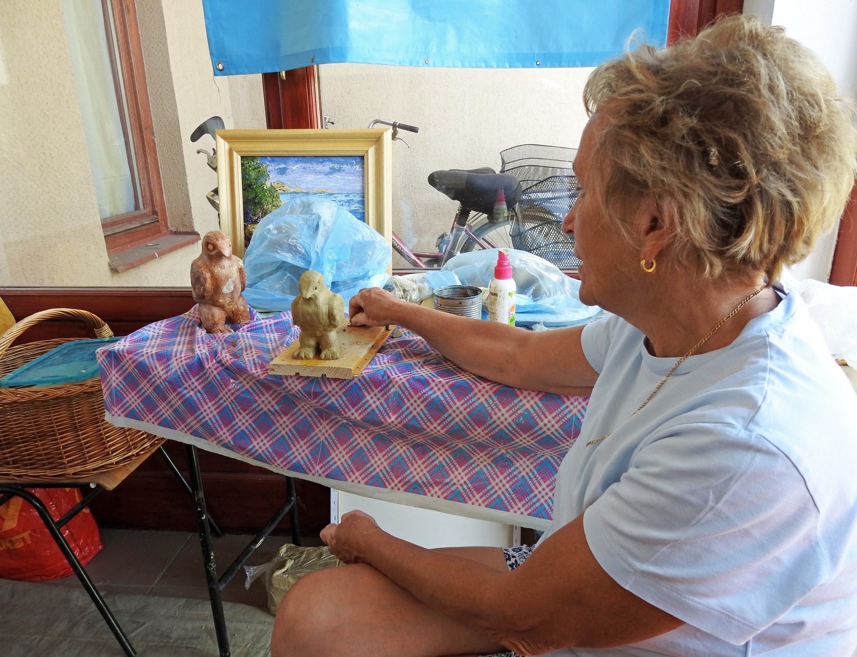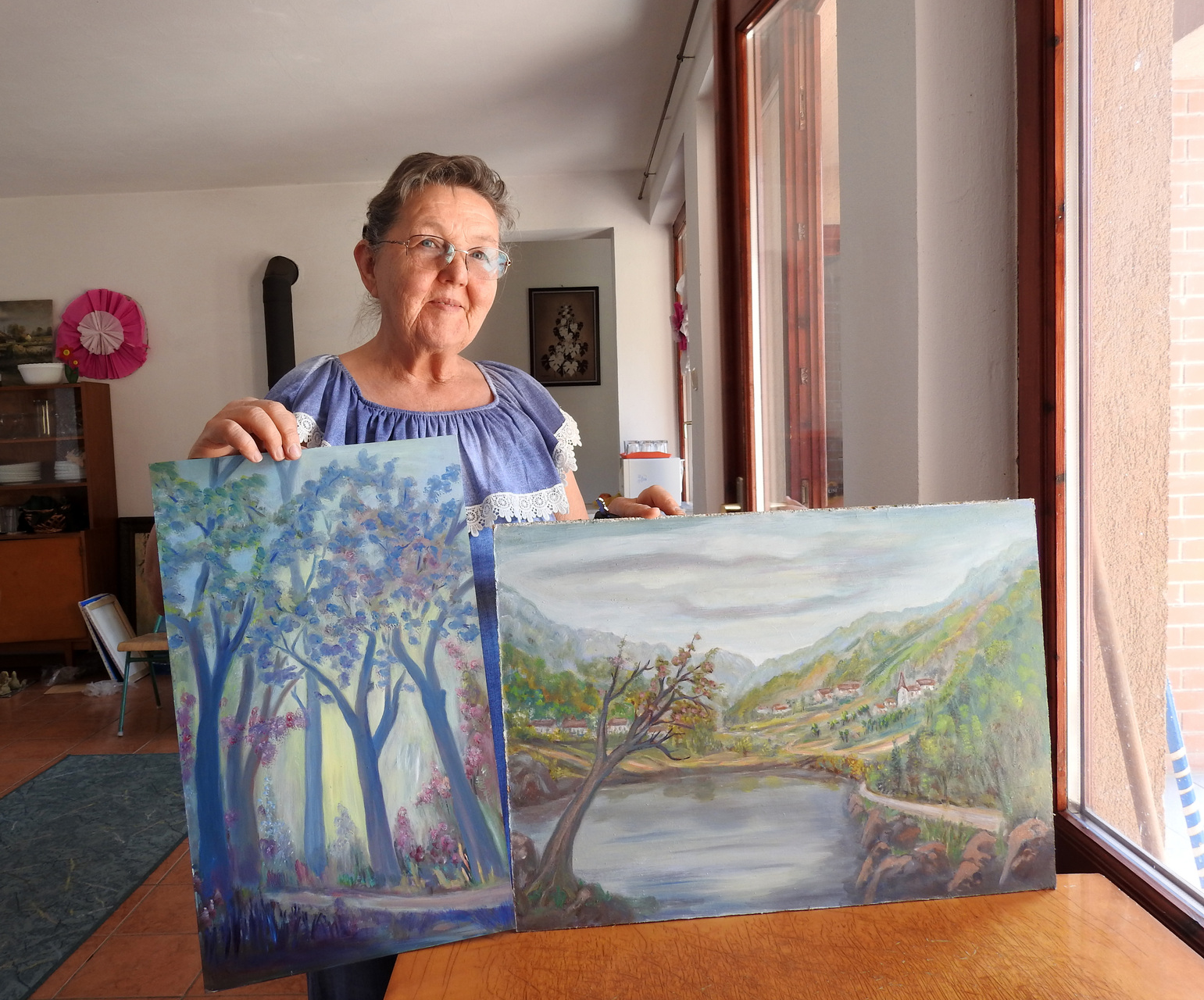 Hortobágyi Mártonné Benkő Jolán Kamutról érkezett a gyulai vendégházba. A nyugdíjas korú táborlakó lapunknak azt mesélte, régóta érdekli a művészet, korábban azonban a család és a munka mellett nem sok ideje jutott az alkotásra.