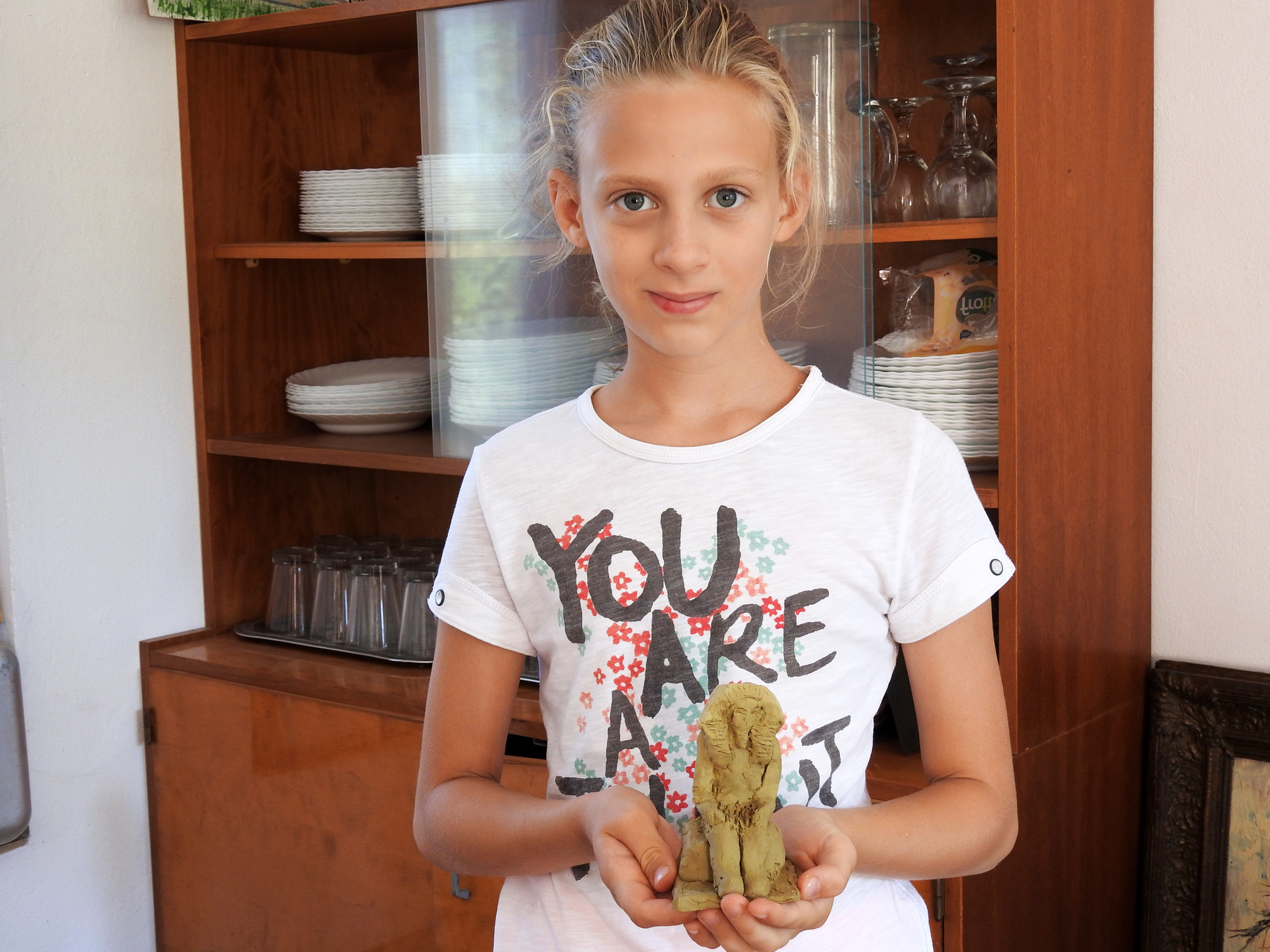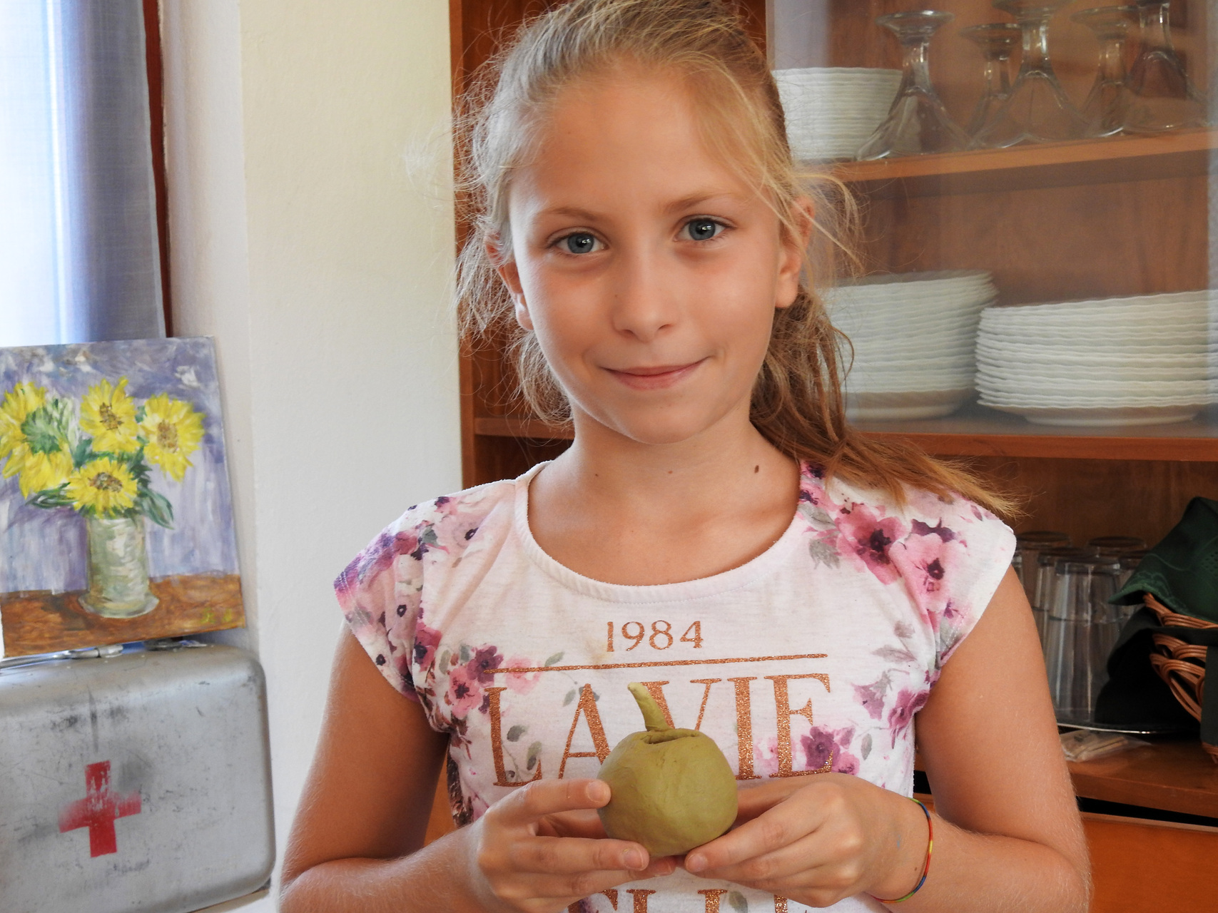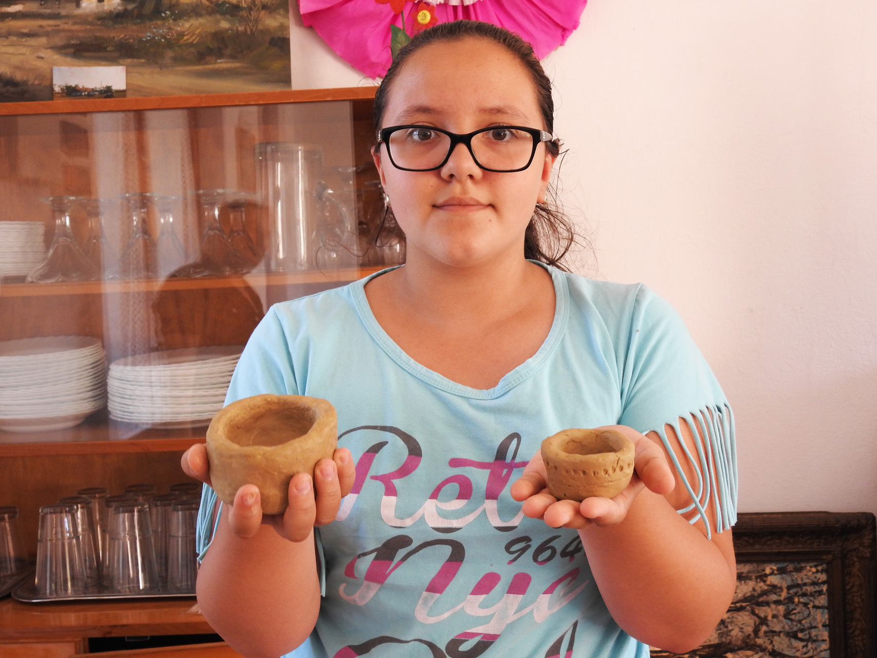 Hortobágyi Mártonné Benkő Jolán Kamutról érkezett a gyulai vendégházba. A nyugdíjas korú táborlakó lapunknak azt mesélte, régóta érdekli a művészet, korábban azonban a család és a munka mellett nem sok ideje jutott az alkotásra.