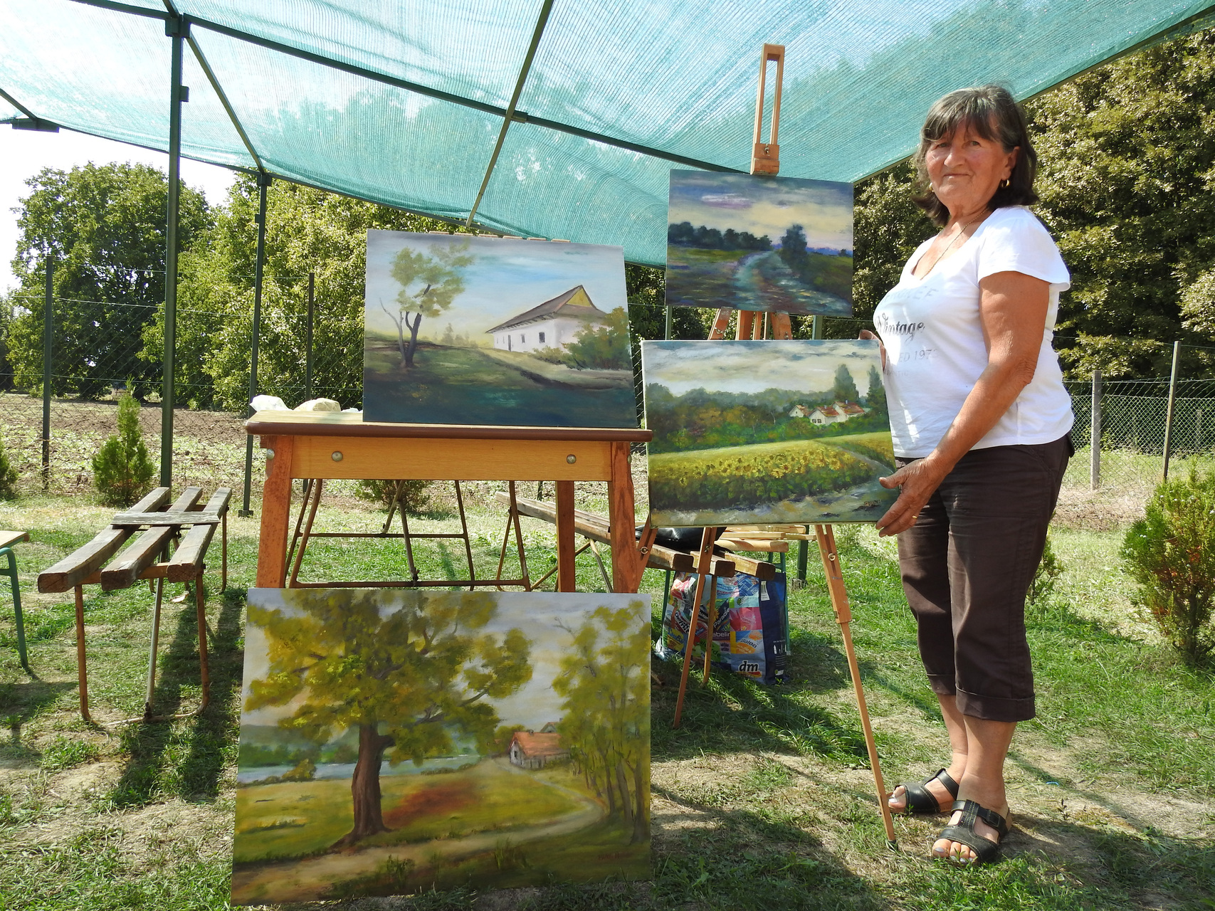 – Mindig is az volt a vágyam, hogy a képességeimet művészi szintre fejlesszem – árulta el. Elmondta: az alapokat Scholtz Endre békéscsabai művésztanártól leste el, majd a József Dezső-egyesület kurzusaiba is bekapcsolódott. Hozzáfűzte: évek óta visszajár a Fehér-Körös melletti vendégházba, itt ugyanis elmerülhet a festészetben.