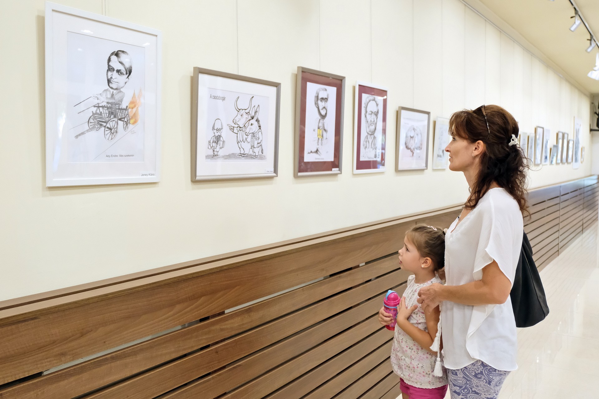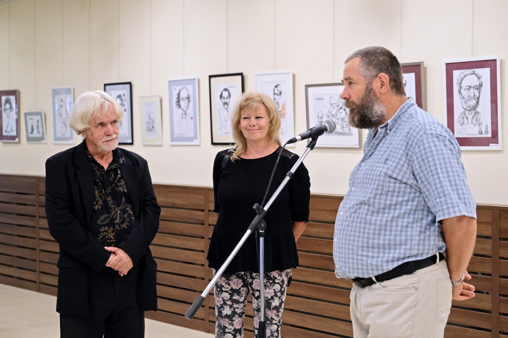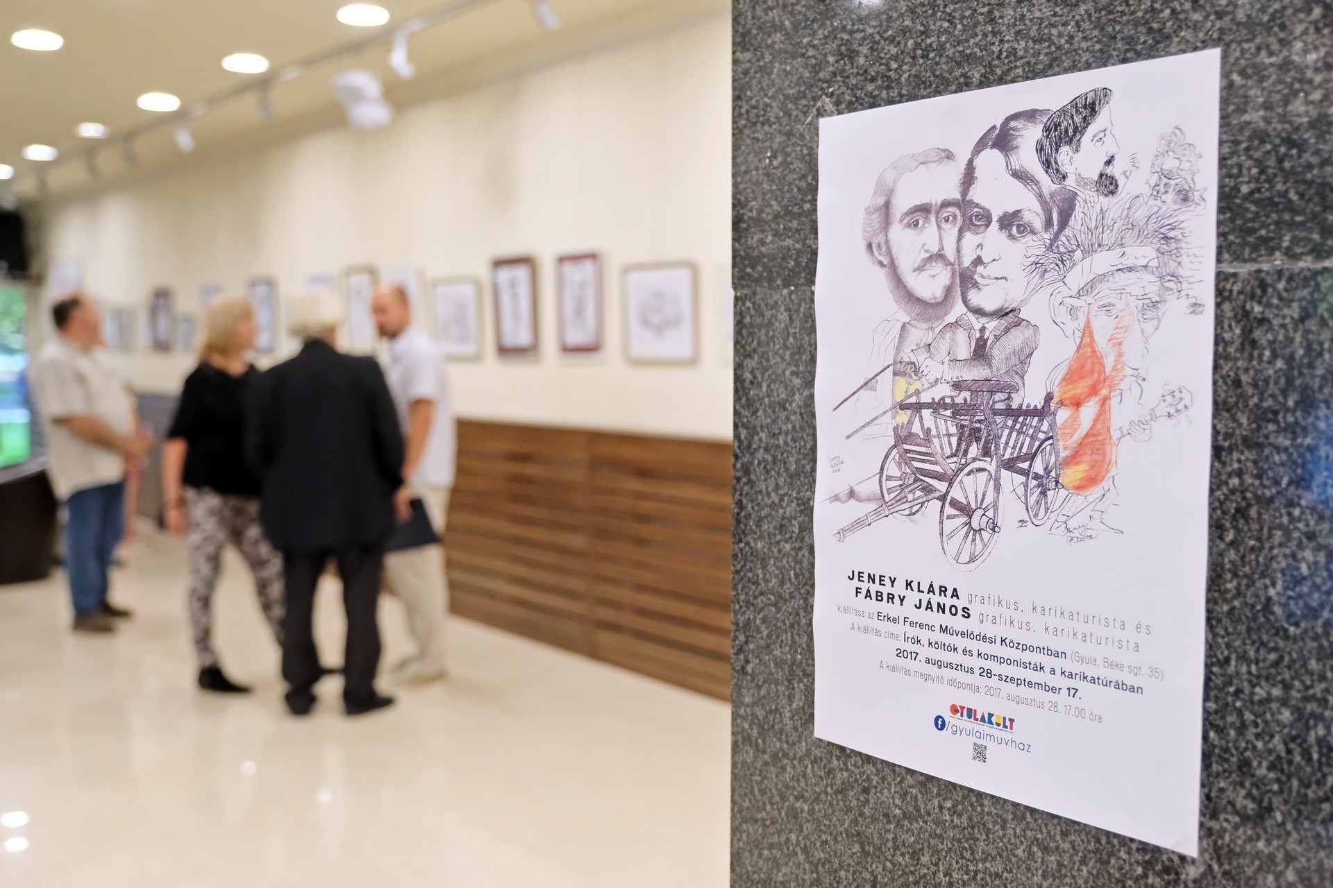 A magyar irodalom nagyságai mellett az érdeklődők világklasszisokkal, többek között zenészekkel, festőkkel és hétköznapi politikusokkal is szembenézhetnek a művelődési ház galériájában. Itt beszélgettünk el a két kiállítóval, Jeney Klára grafikussal és művészterapeutával, valamint párjával, a Pulitzer-emlékdíjas sajtóillusztrátorral, iparművésszel, Fábry Jánossal munkásságukról és elképzeléseikről. Interjúnkat egy későbbi időpontban tesszük közzé a Gyulai Hírlap Online-on.