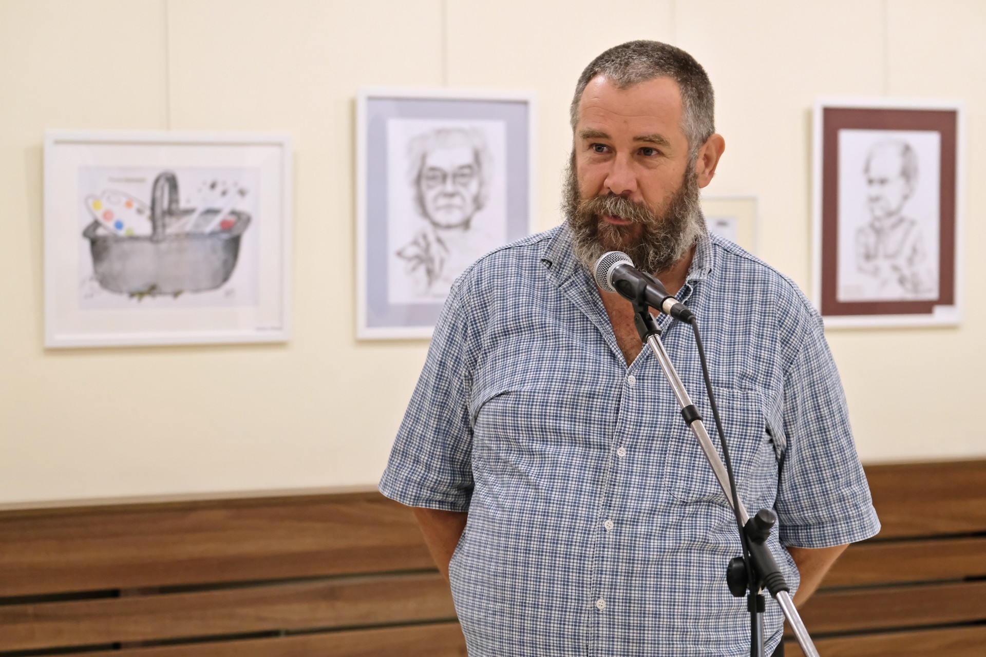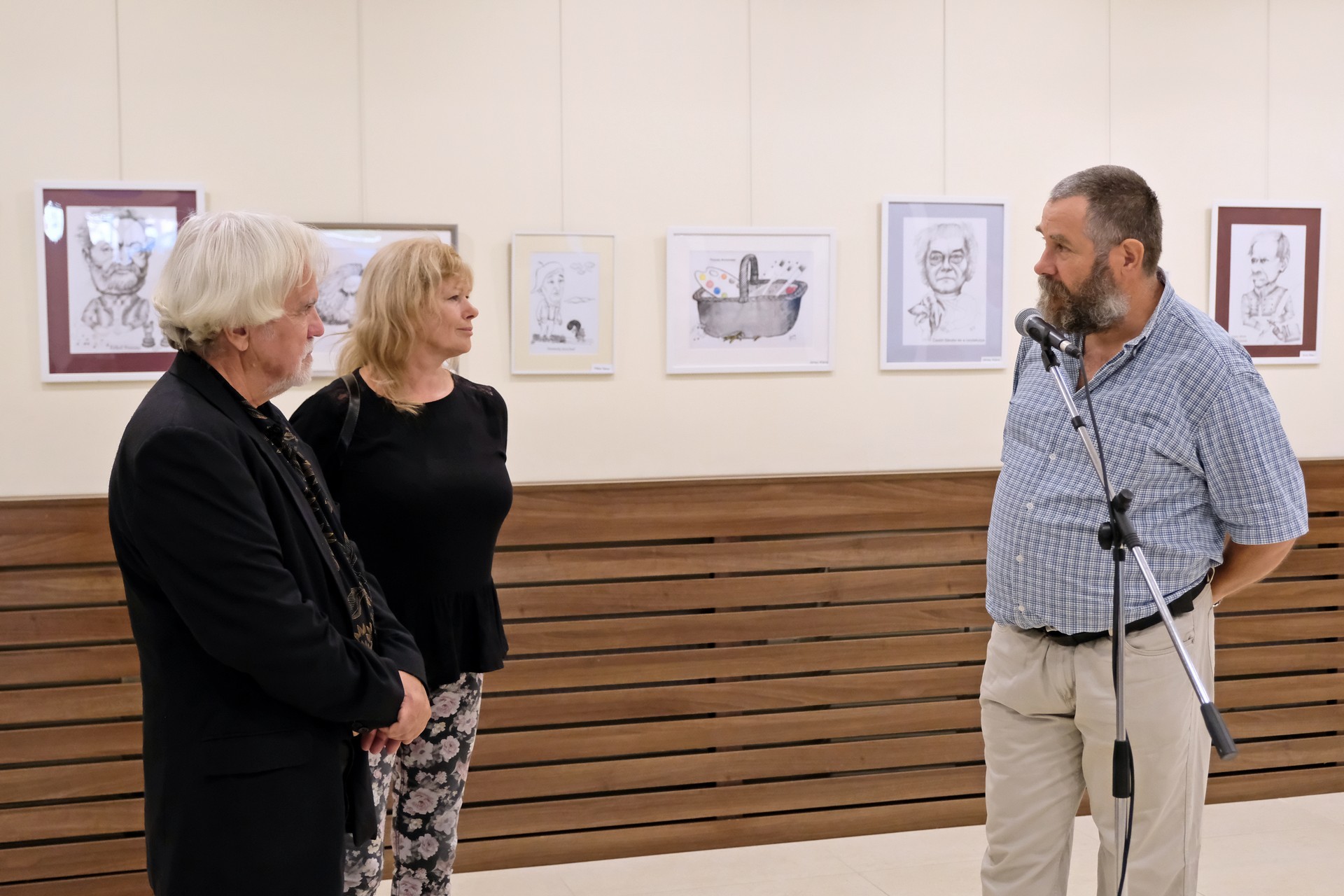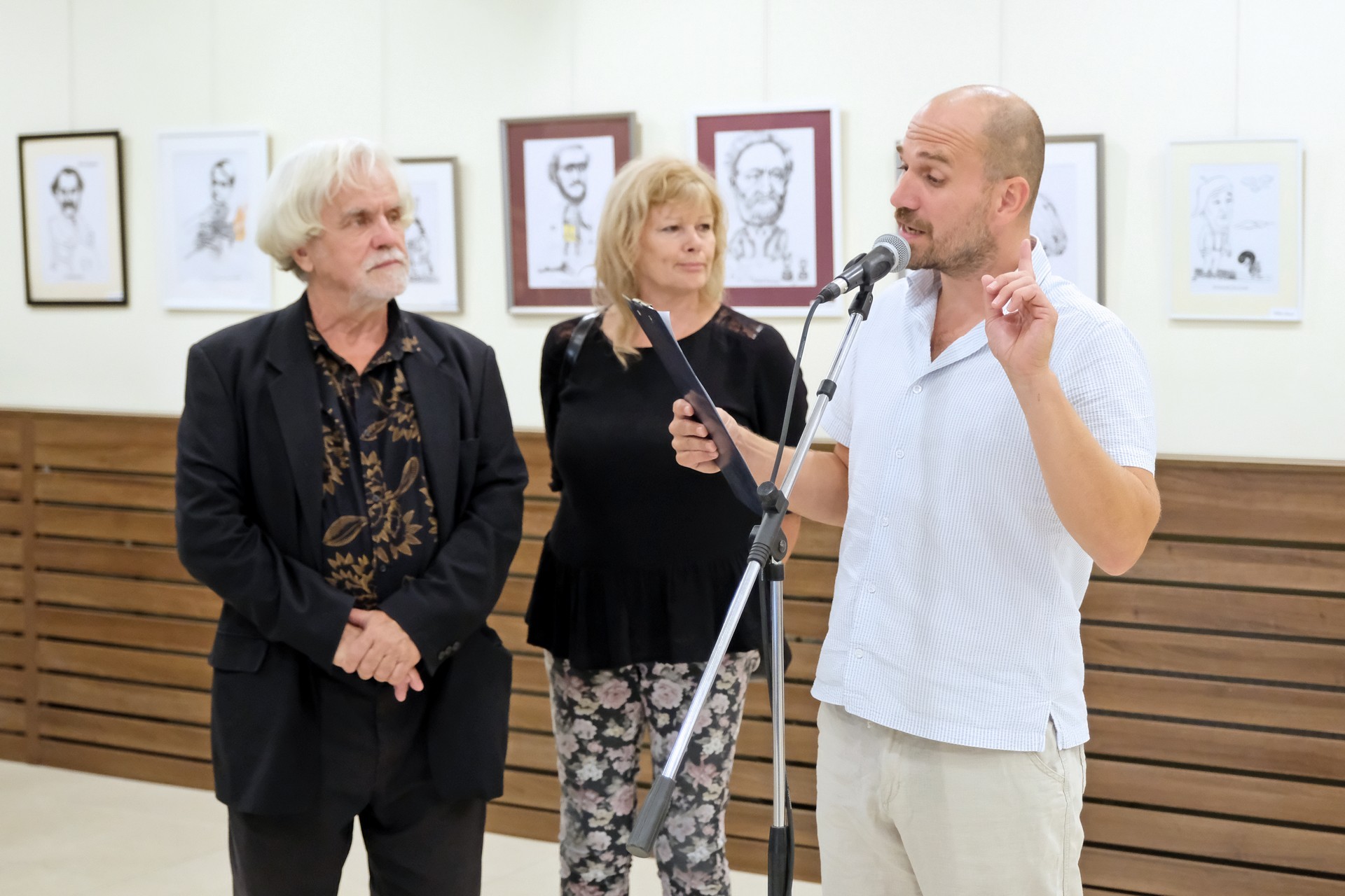 A magyar irodalom nagyságai mellett az érdeklődők világklasszisokkal, többek között zenészekkel, festőkkel és hétköznapi politikusokkal is szembenézhetnek a művelődési ház galériájában. Itt beszélgettünk el a két kiállítóval, Jeney Klára grafikussal és művészterapeutával, valamint párjával, a Pulitzer-emlékdíjas sajtóillusztrátorral, iparművésszel, Fábry Jánossal munkásságukról és elképzeléseikről. Interjúnkat egy későbbi időpontban tesszük közzé a Gyulai Hírlap Online-on.
