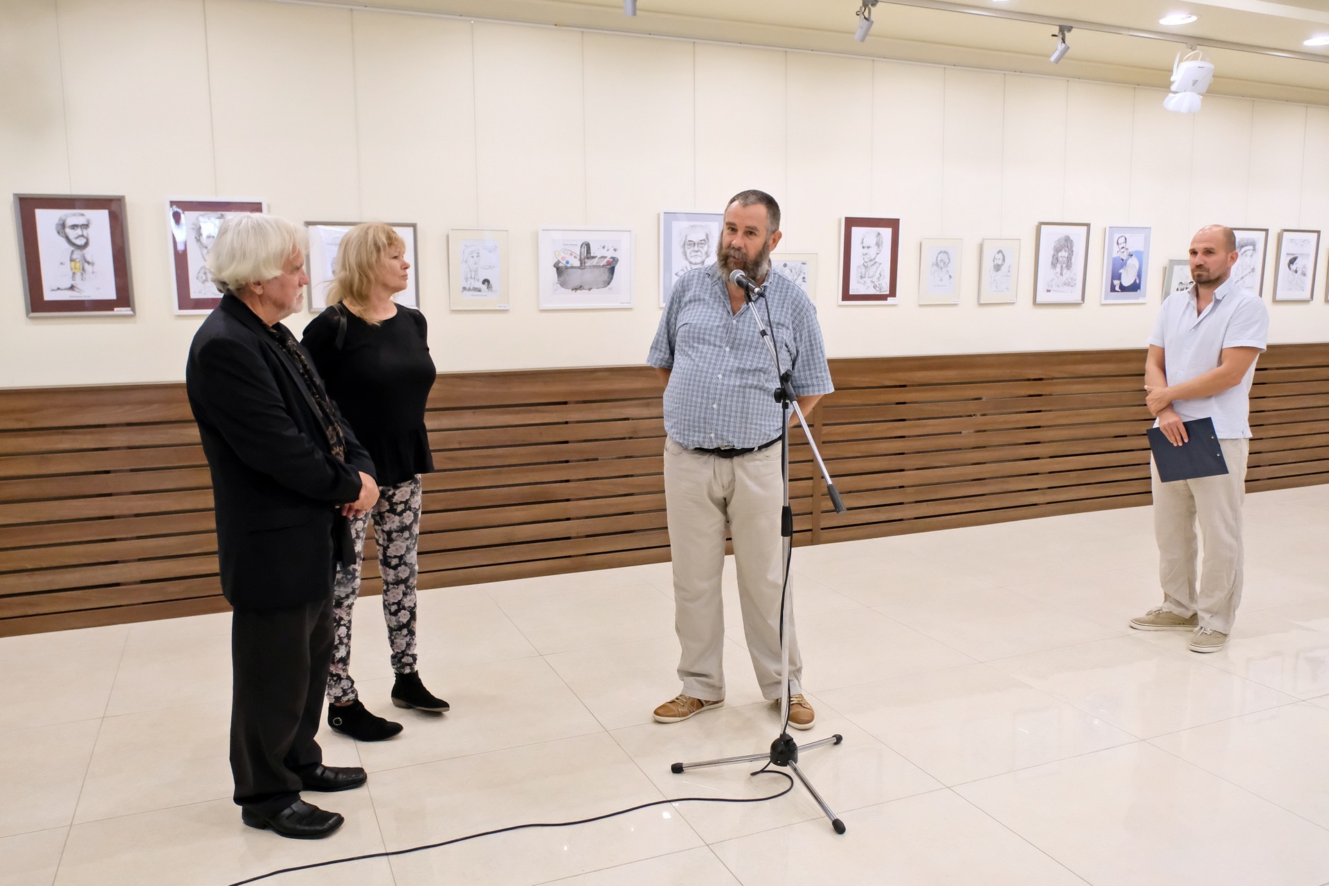 Kukár István először is önmagának tett fel egy kérdést. Arra keresett magyarázatot, miért neki kell megnyitnia a tárlatot, hisz egyetlen karikatúrát sem rajzolt még életében. Ebből kiindulva jelentette ki, hogy a karikatúra a rajznál kicsit több. A rohanó és elidegenedett világban például nagyon alkalmas arra, hogy megálljra szólítson fel, embereket hozzon össze.